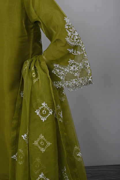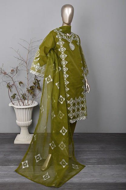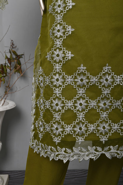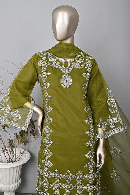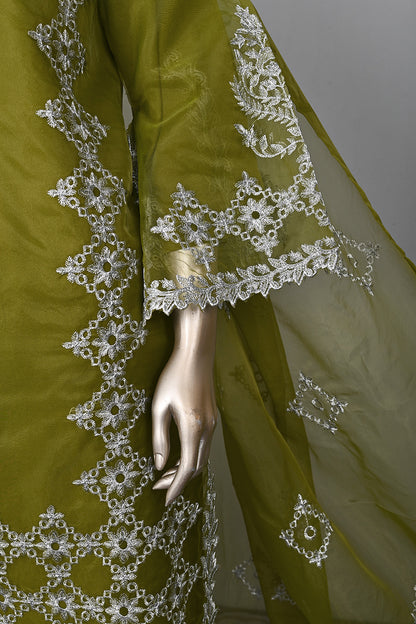 3Pc Ready to Wear Cut Work Embroidered Organza Dress