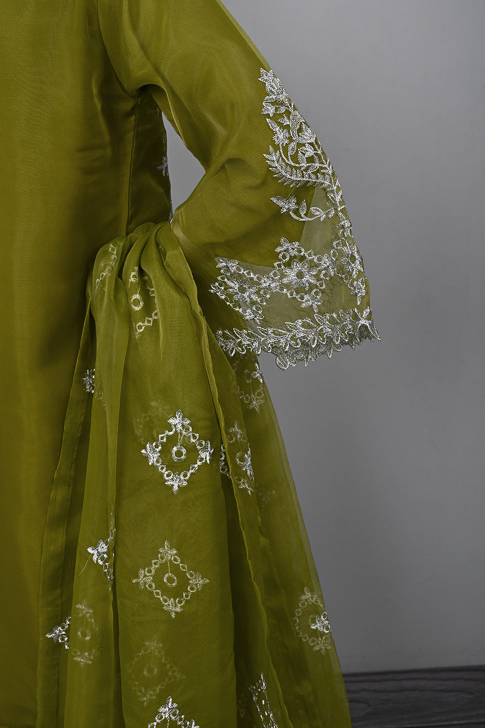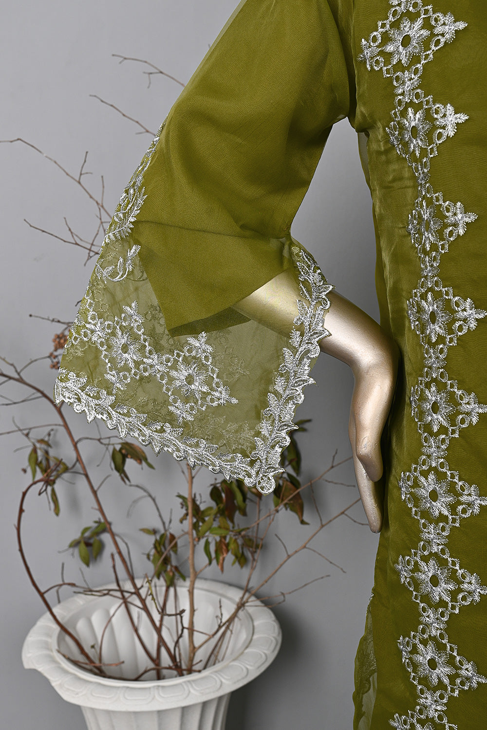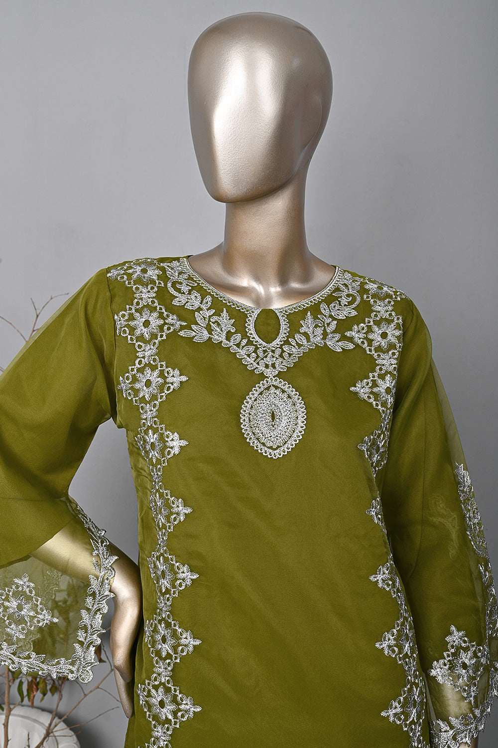- Embroidered Organza Cut Work Shirt