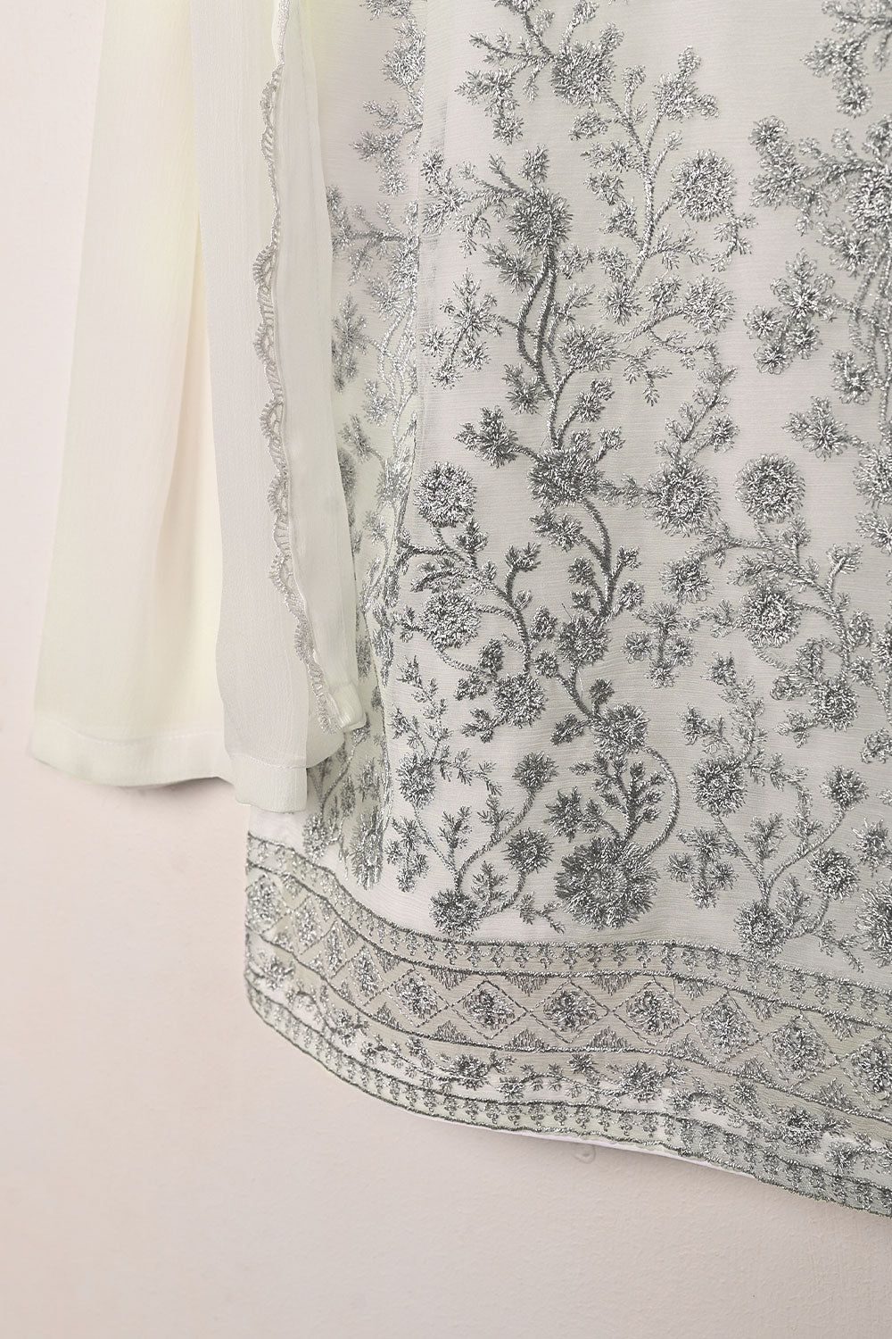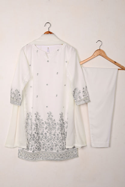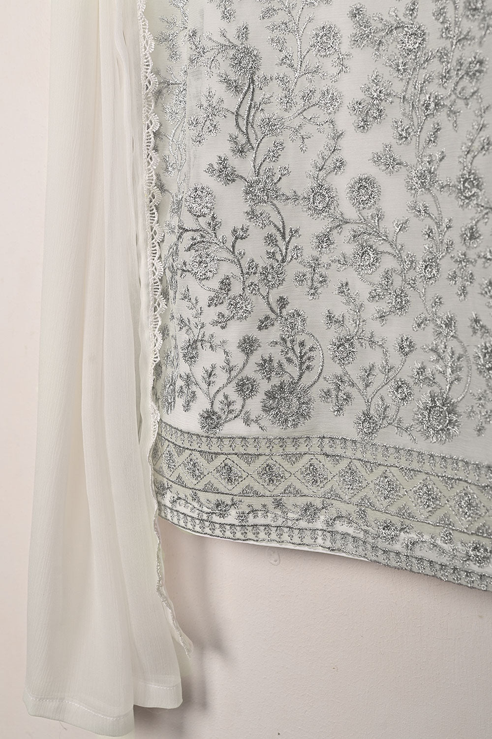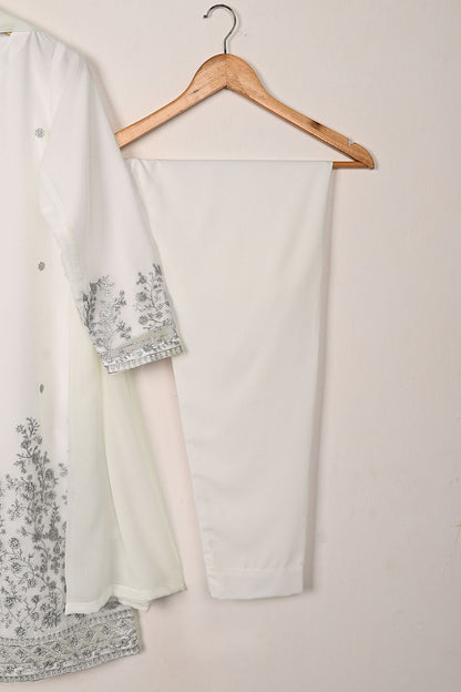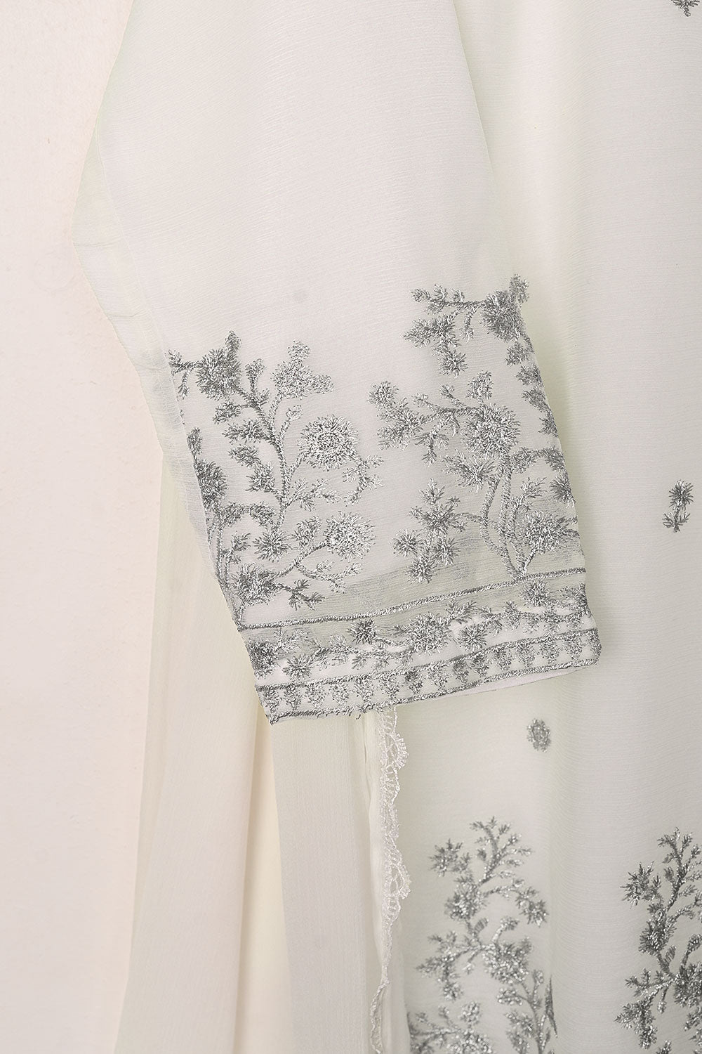 3Pc Ready to Wear Embroidered Chiffon Dress with Chiffon Dupatta & Malai Trouser