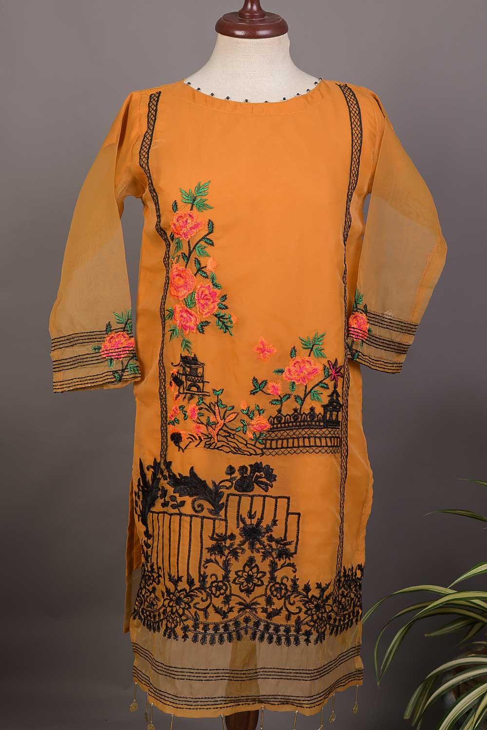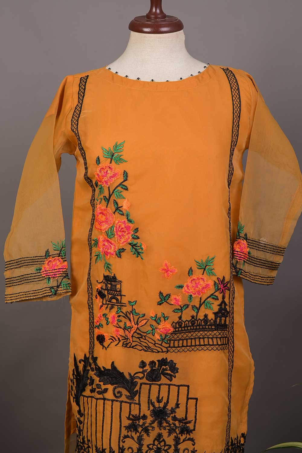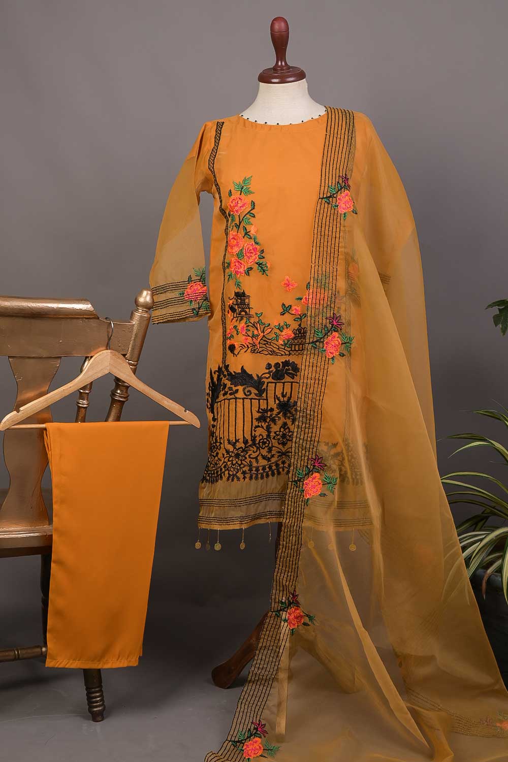 RTW-30B-Rust - 3Pc Stitched Embroidered Organza