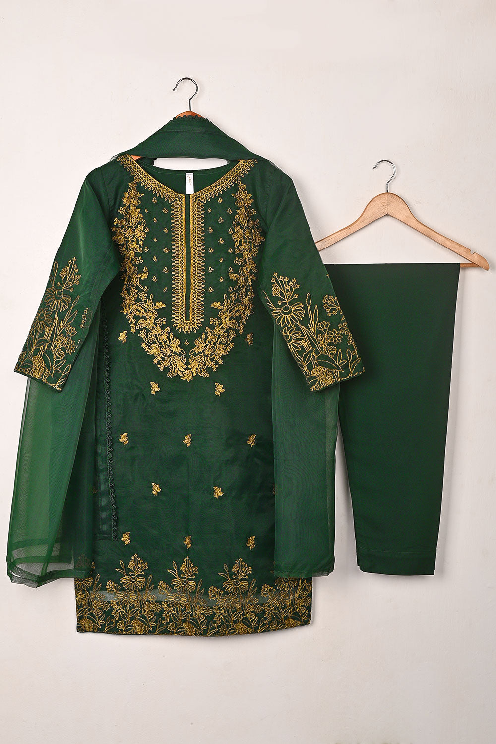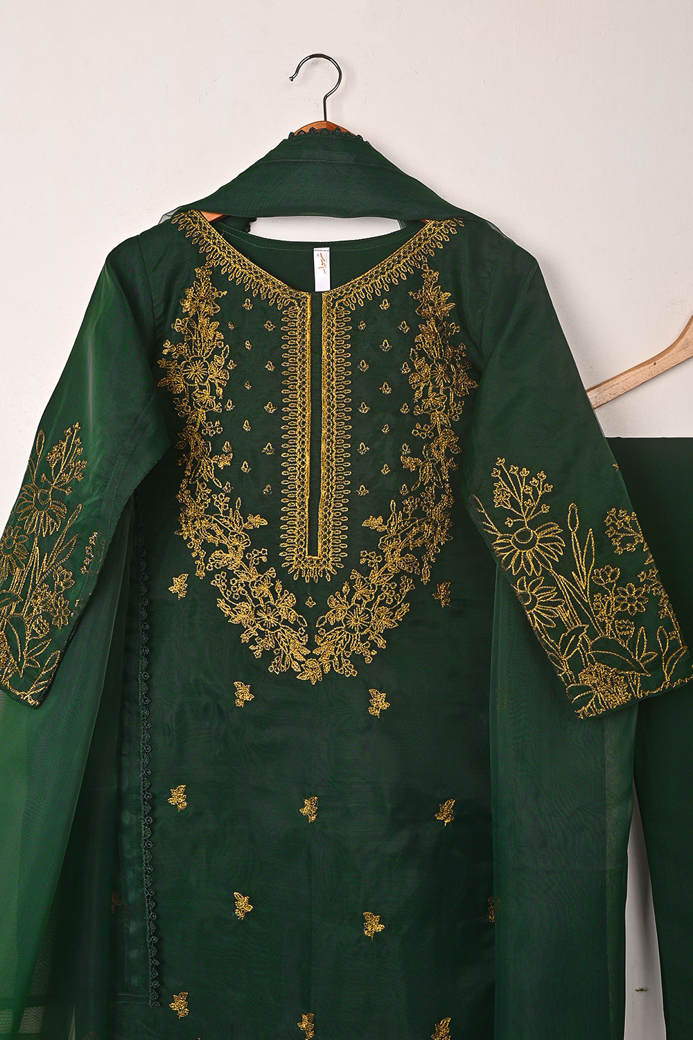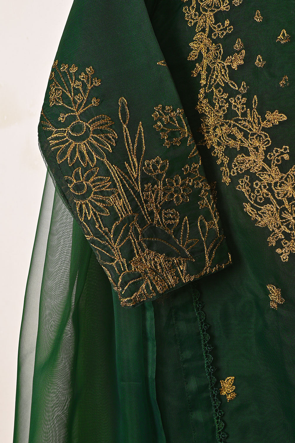 3Pc Ready to Wear Embroidered Organza Dress with Organza Dupatta & Malai Trouser