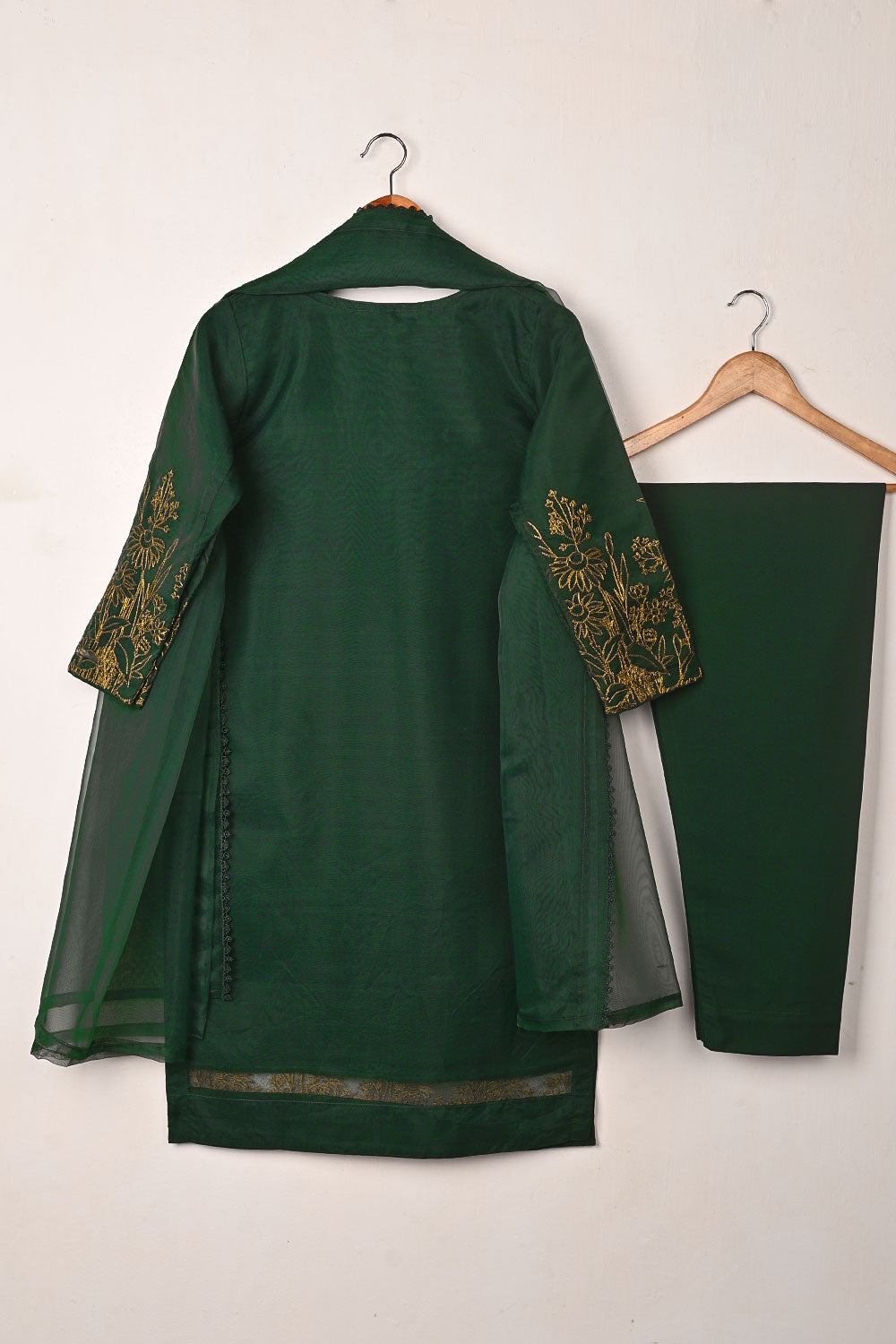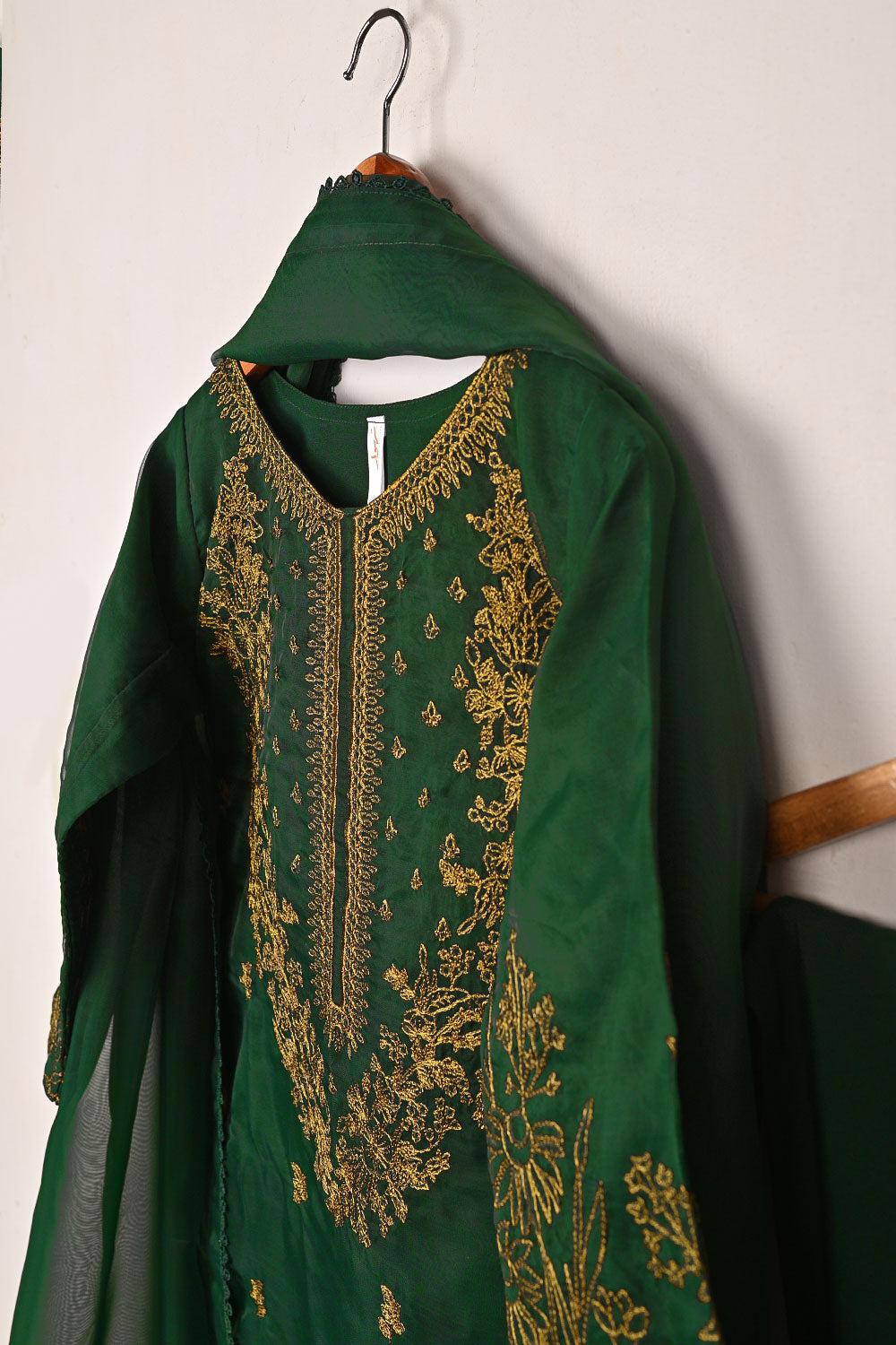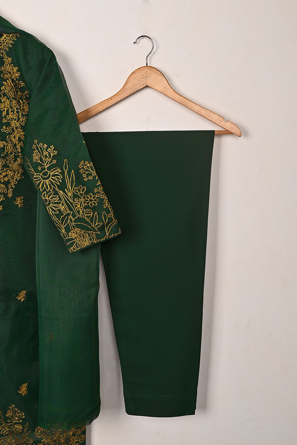3Pc Ready to Wear Embroidered Organza Dress with Organza Dupatta & Malai Trouser