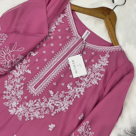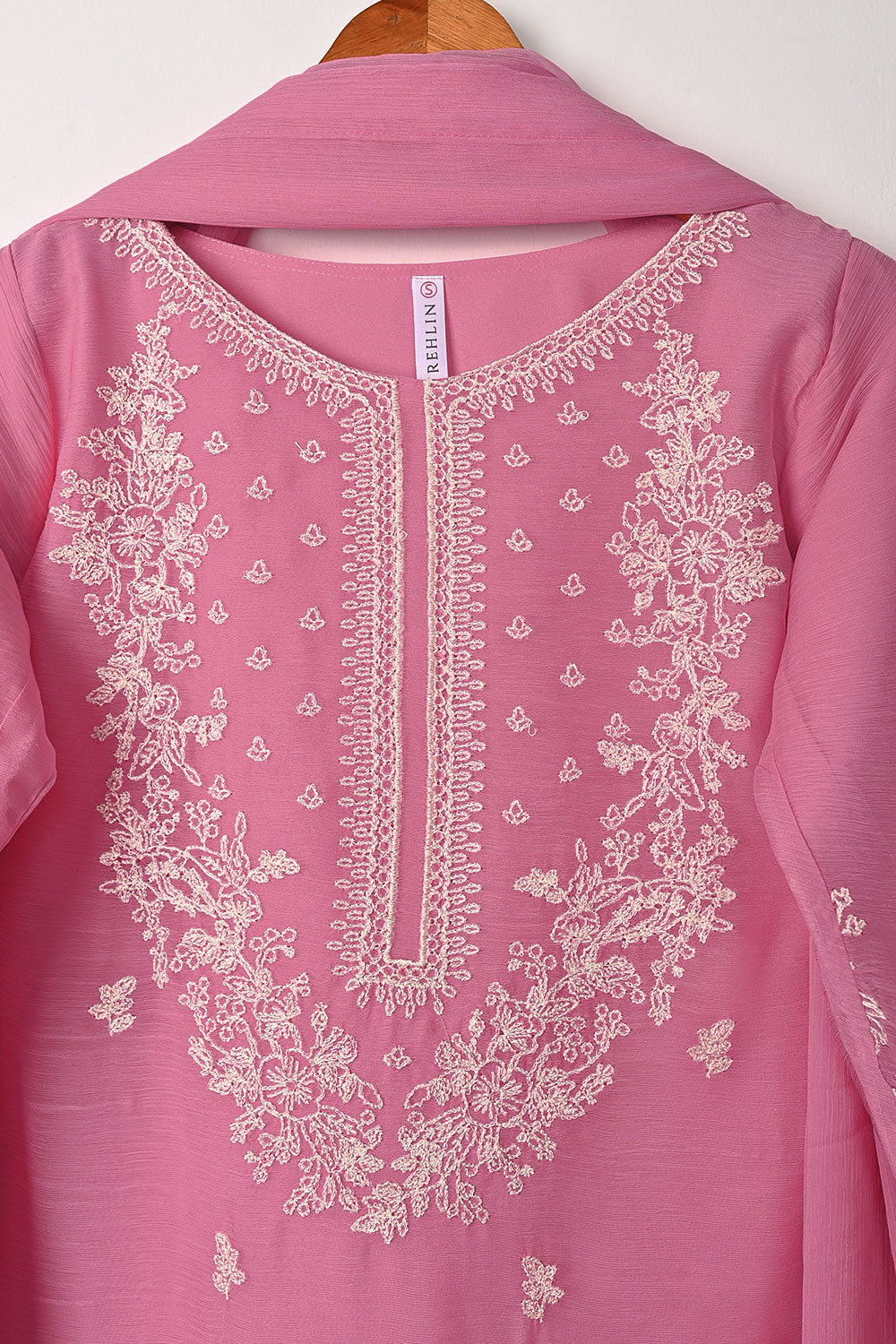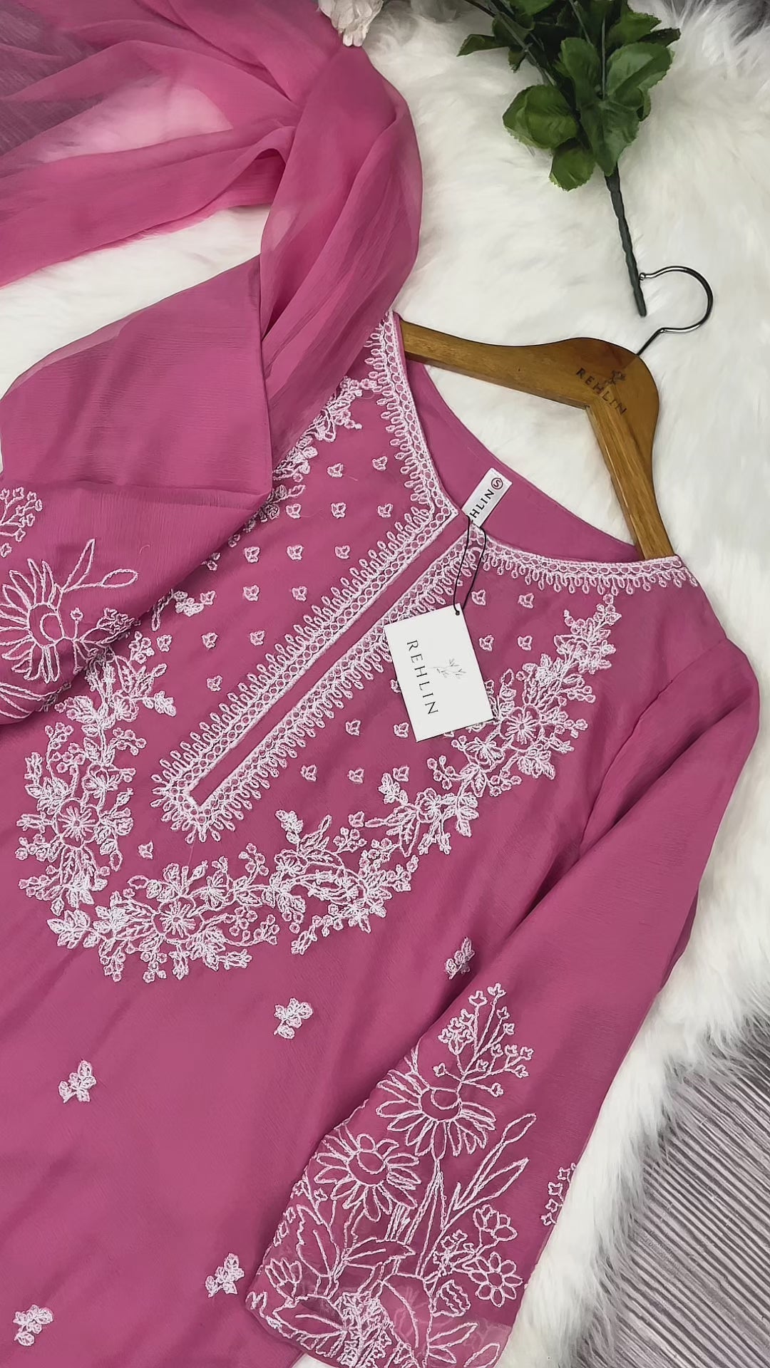 3Pc Ready to Wear Embroidered Chiffon Dress with Chiffon Dupatta & Malai Trouser