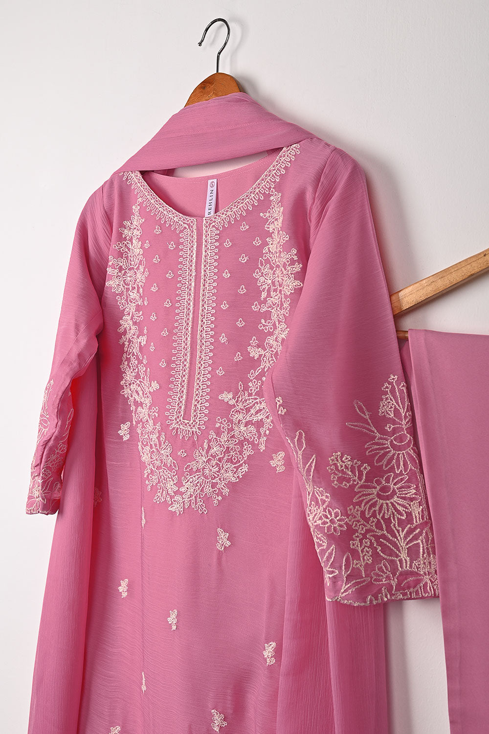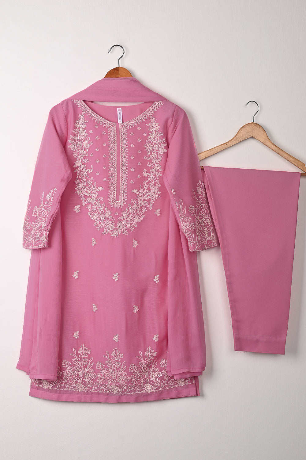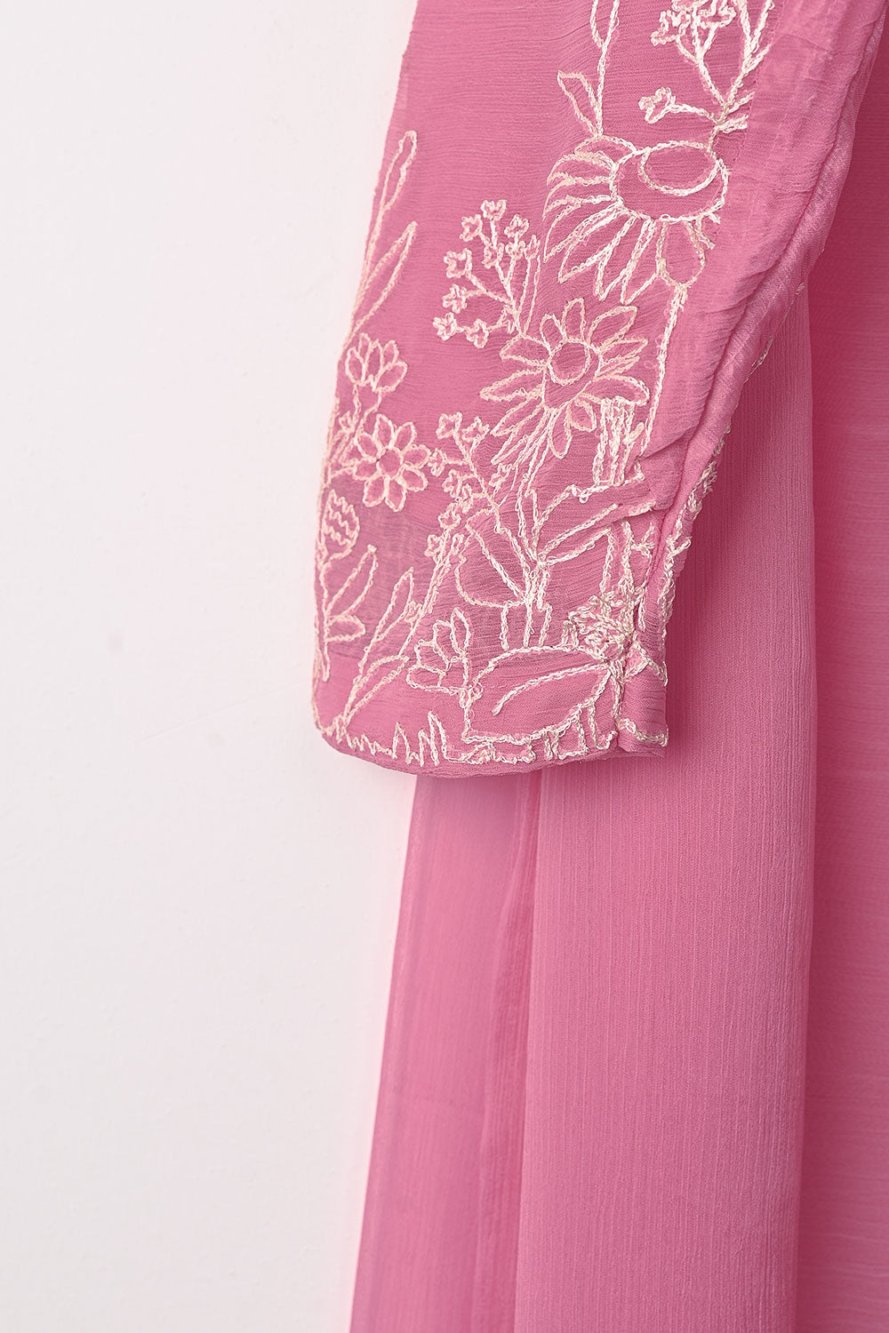 3Pc Ready to Wear Embroidered Chiffon Dress with Chiffon Dupatta & Malai Trouser