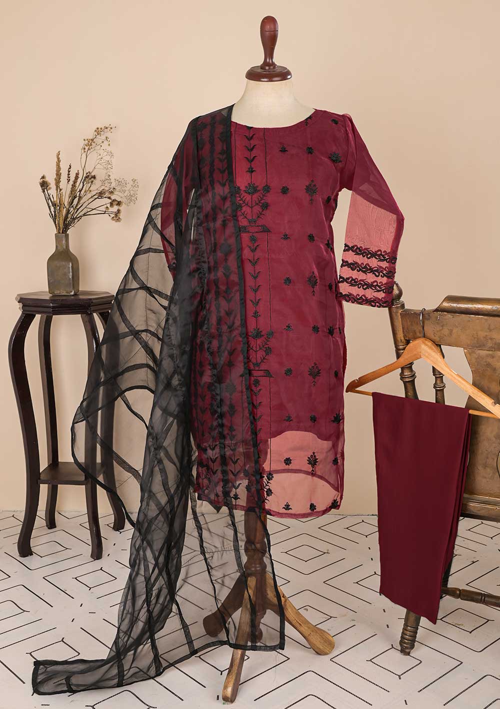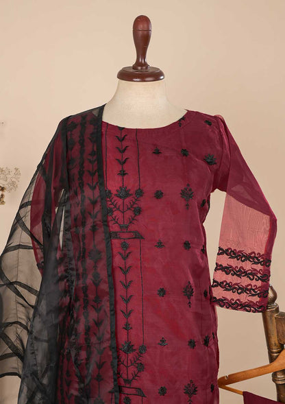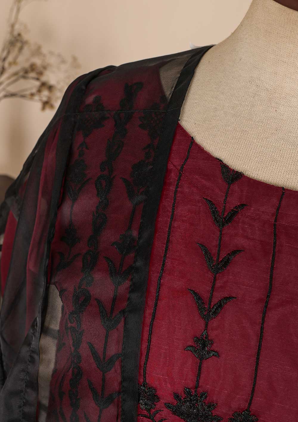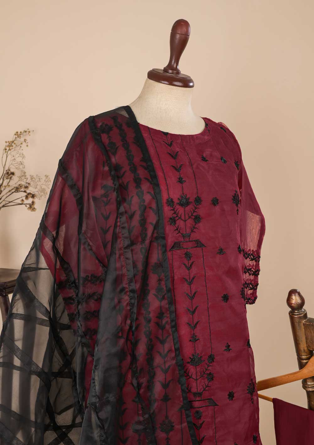 RTW-34A-MAROON - 3Pc Stitched Organza Dress