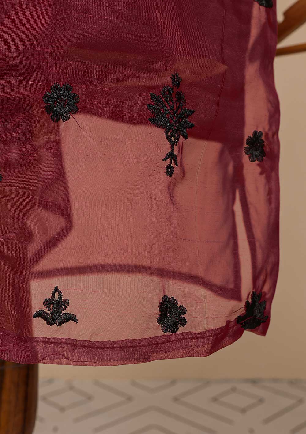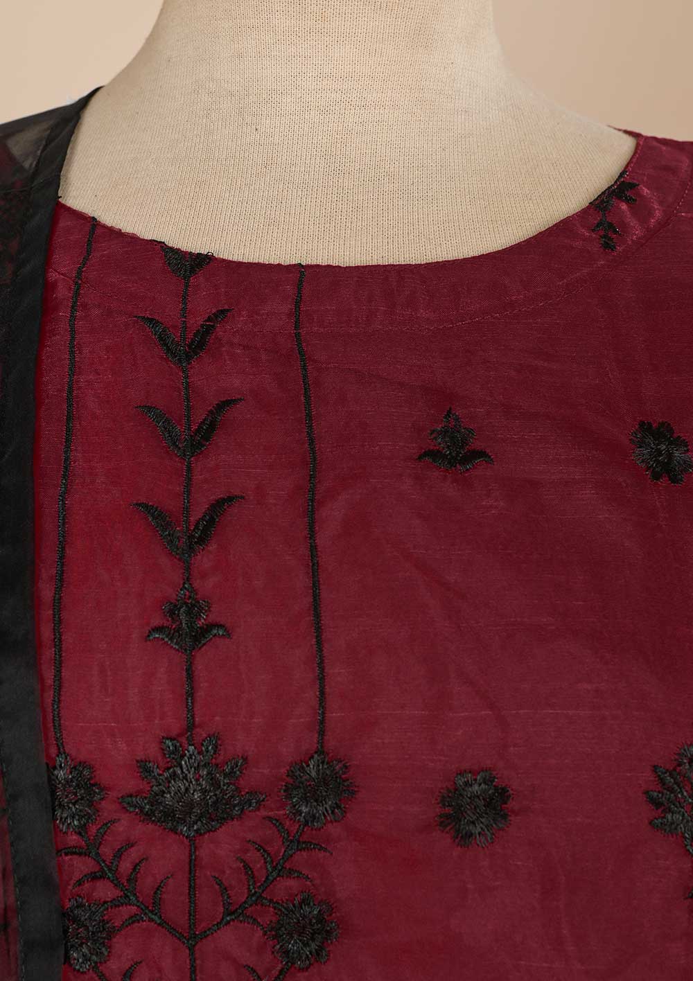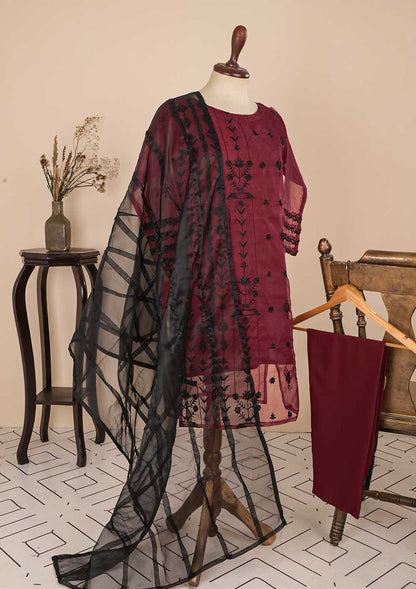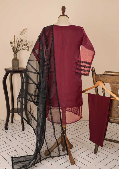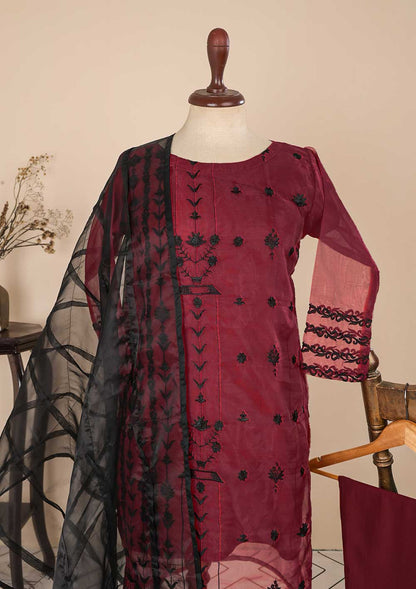 RTW-34A-MAROON - 3Pc Stitched Organza Dress