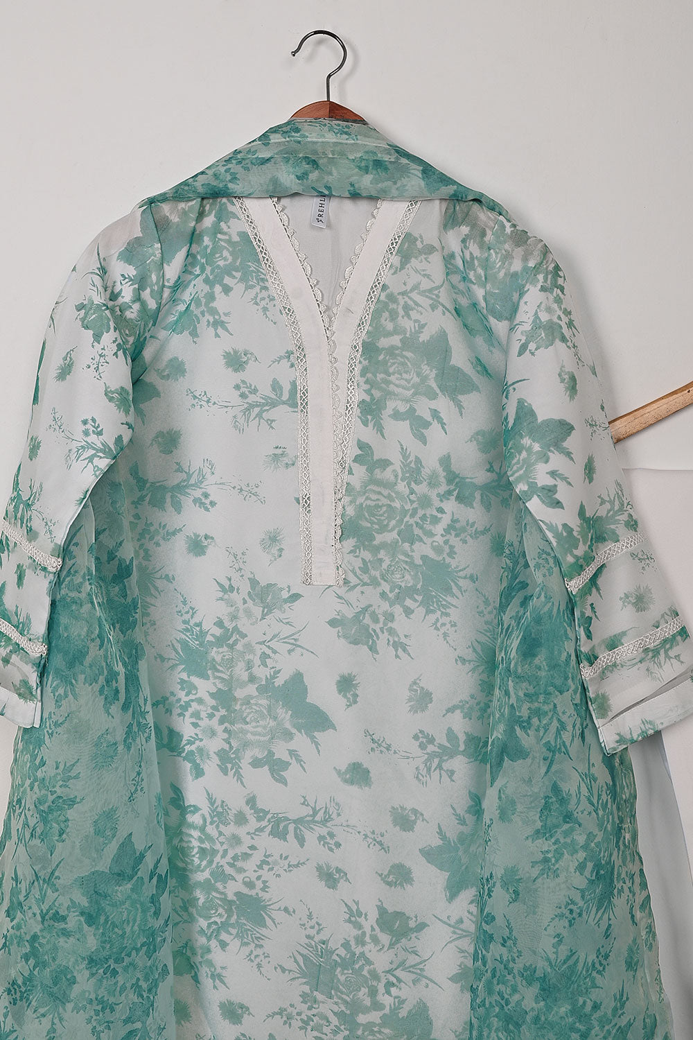 3Pc Ready to Wear Printed Organza Dress with Organza Printed Dupatta & Malai Trouser