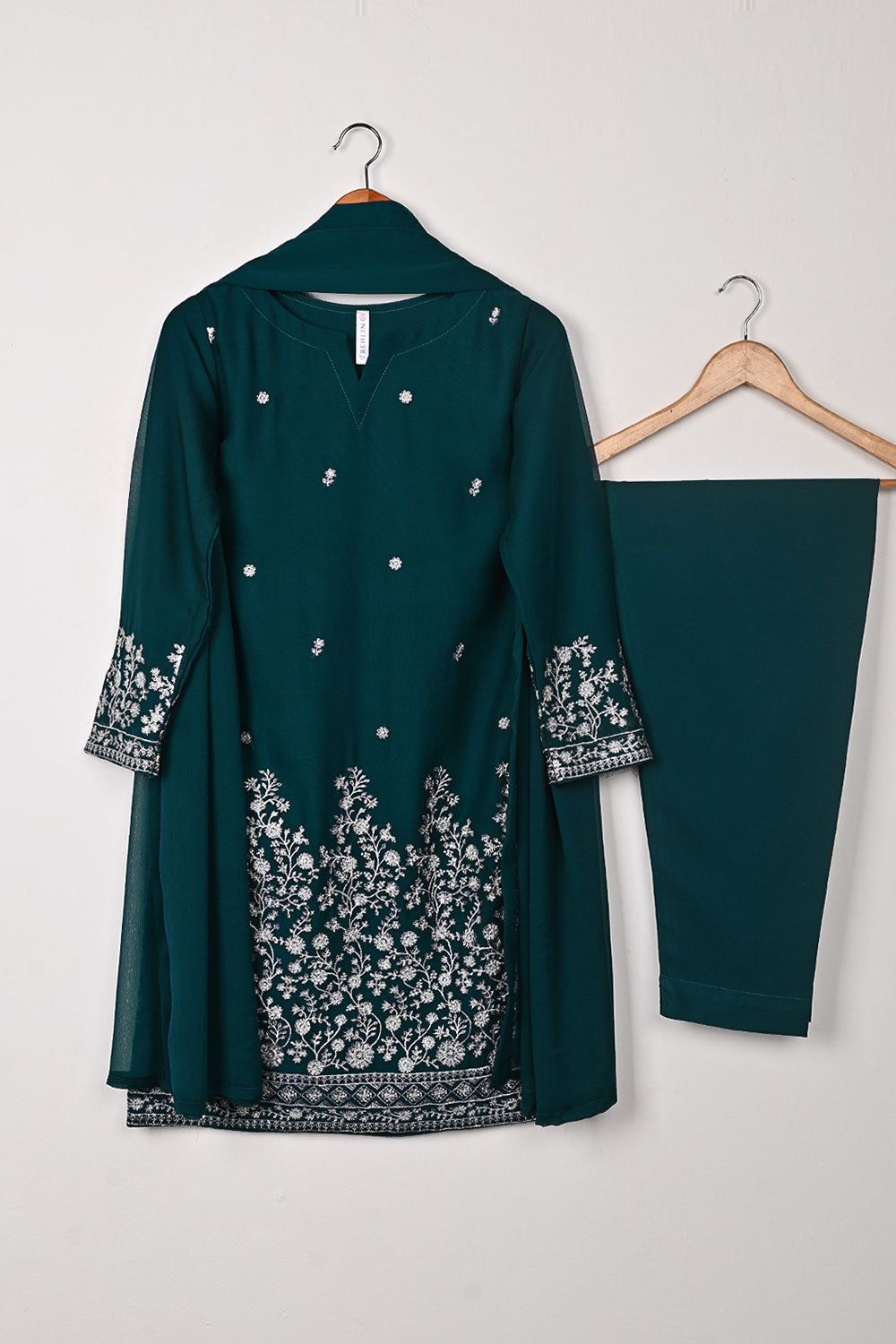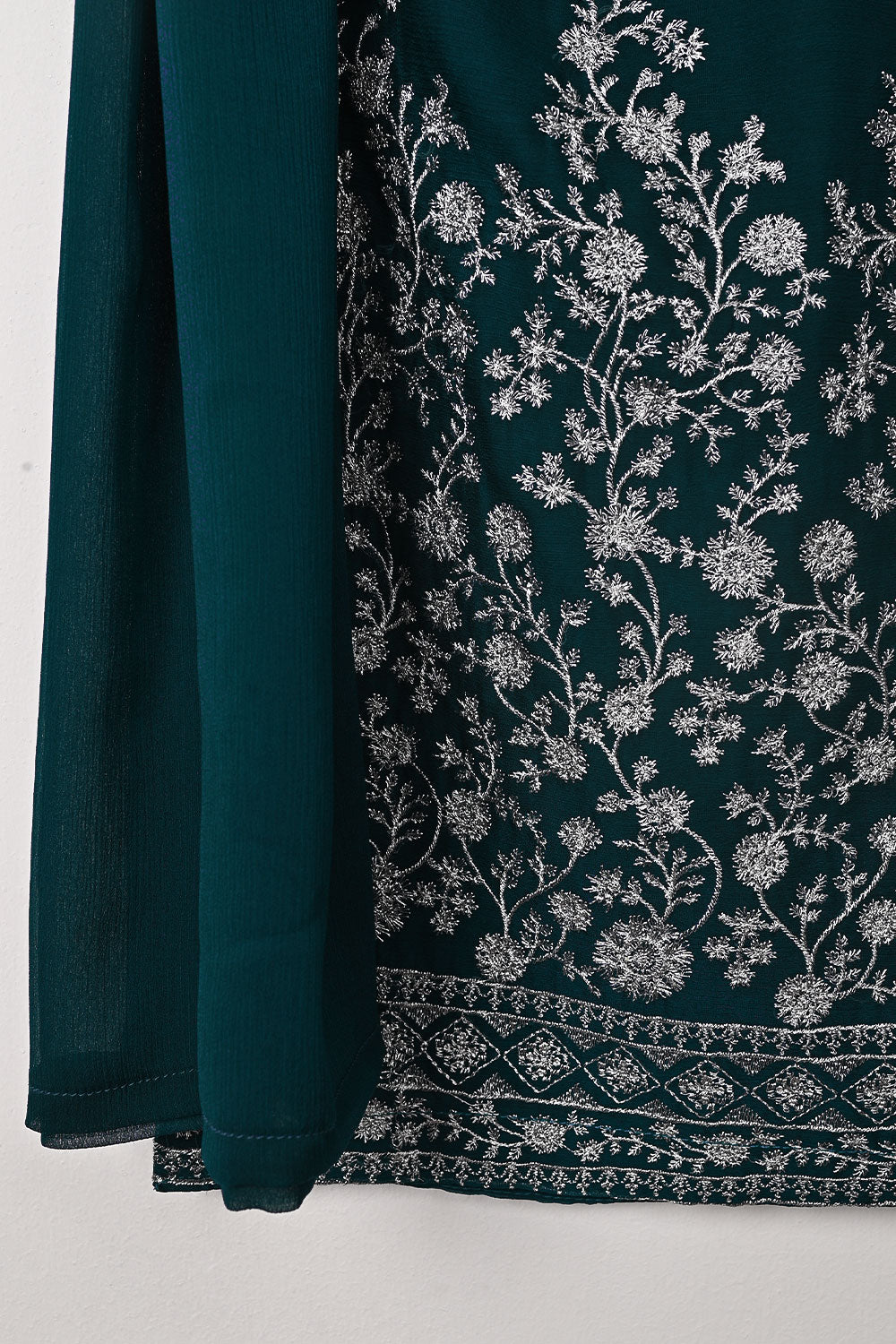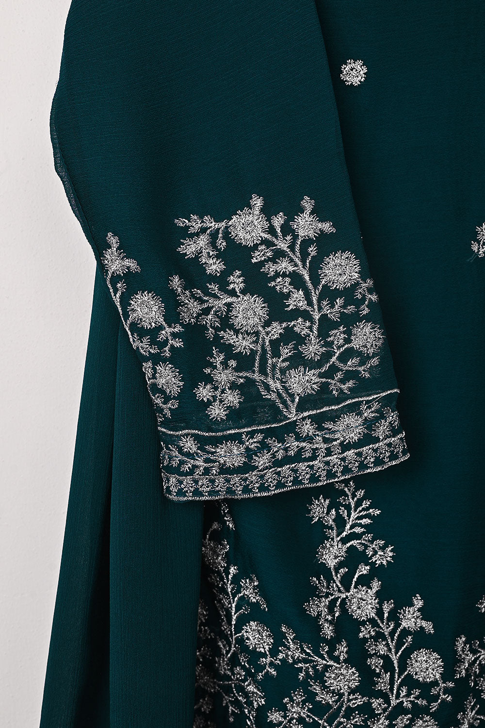 3Pc Ready to Wear Embroidered Chiffon Dress with Chiffon Embroidered Dupatta & Malai Trouser