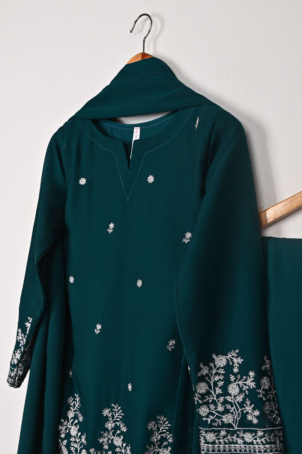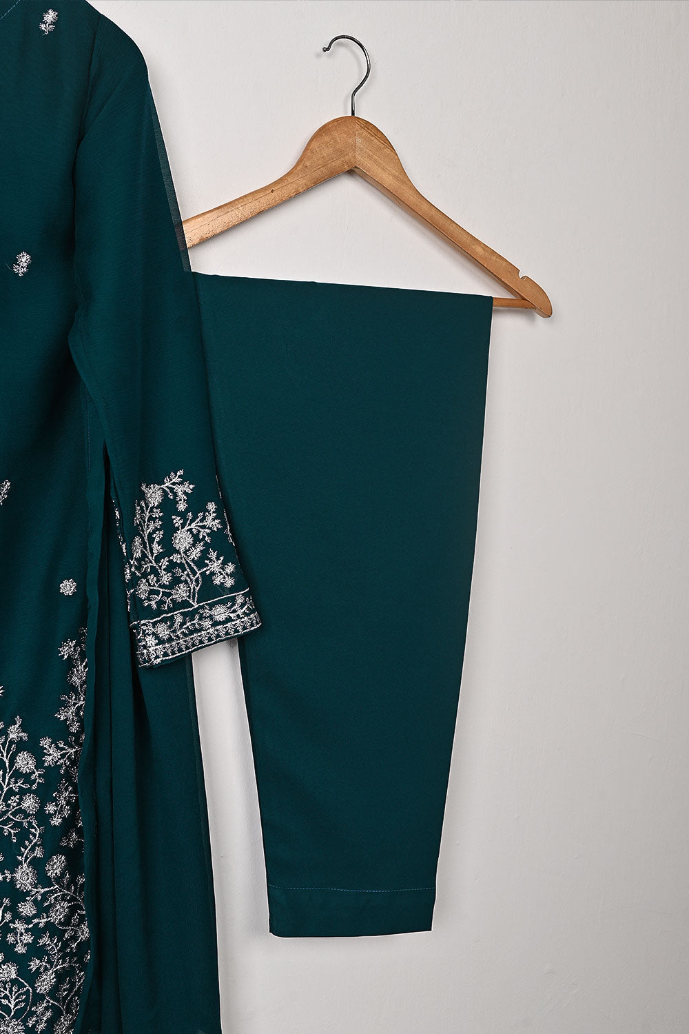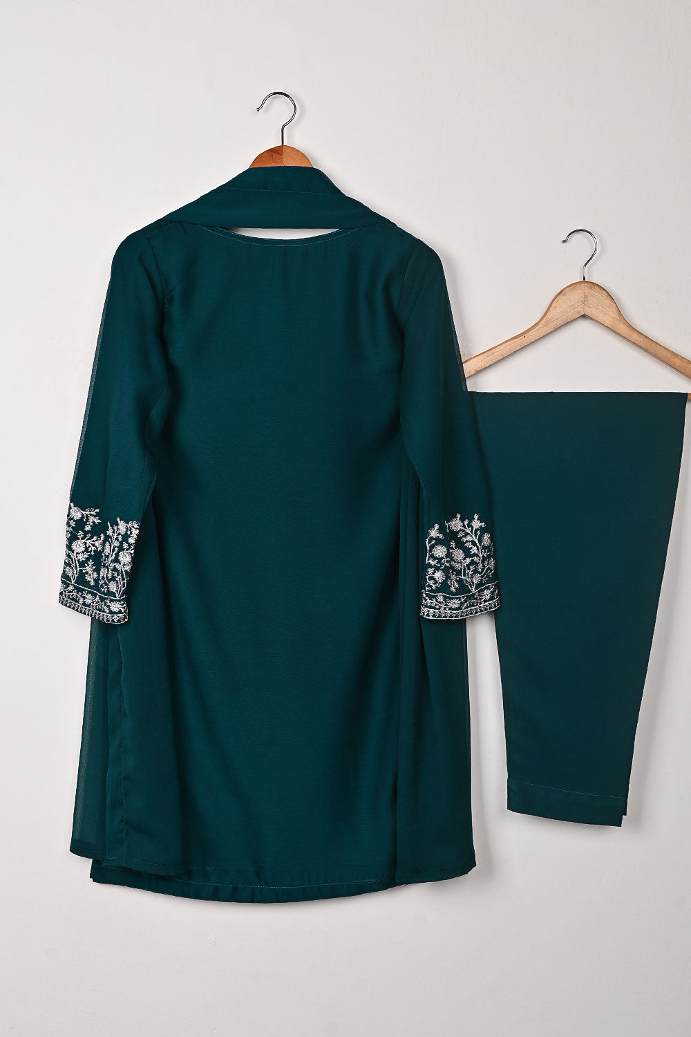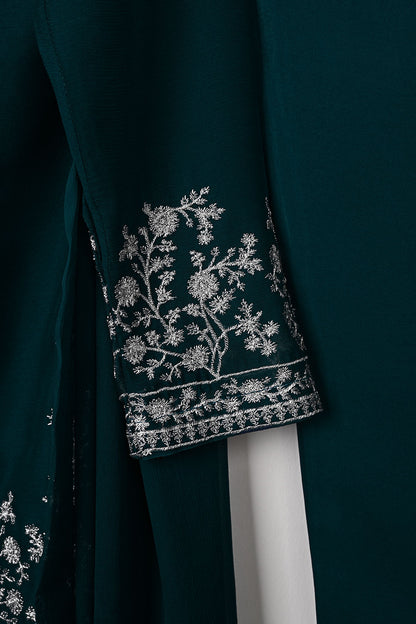3Pc Ready to Wear Embroidered Chiffon Dress with Chiffon Embroidered Dupatta & Malai Trouser