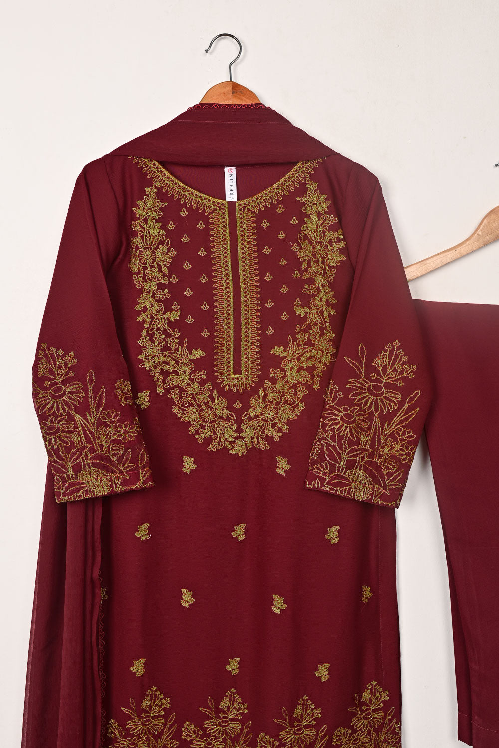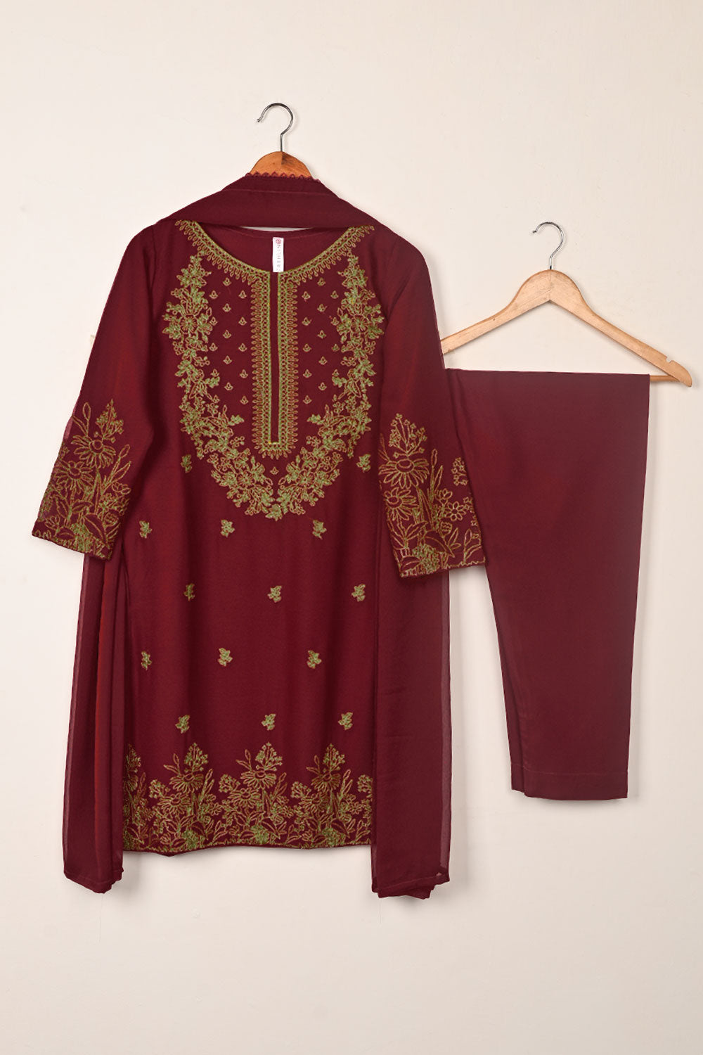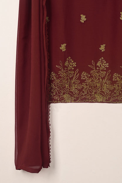 3Pc Ready to Wear Embroidered Chiffon Dress with Chiffon Embroidered Dupatta & Malai Trouser