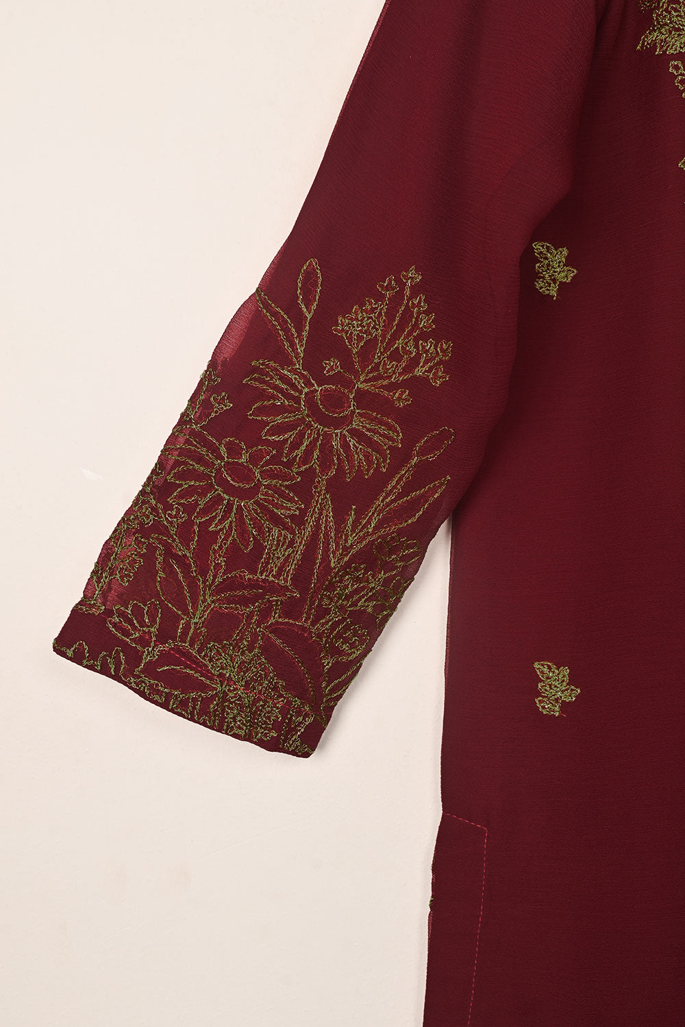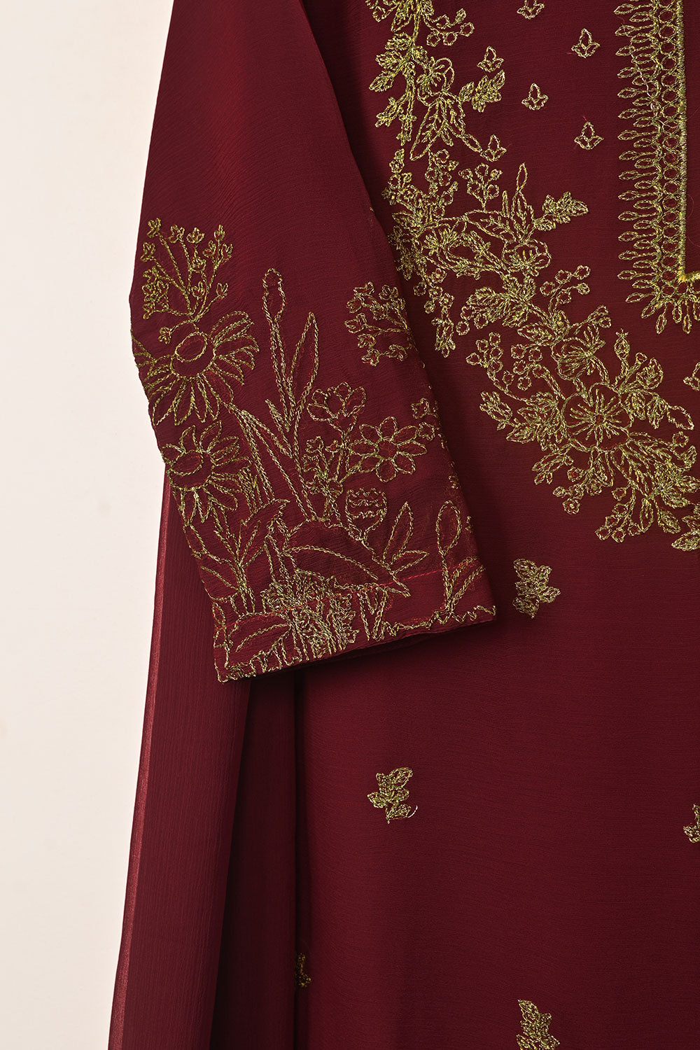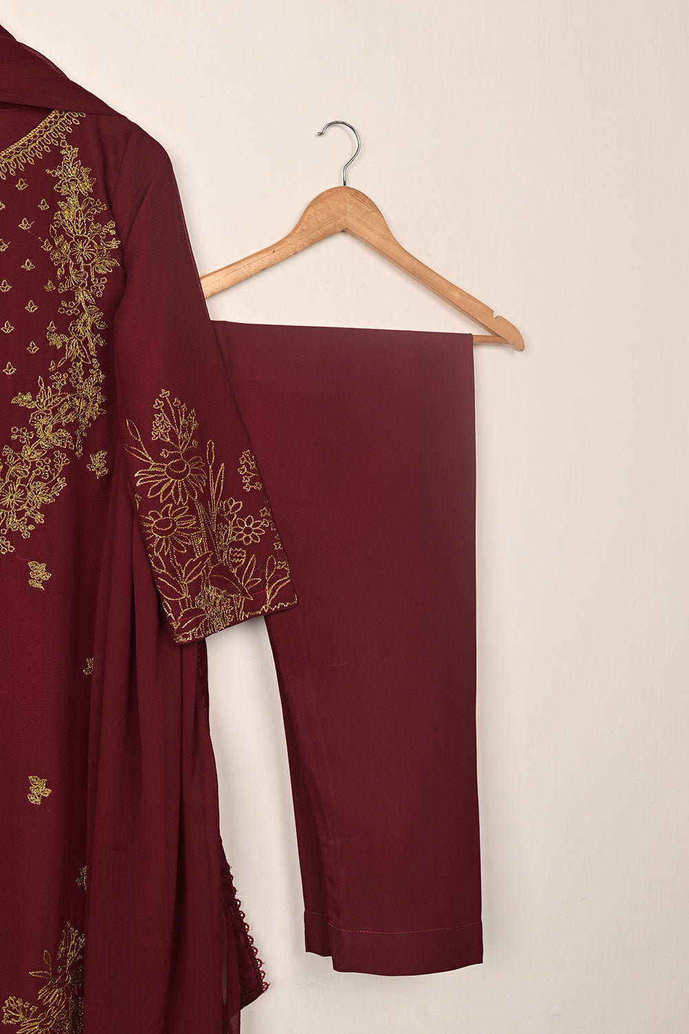 3Pc Ready to Wear Embroidered Chiffon Dress with Chiffon Embroidered Dupatta & Malai Trouser