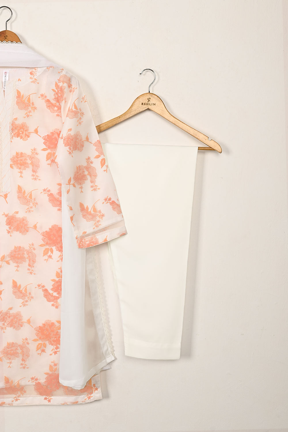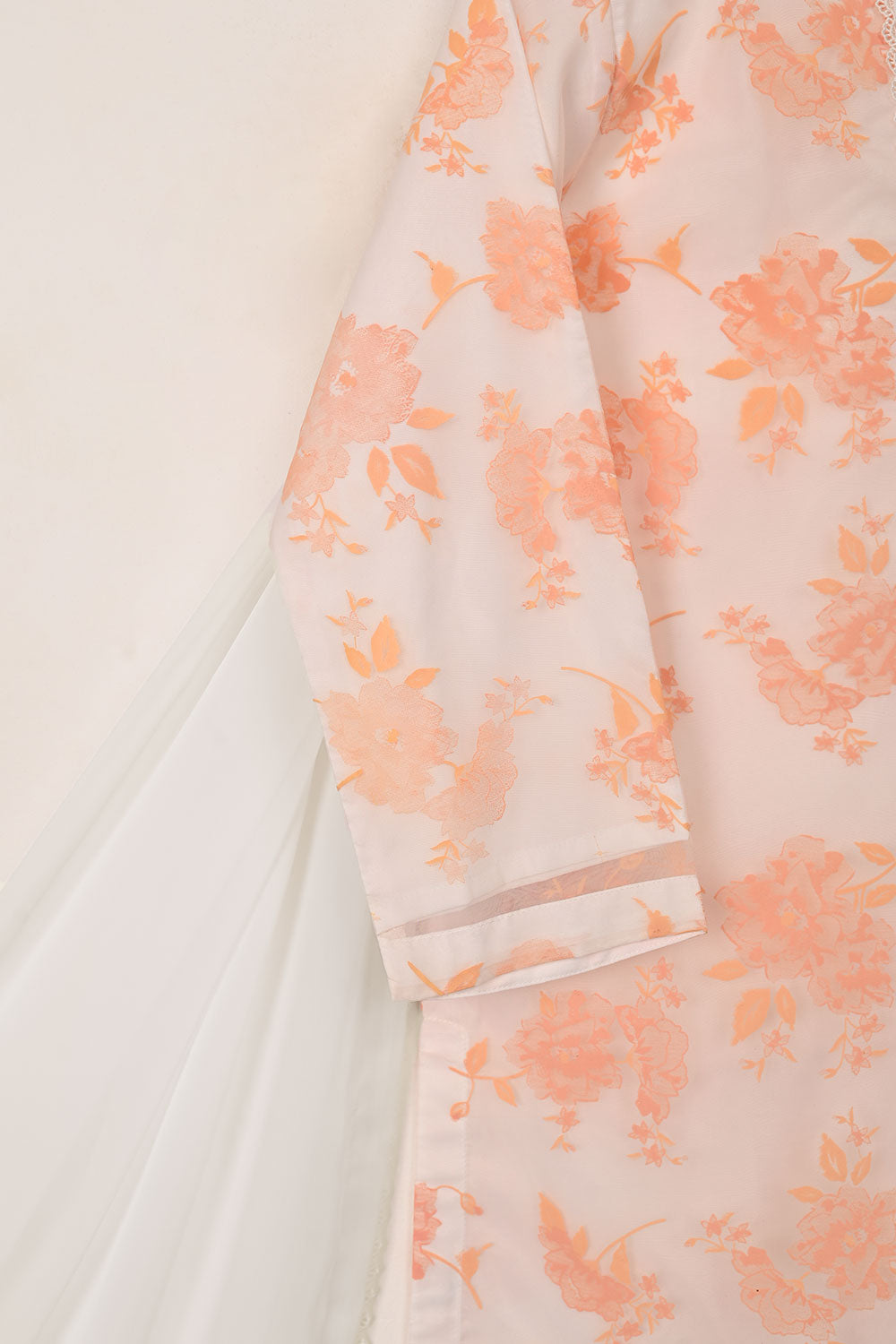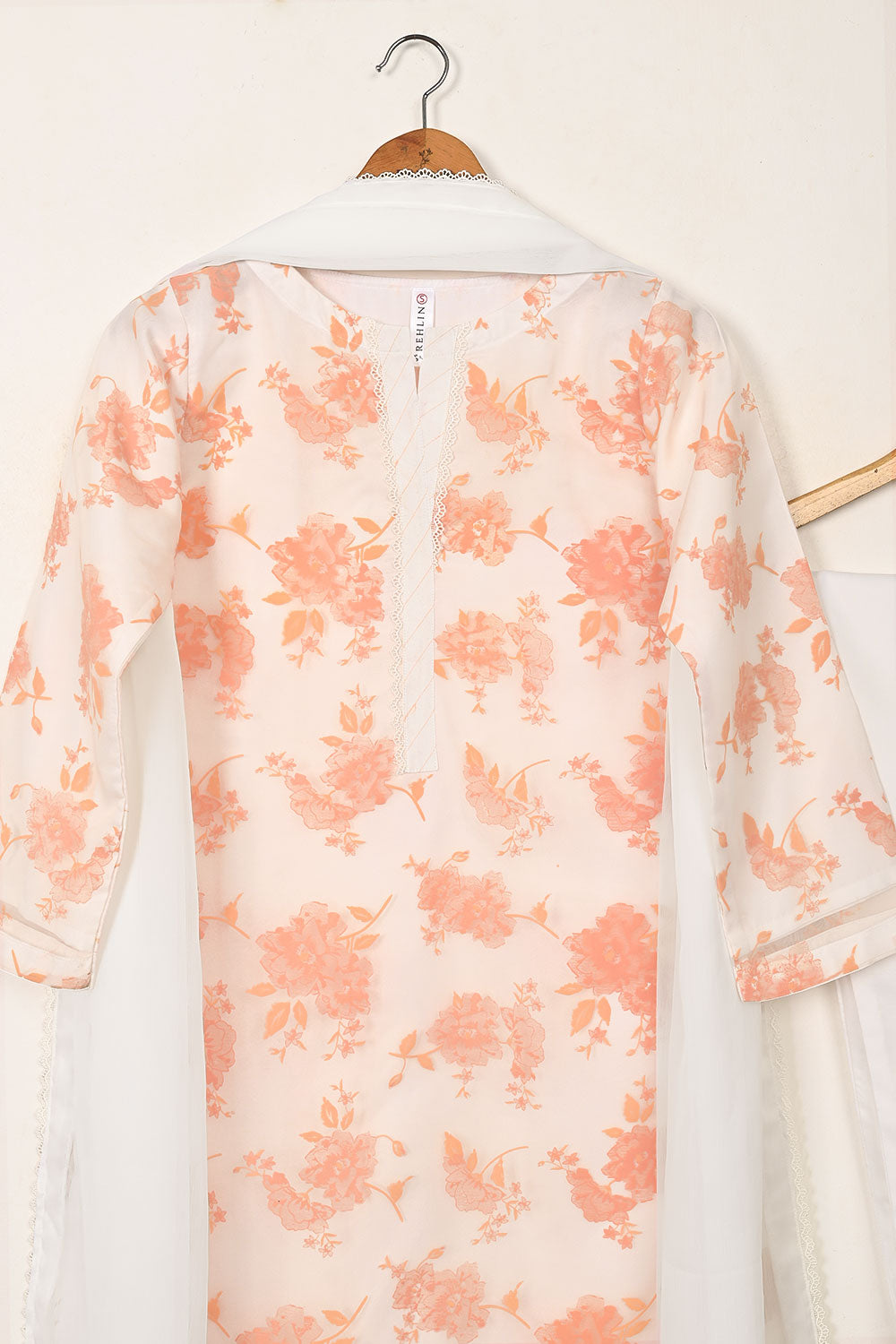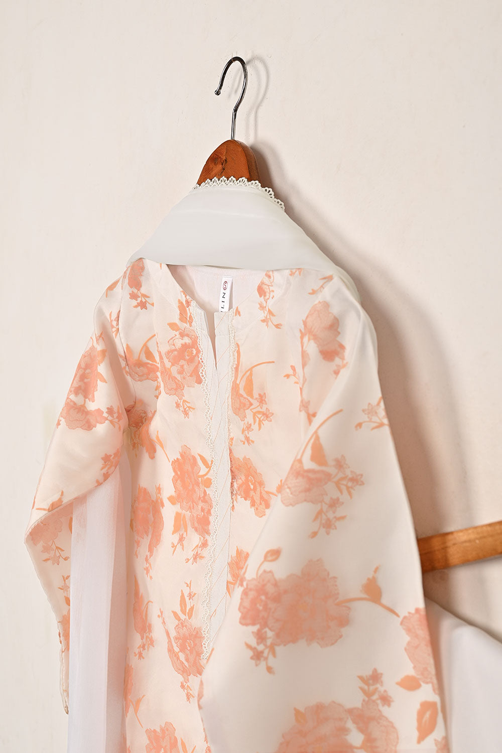 3Pc Ready to Wear Printed Organza Dress with Chiffon Dupatta & Malai Trouser