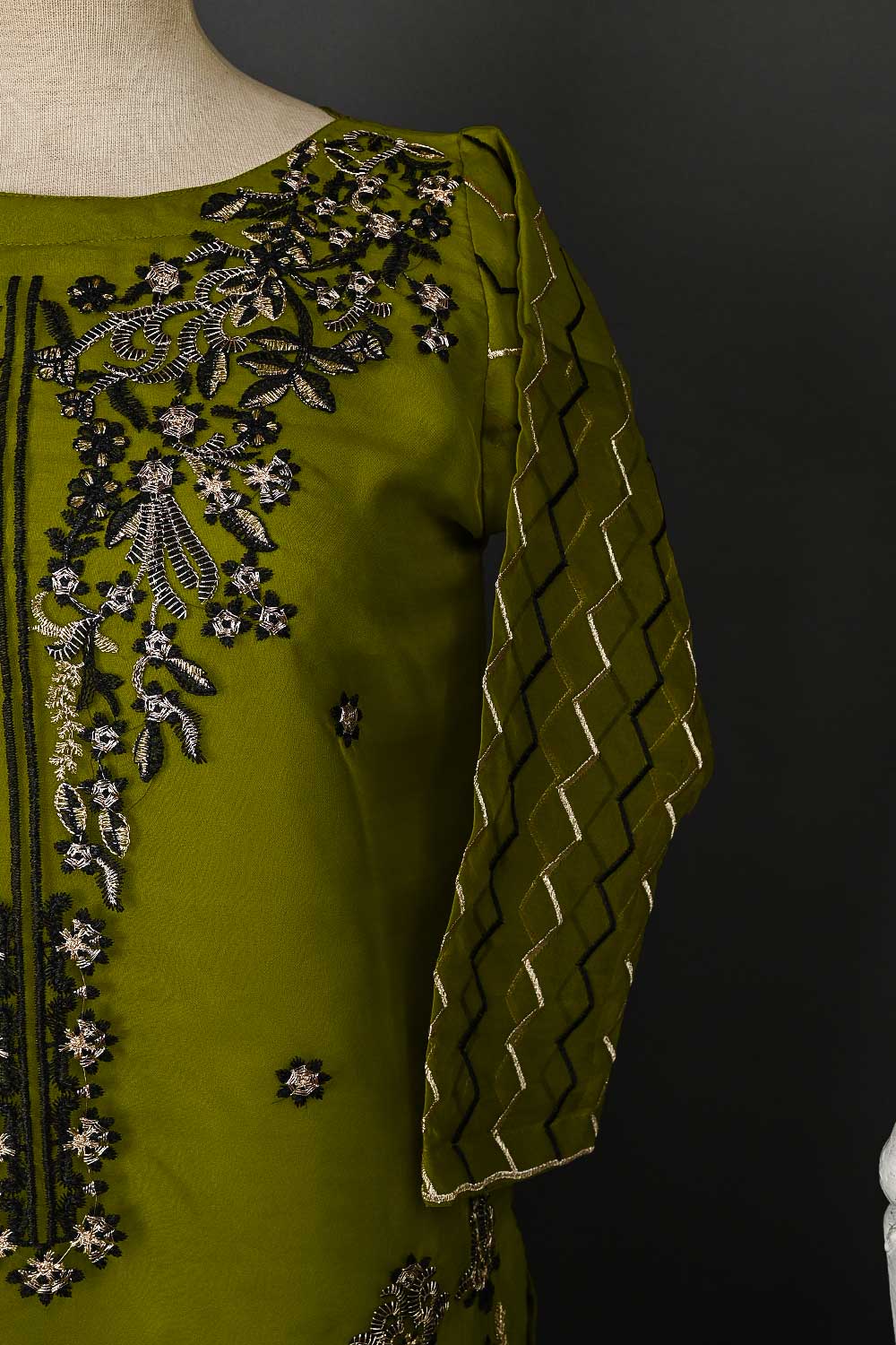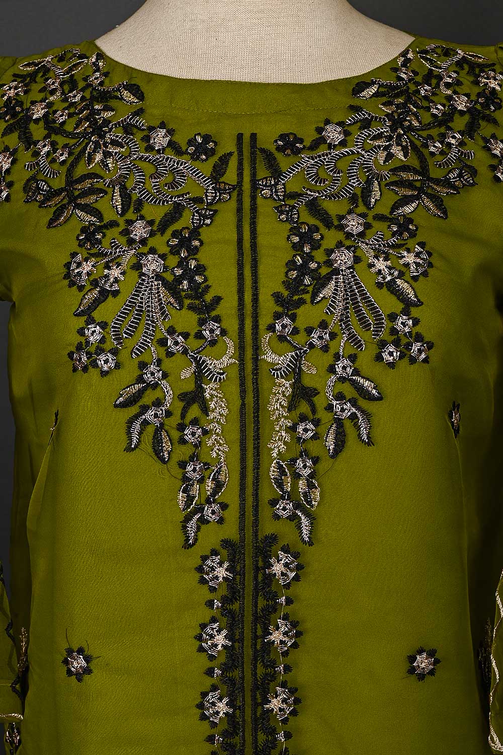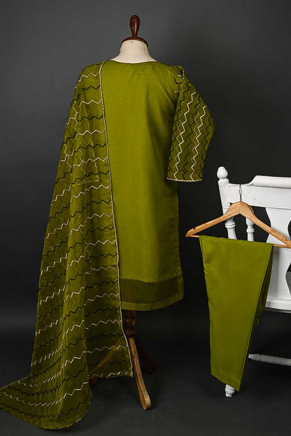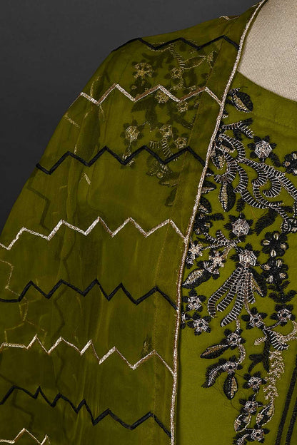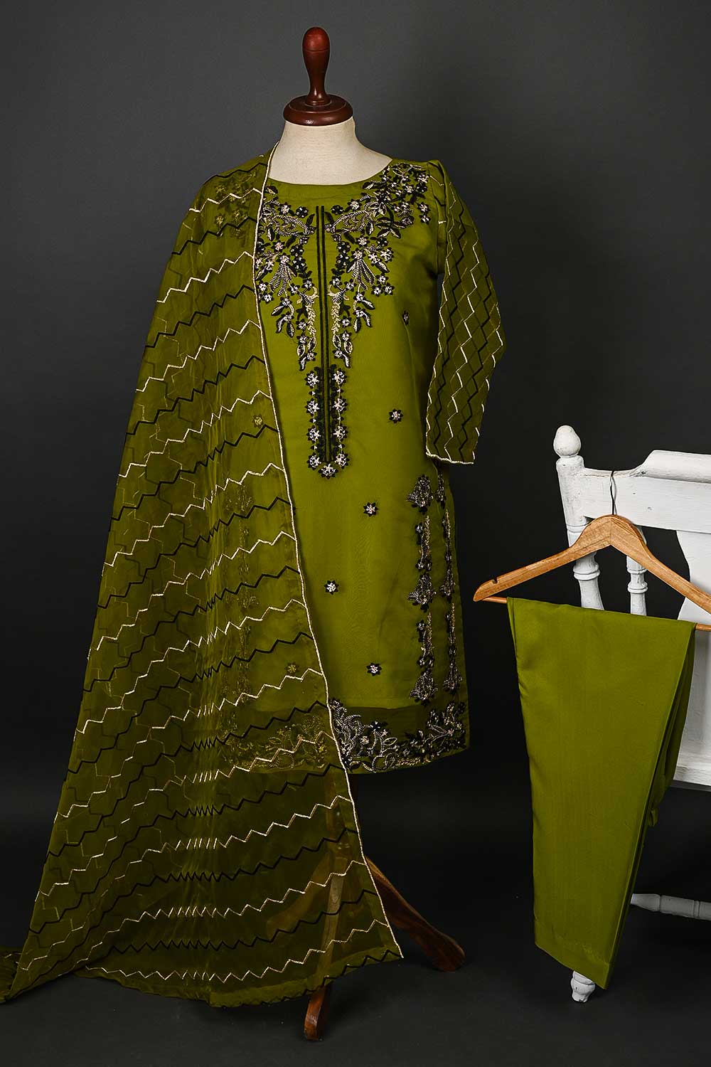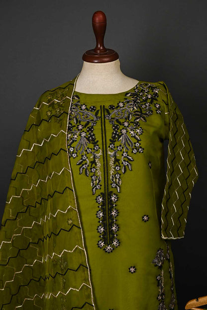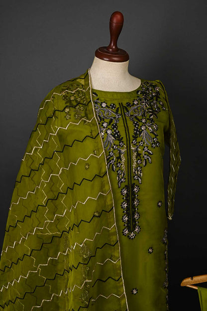 RTW-52-Moss - 3Pc Stitched Embroidered Organza Dress