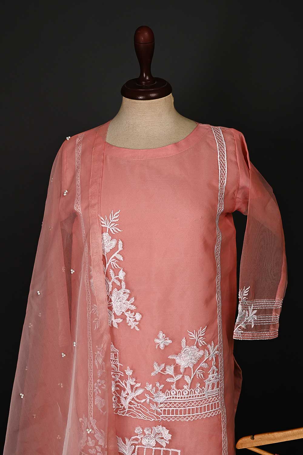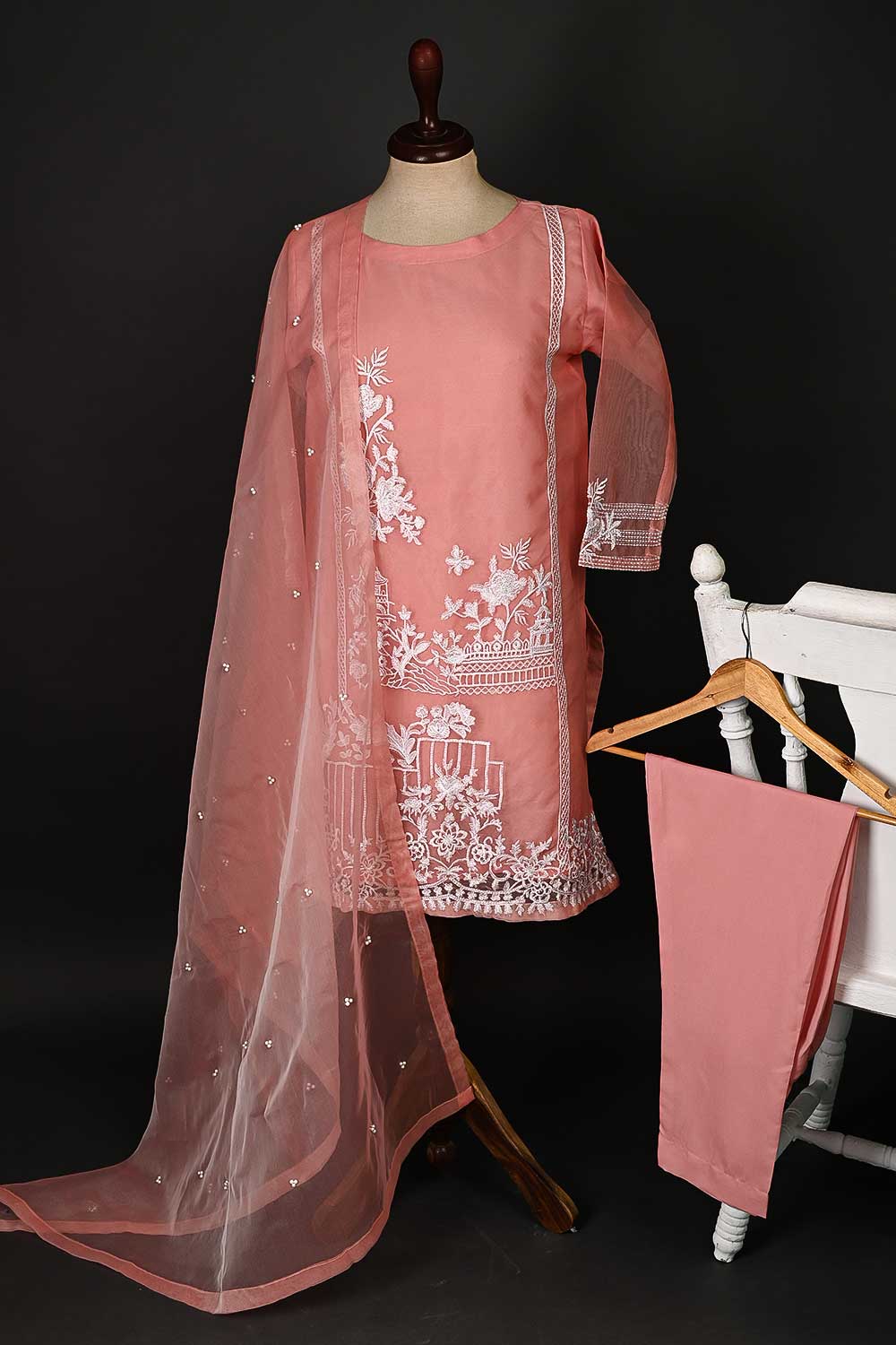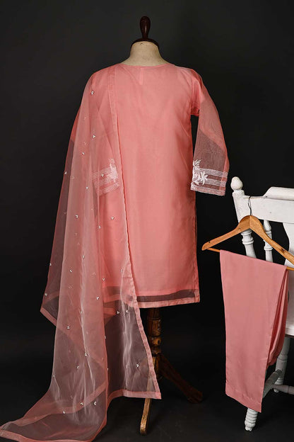 RTW-54-Pink - 3Pc Stitched Embroidered Organza Dress