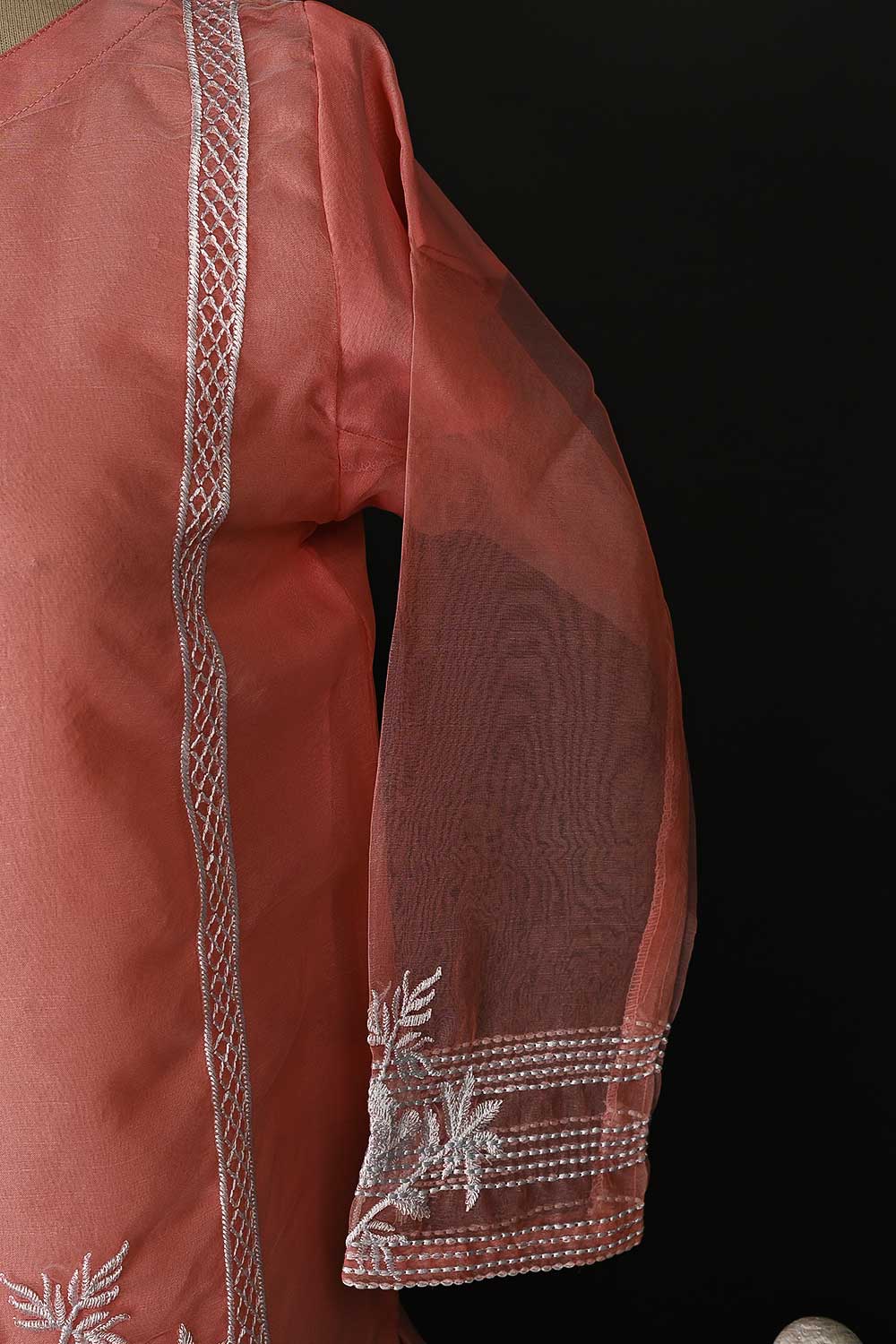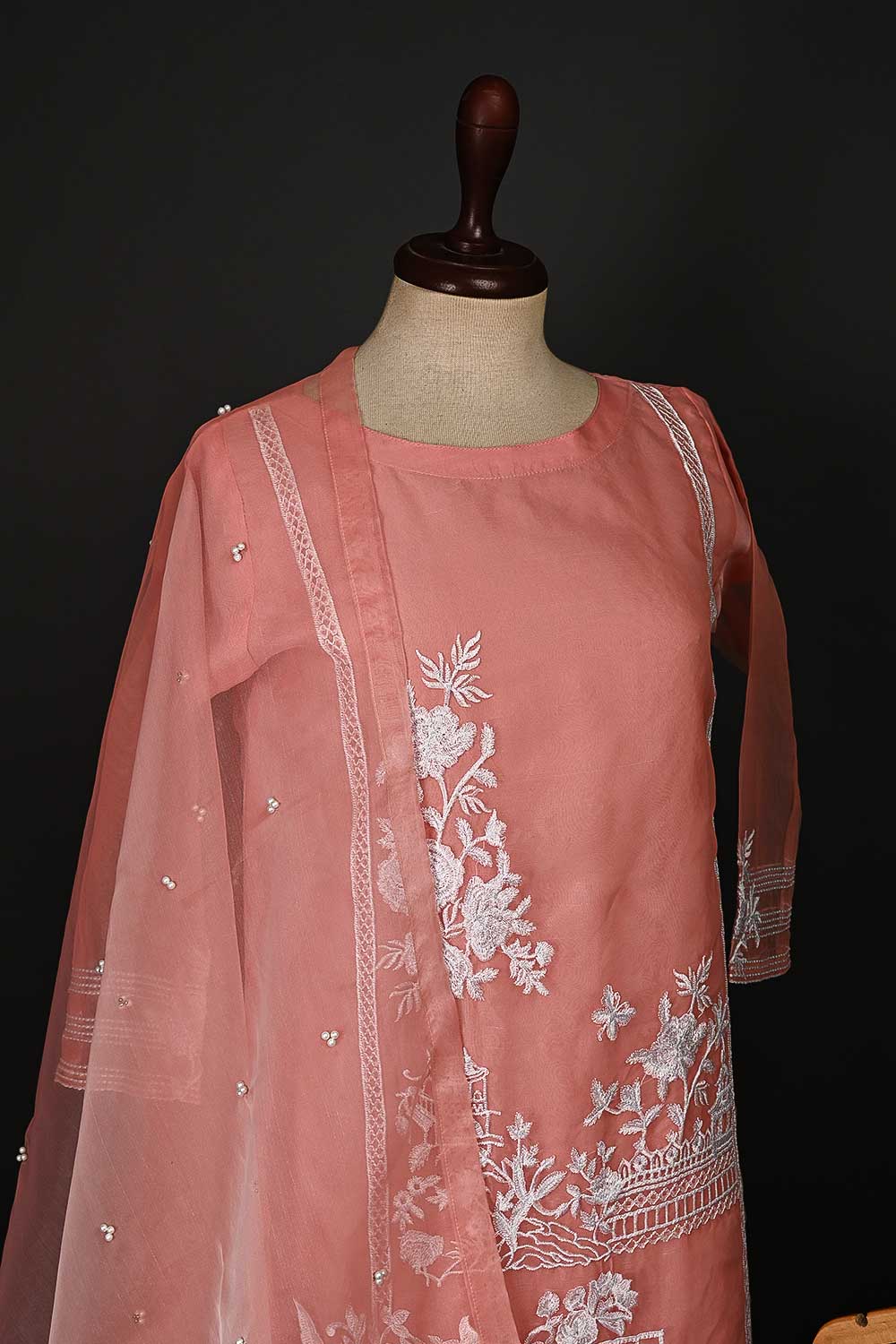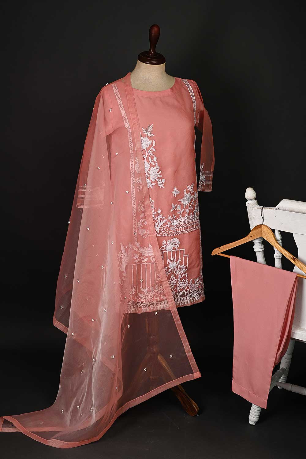 RTW-54-Pink - 3Pc Stitched Embroidered Organza Dress