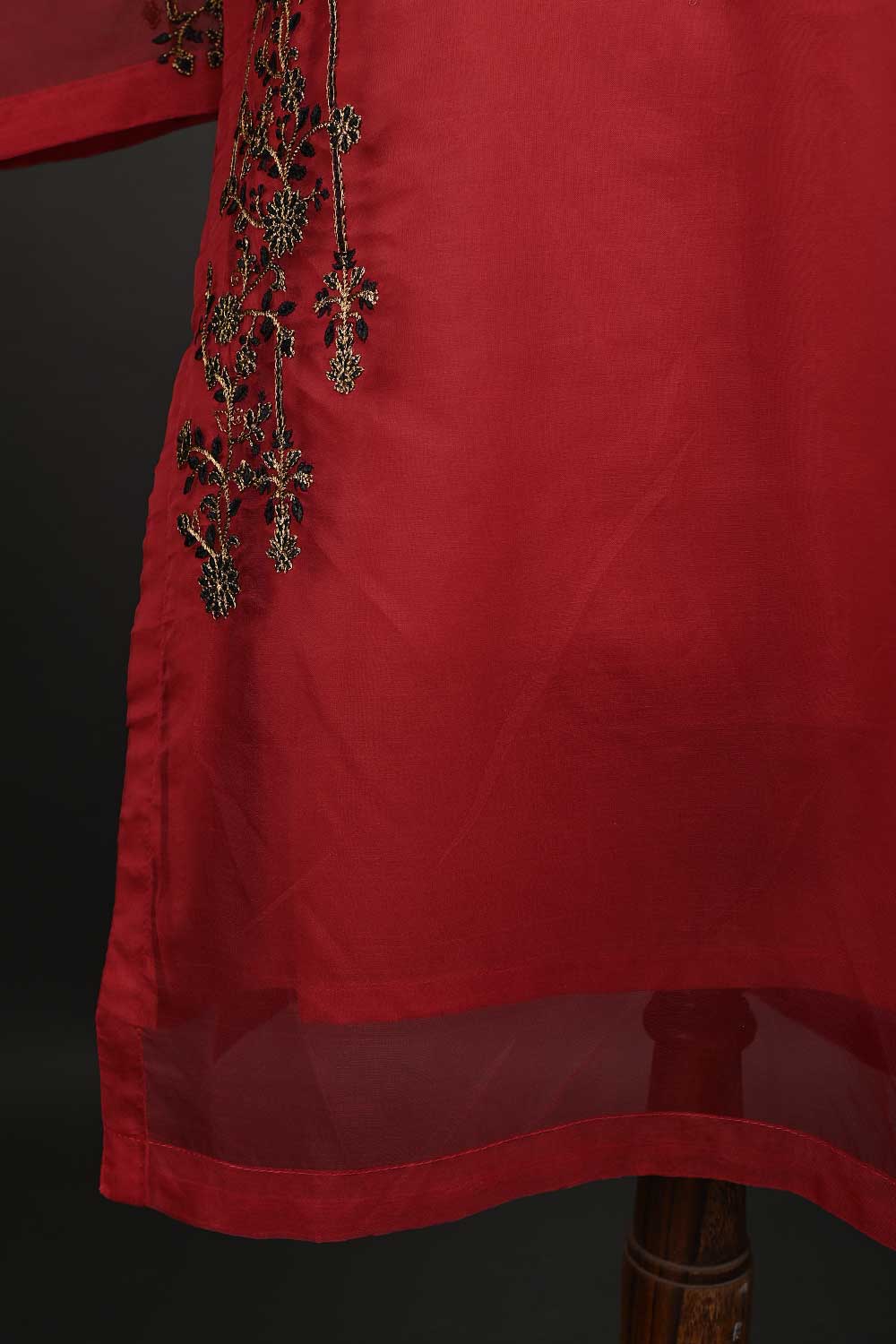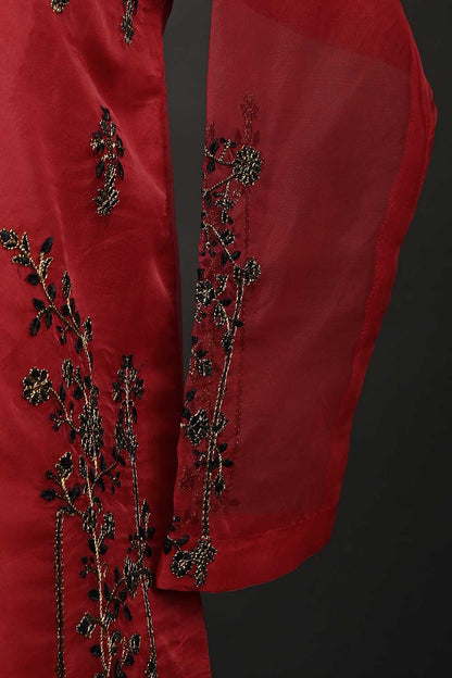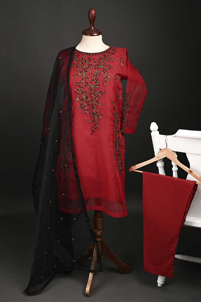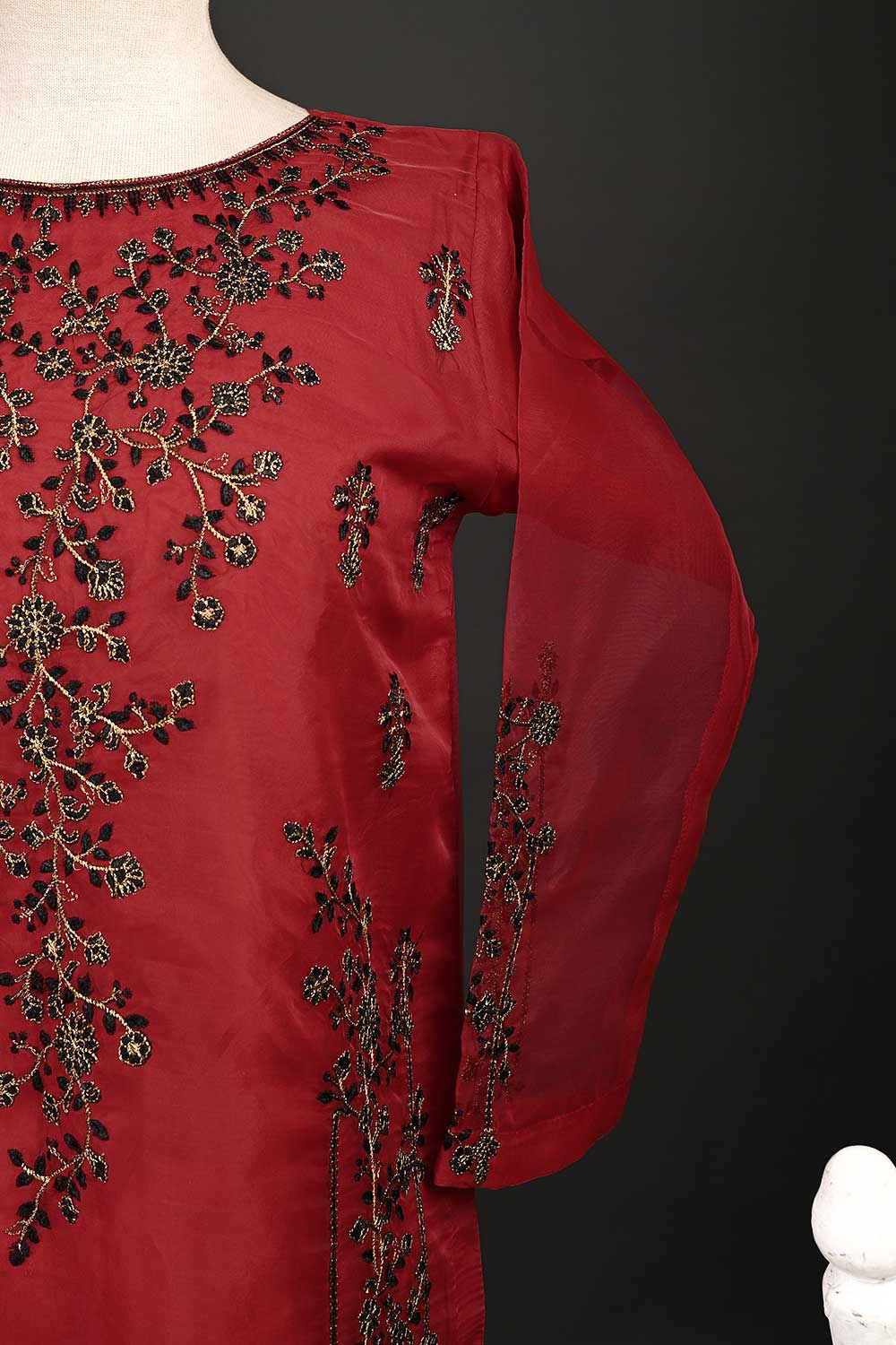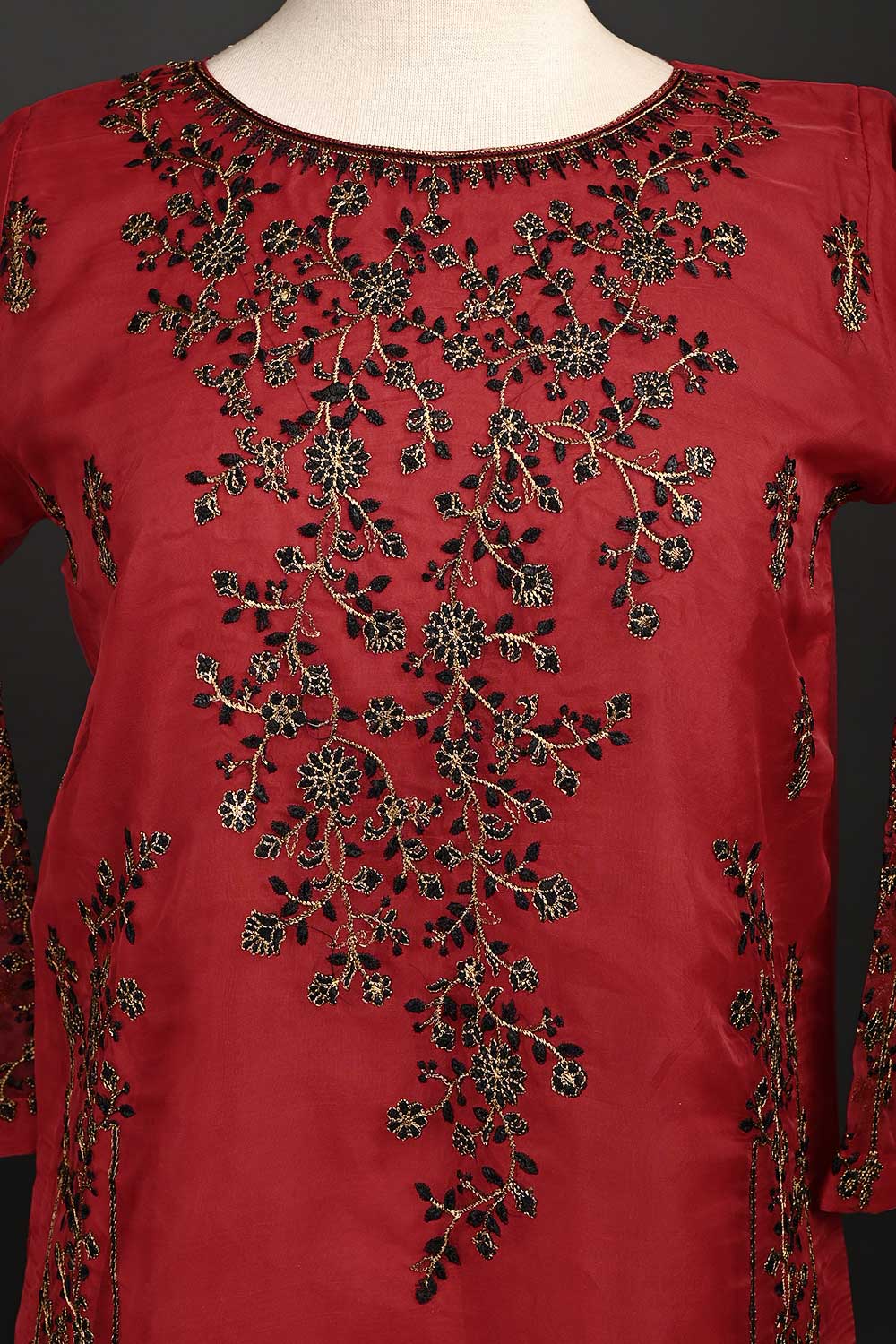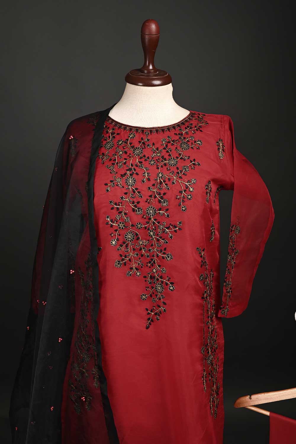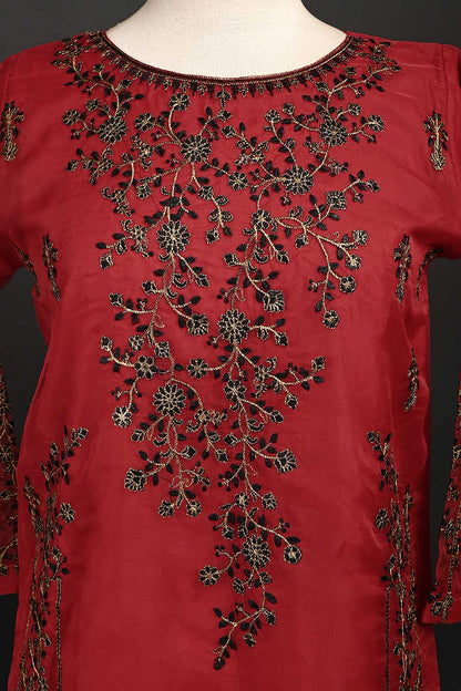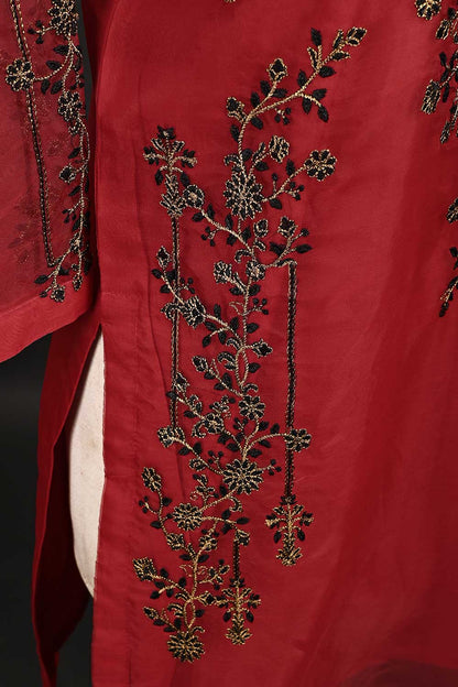 RTW-60-Red - 3Pc Stitched Embroidered Organza Dress