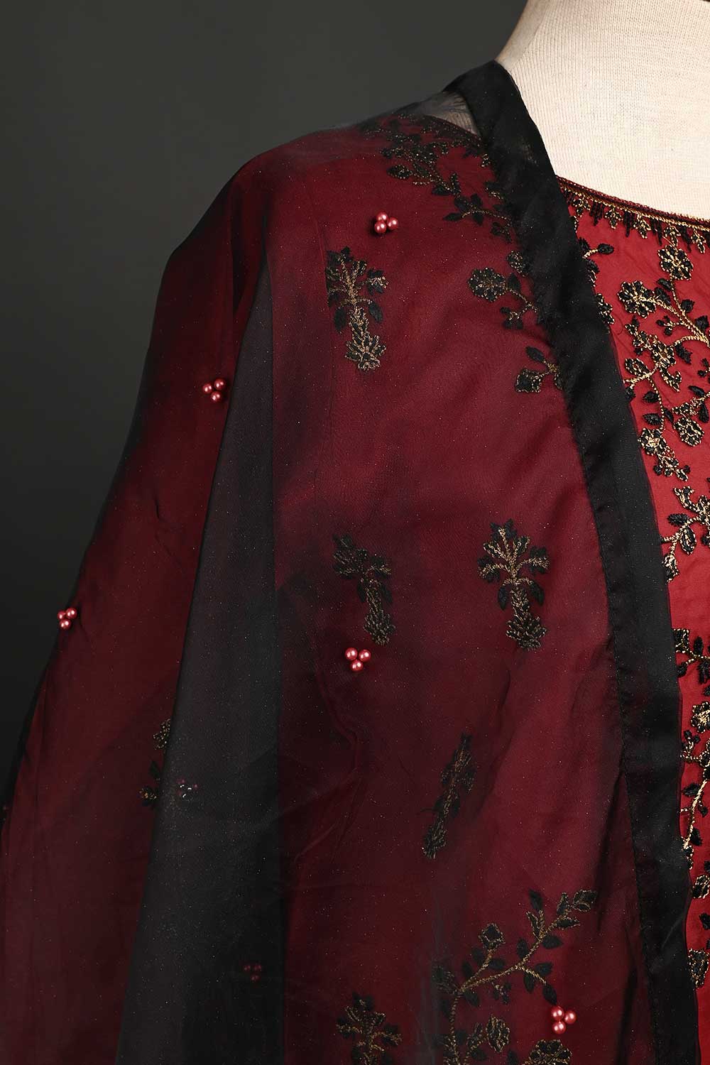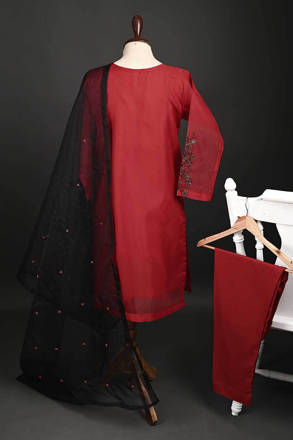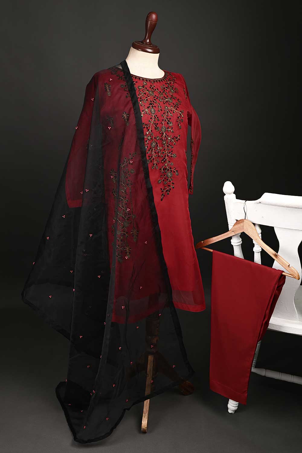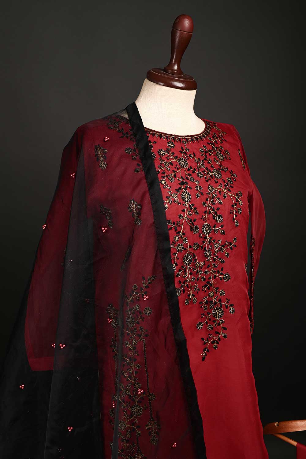 RTW-60-Red - 3Pc Stitched Embroidered Organza Dress