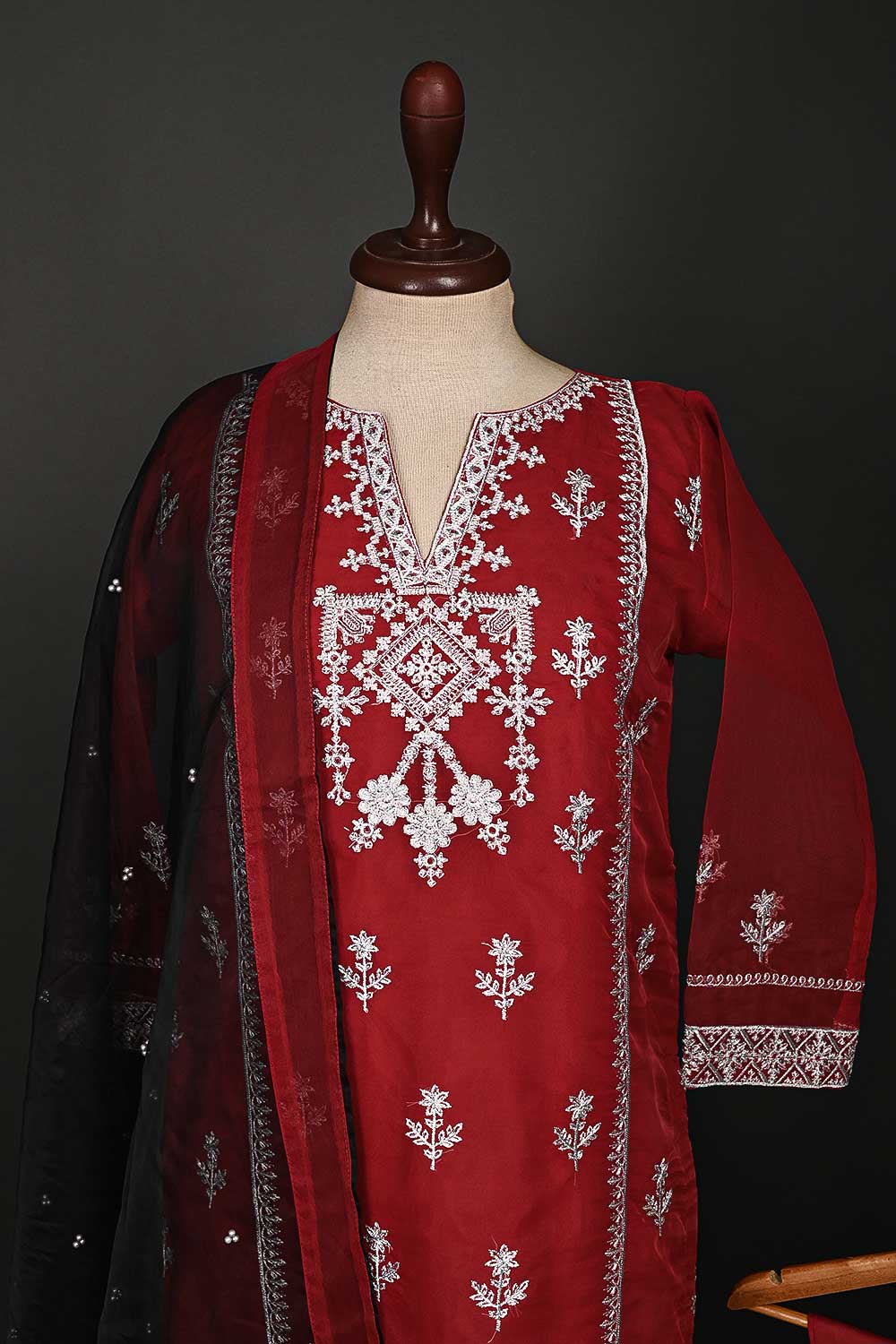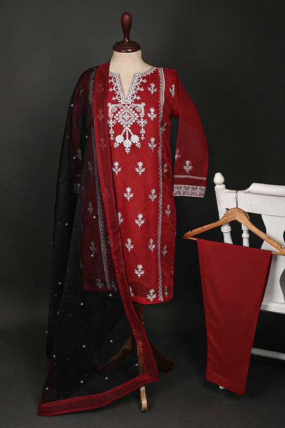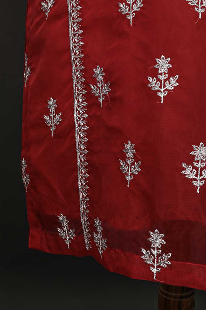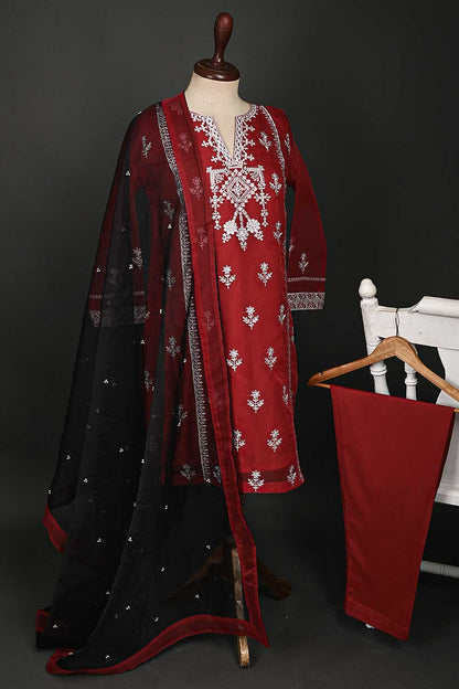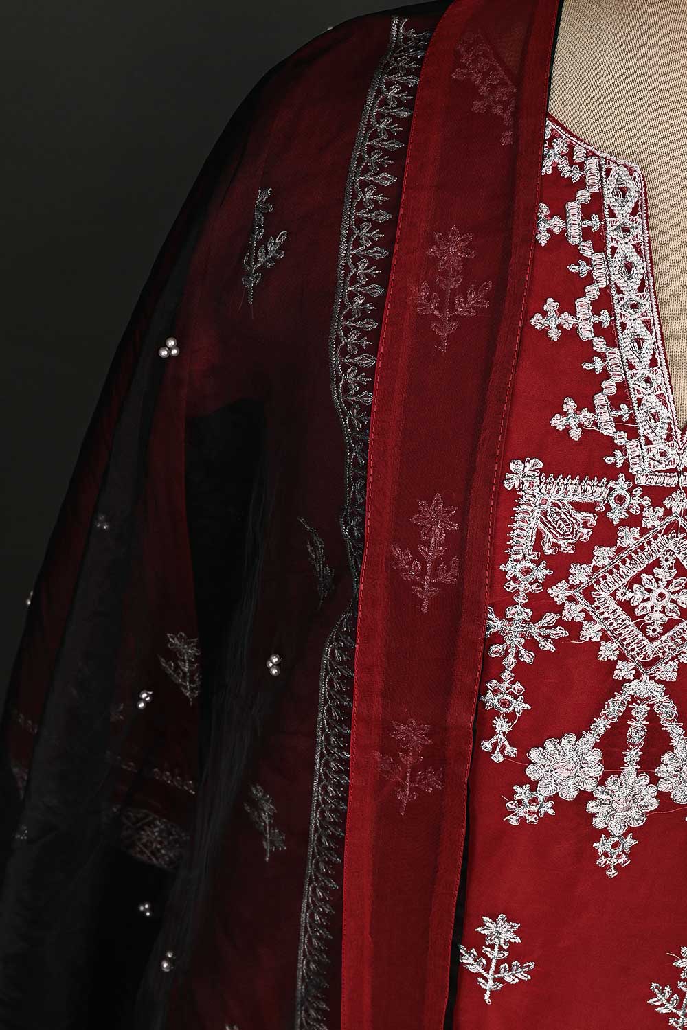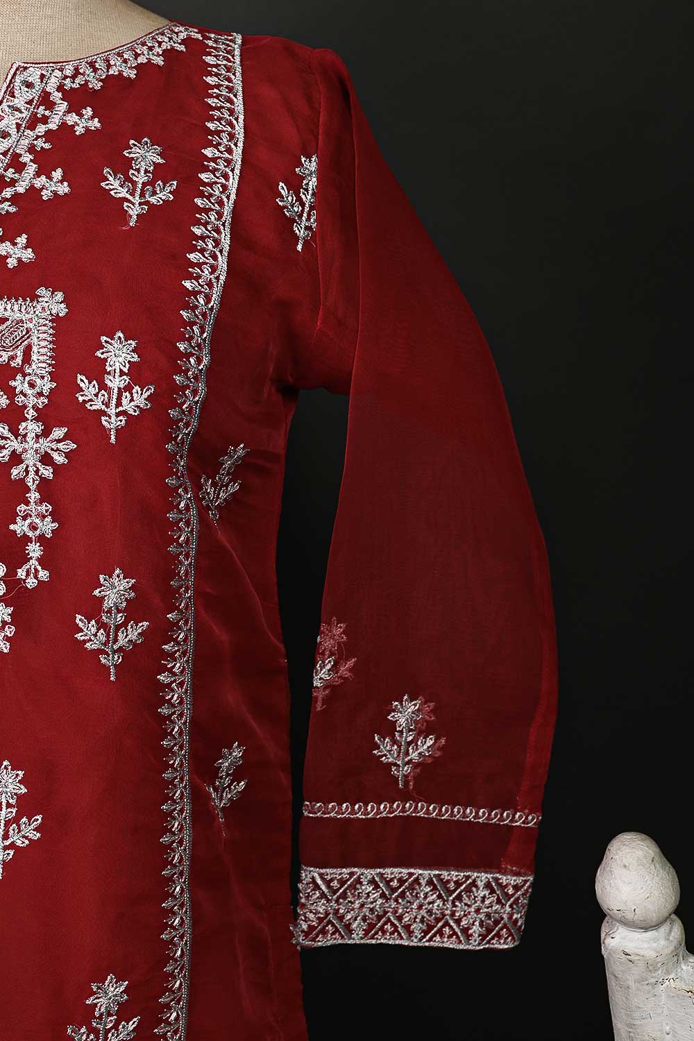 RTW-62-Red - 3Pc Stitched Embroidered Organza Dress