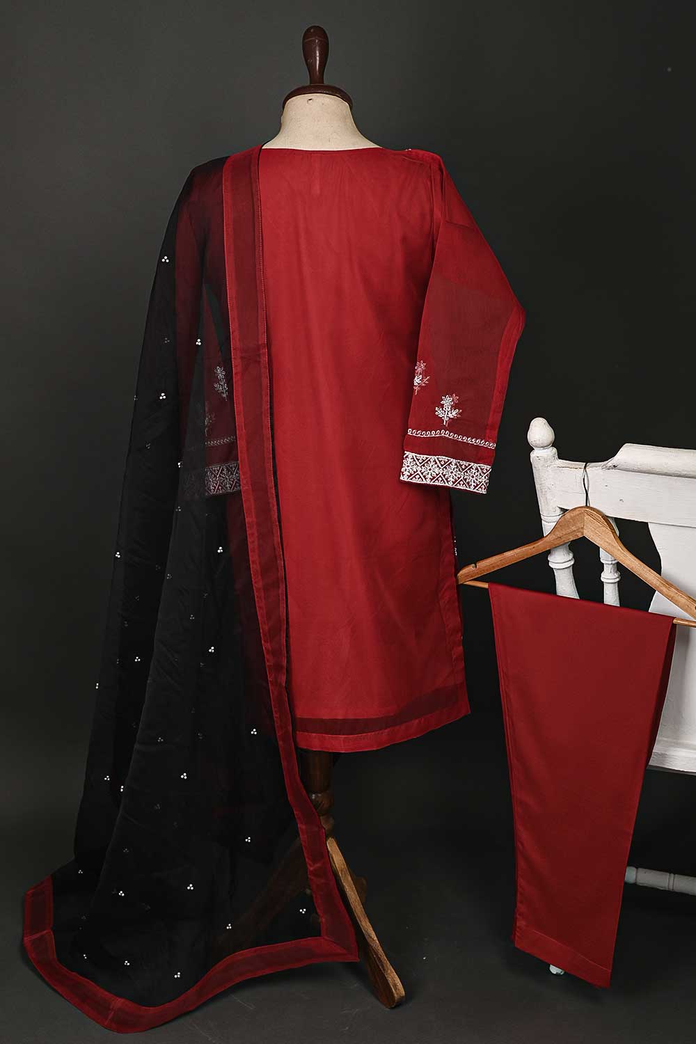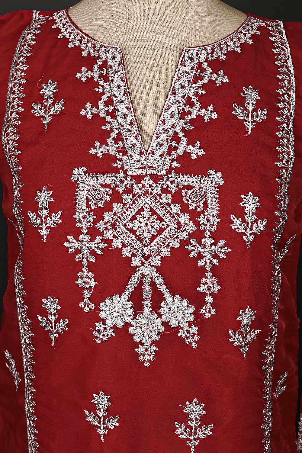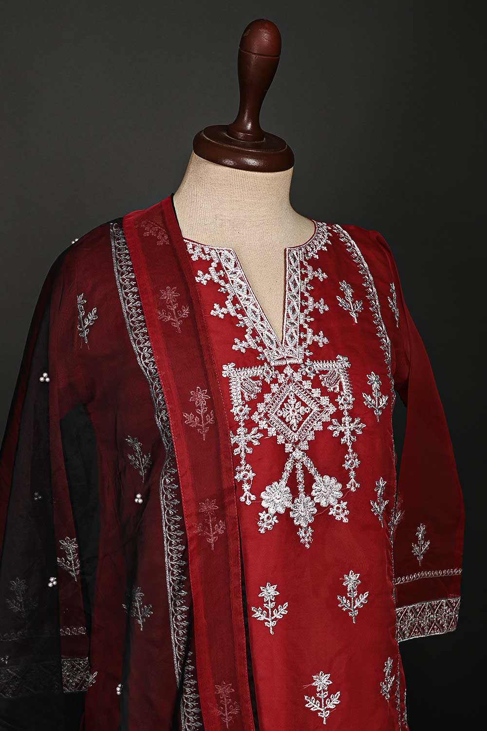 RTW-62-Red - 3Pc Stitched Embroidered Organza Dress