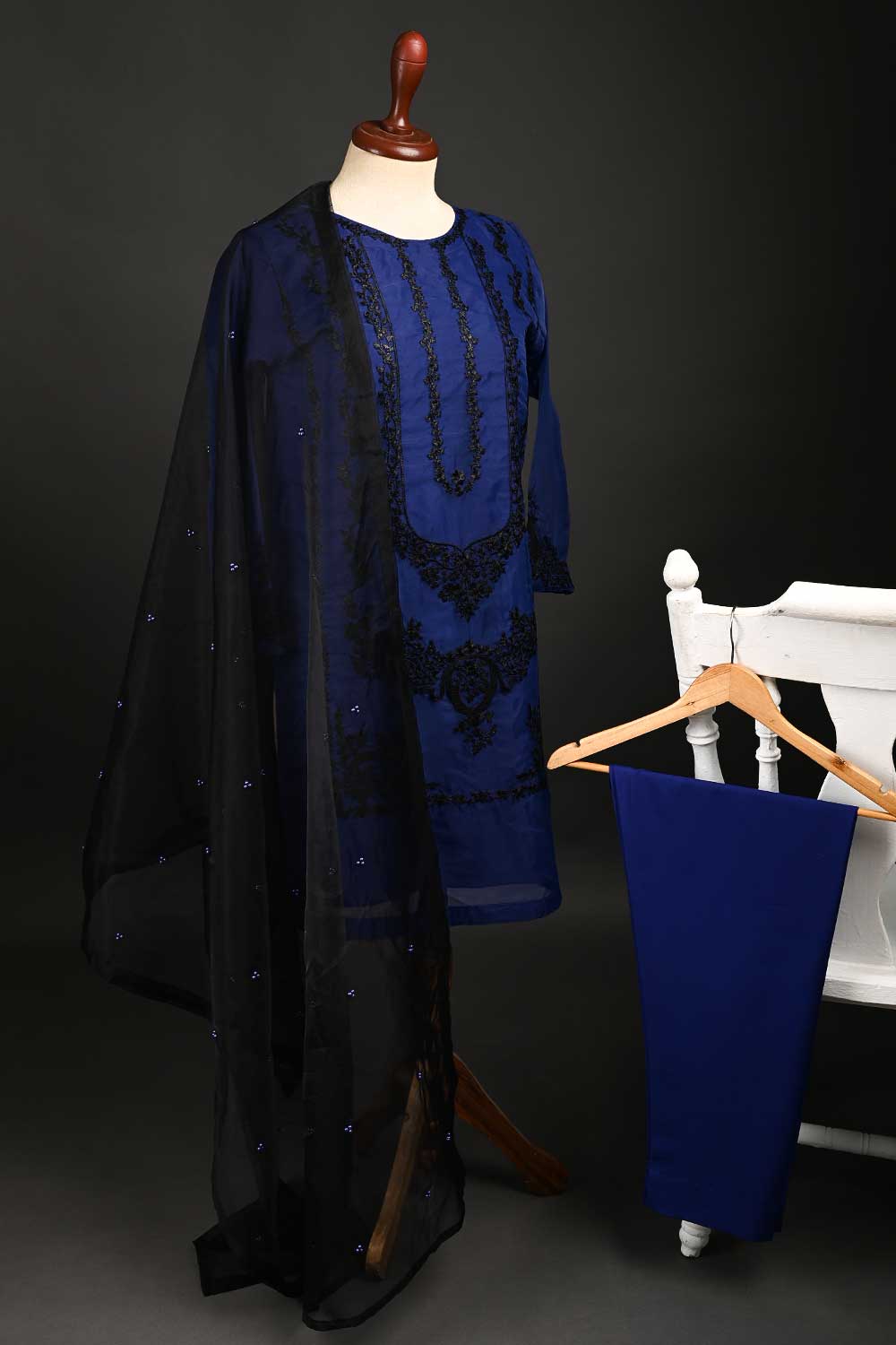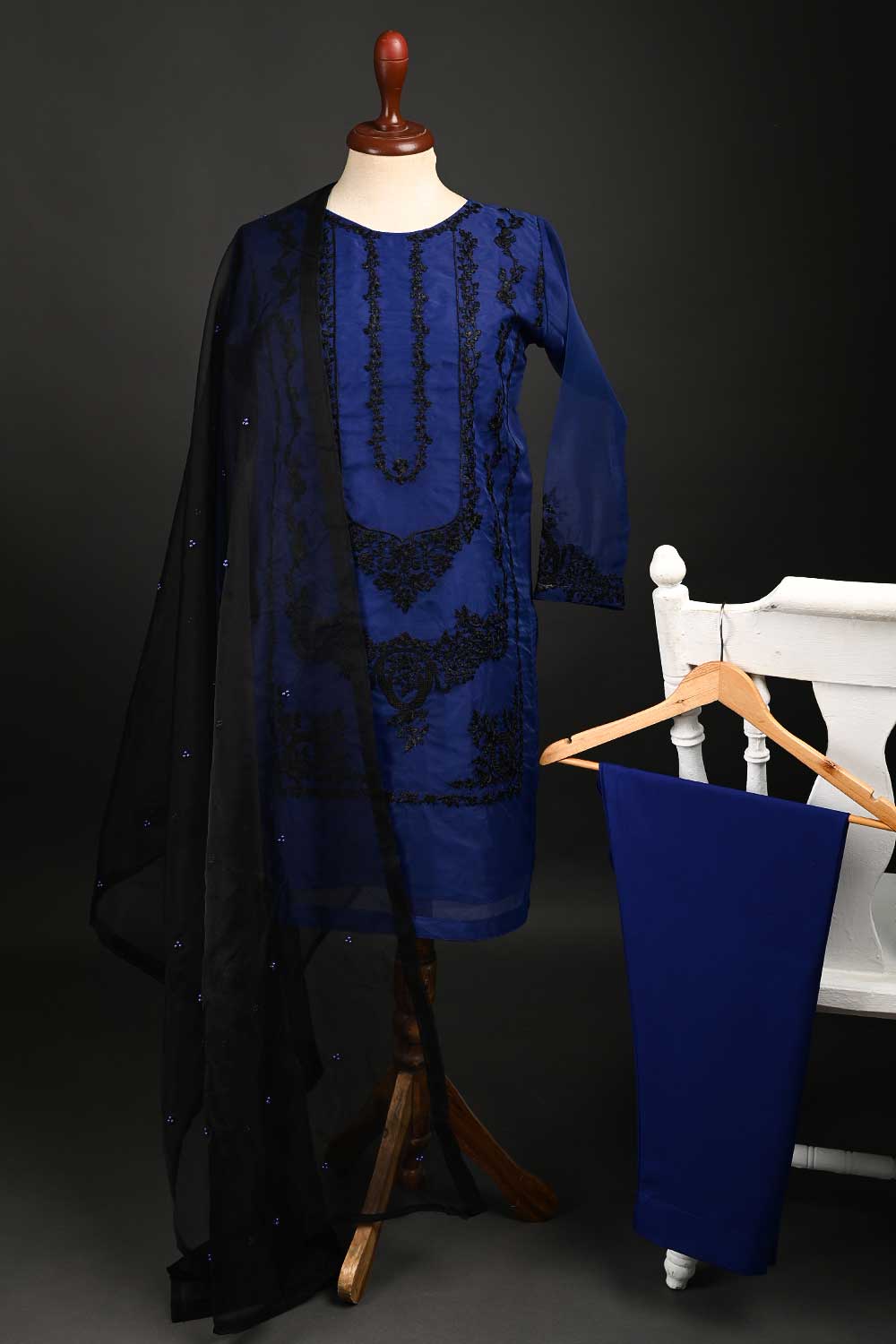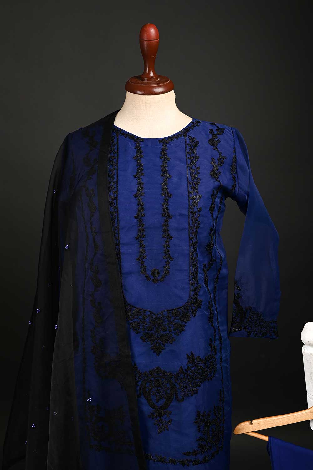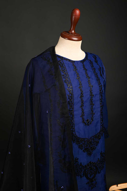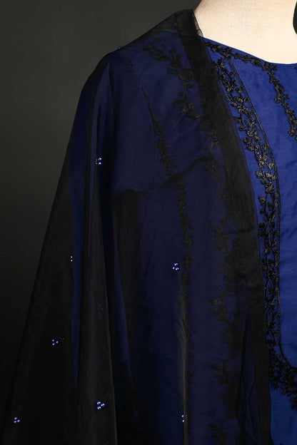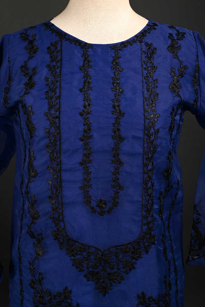 RTW-63-Blue - 3Pc Stitched Embroidered Organza Dress