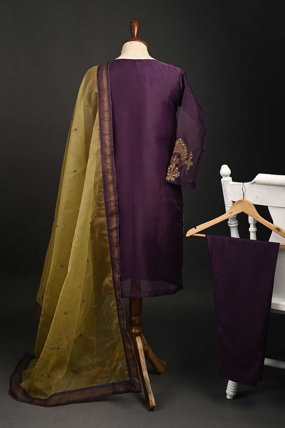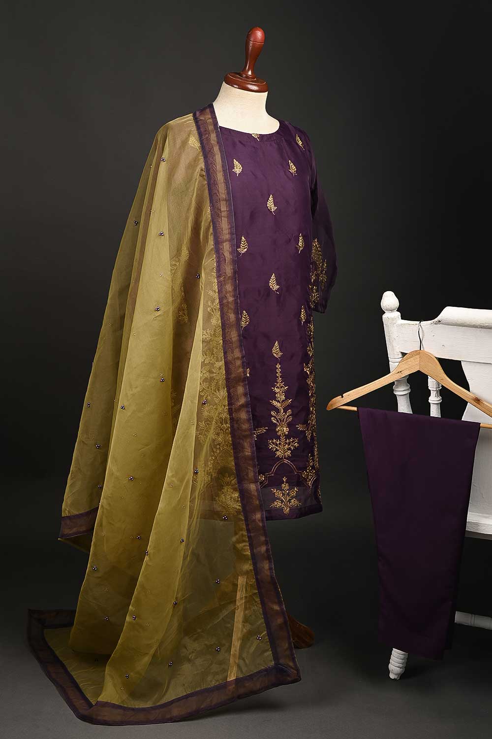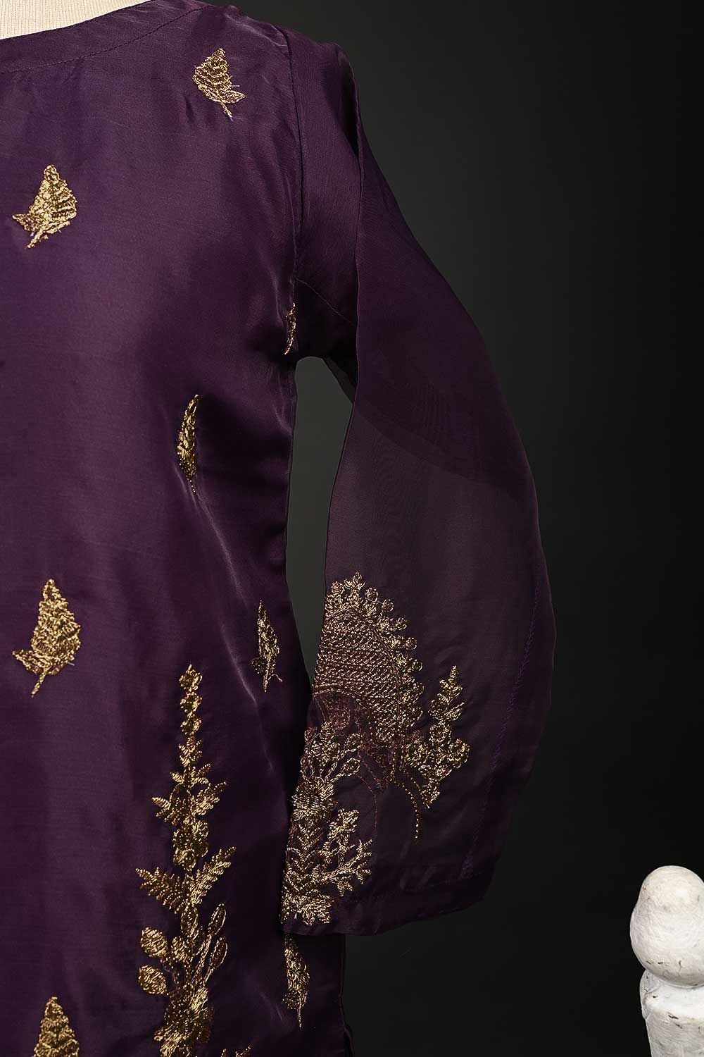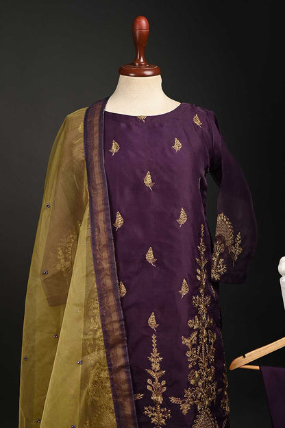 RTW-65-Purple - 3Pc Stitched Embroidered Organza Dress