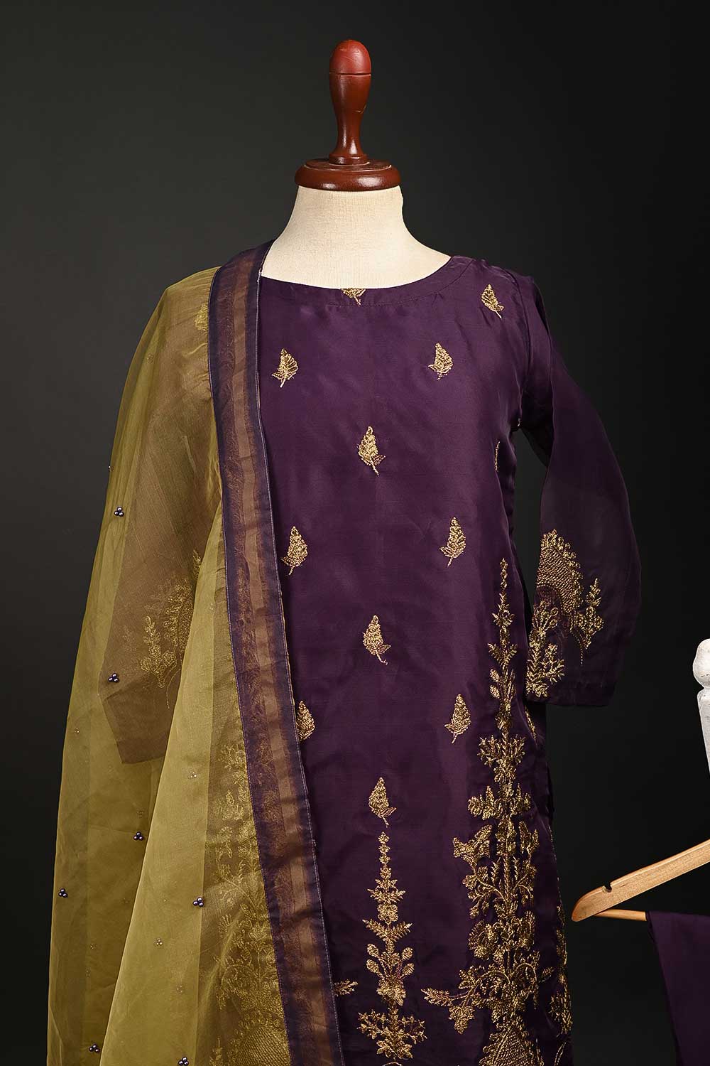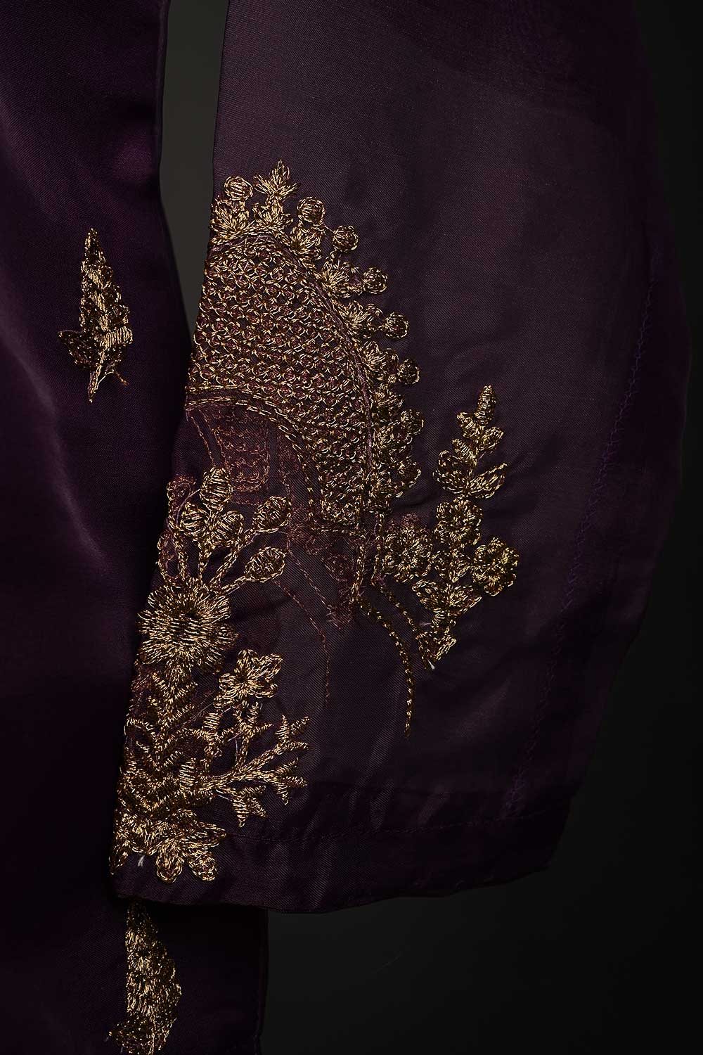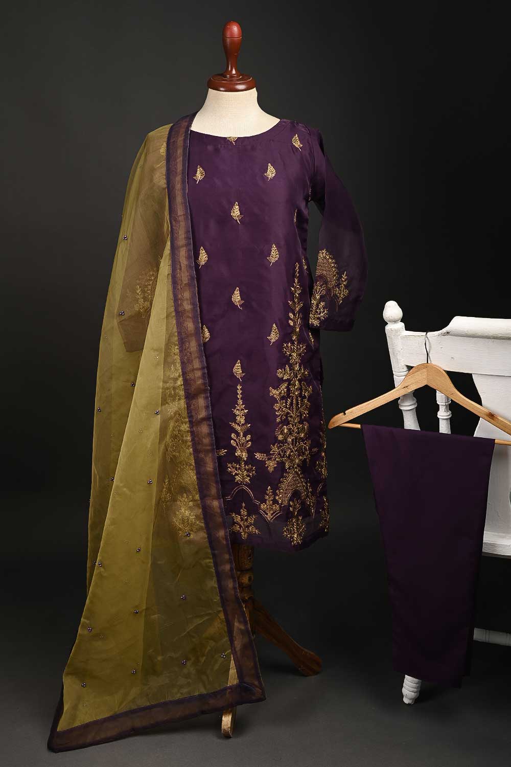RTW-65-Purple - 3Pc Stitched Embroidered Organza Dress