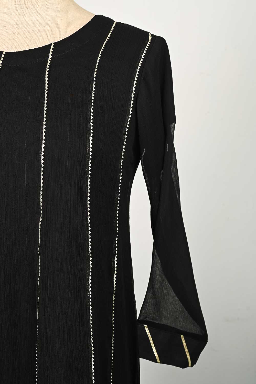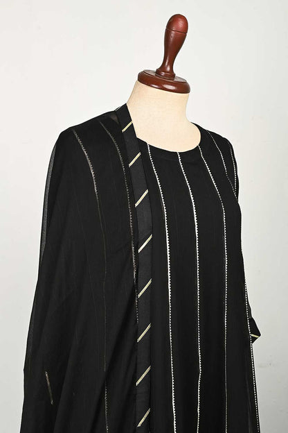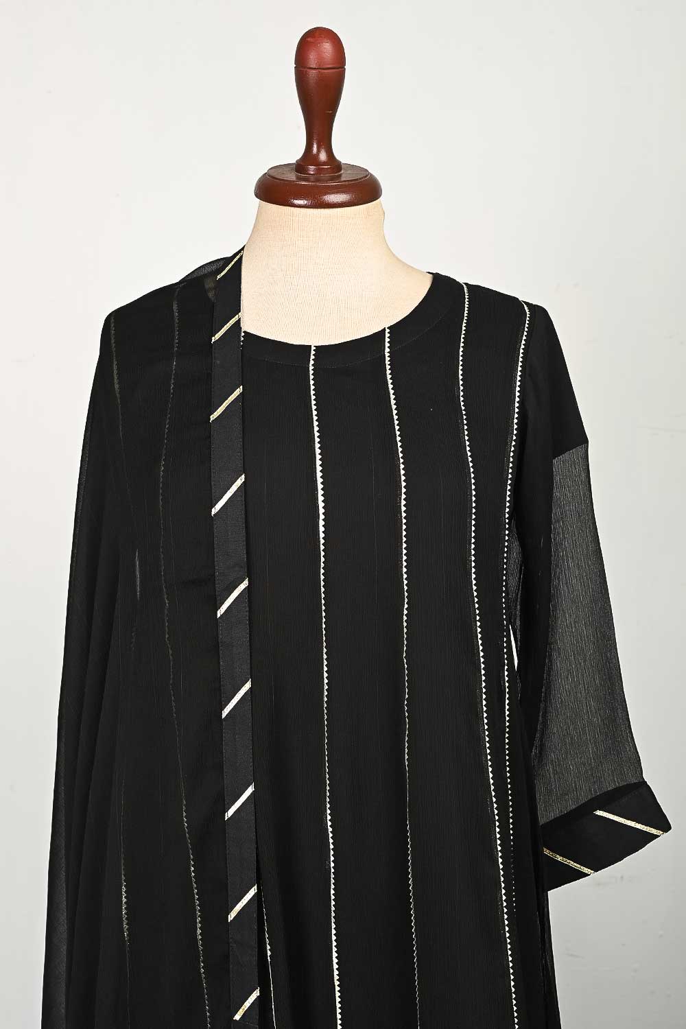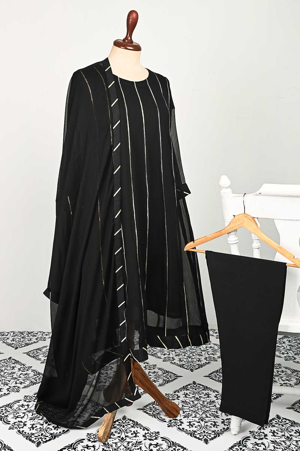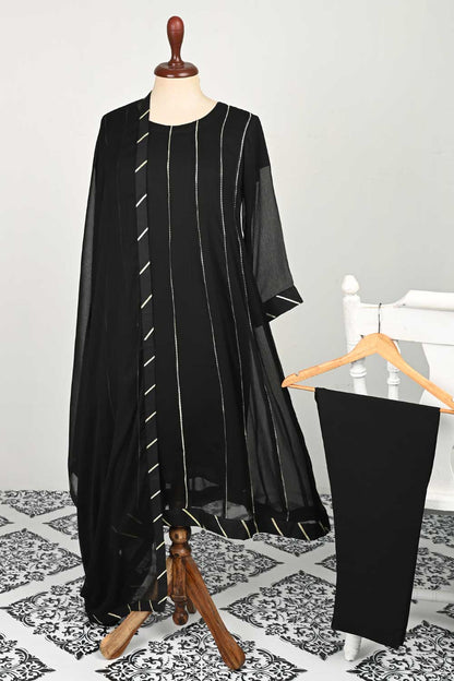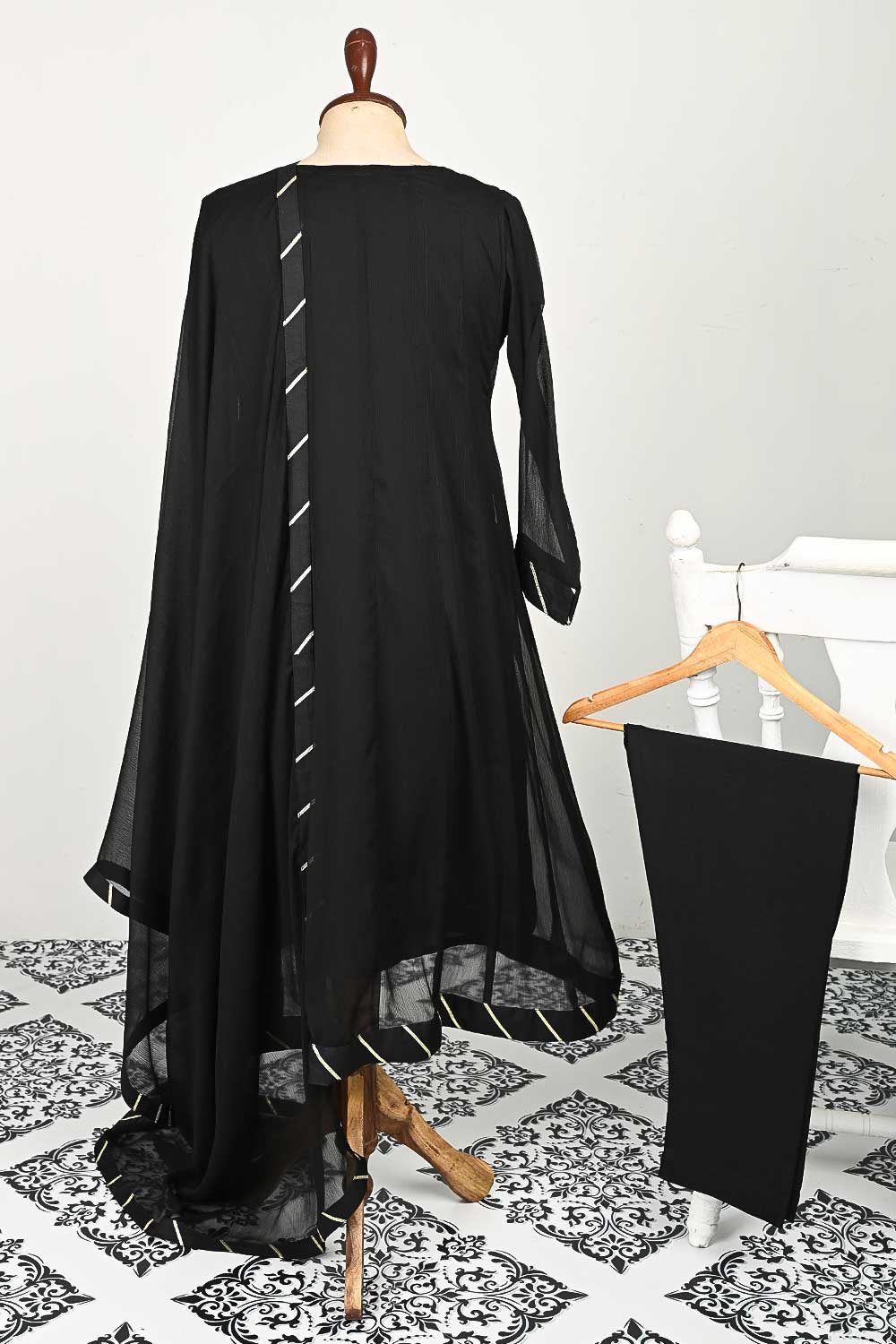 RTW-73-Black - 3Pc Stitched Chiffon Frock
