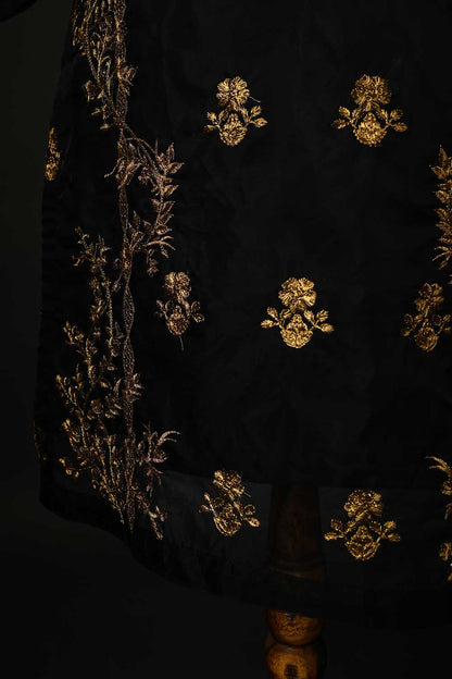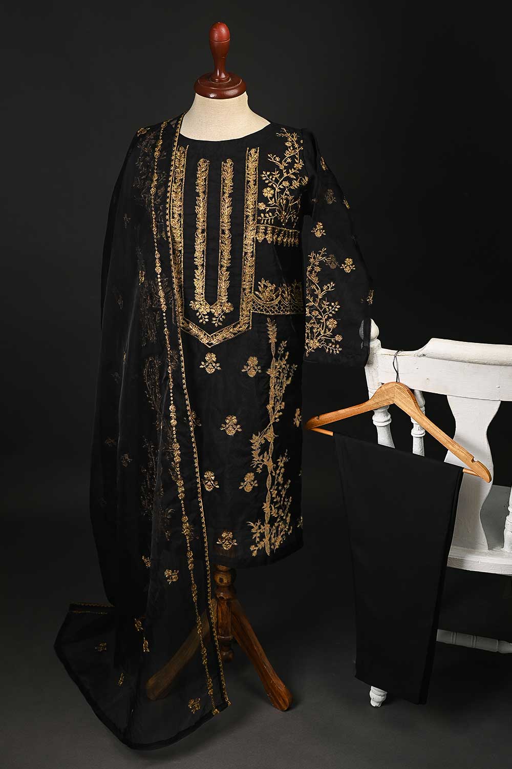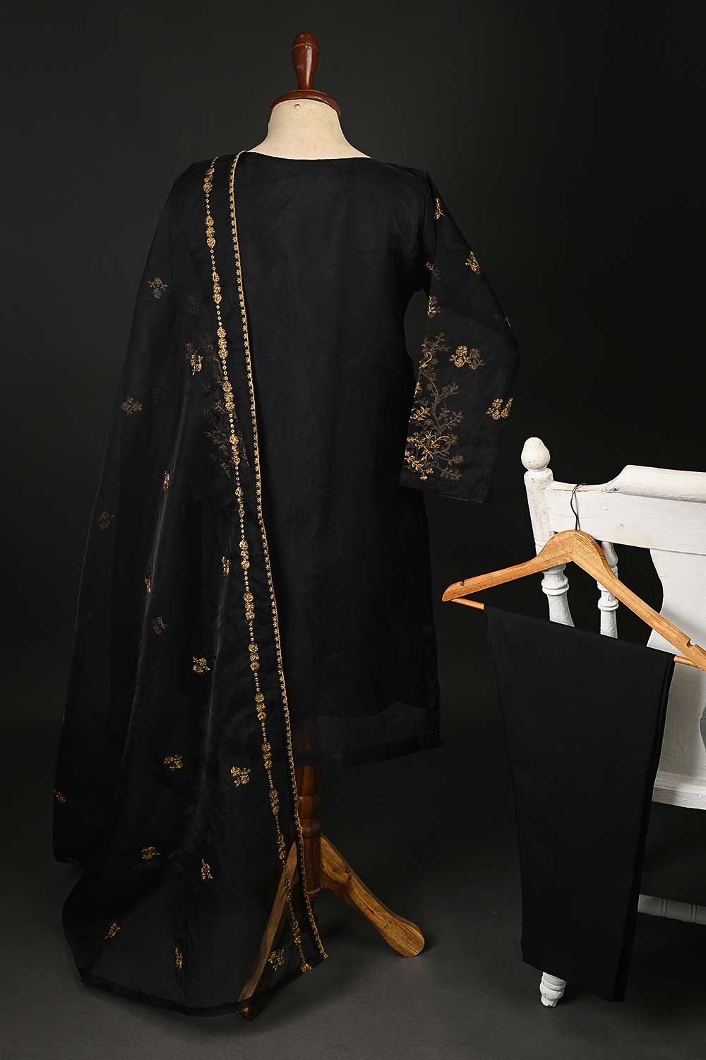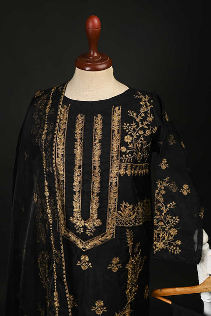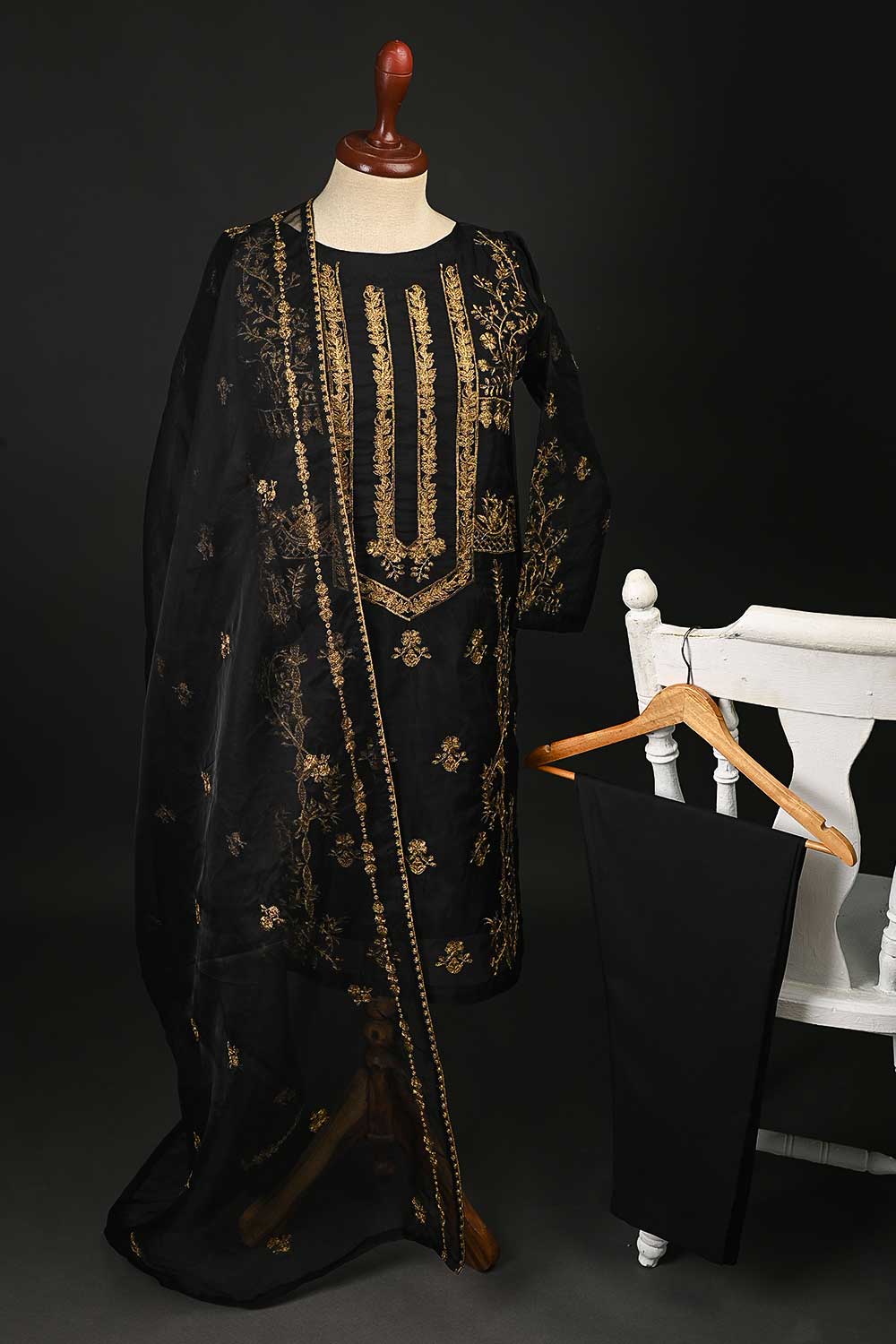 RTW-78-Black - 3Pc Stitched Embroidered Organza Dress