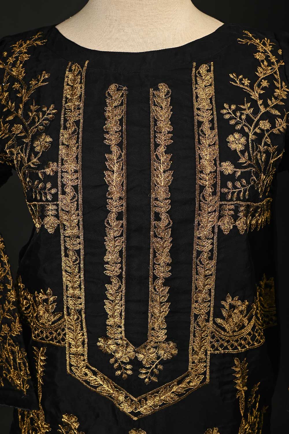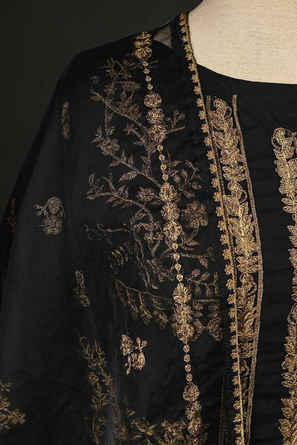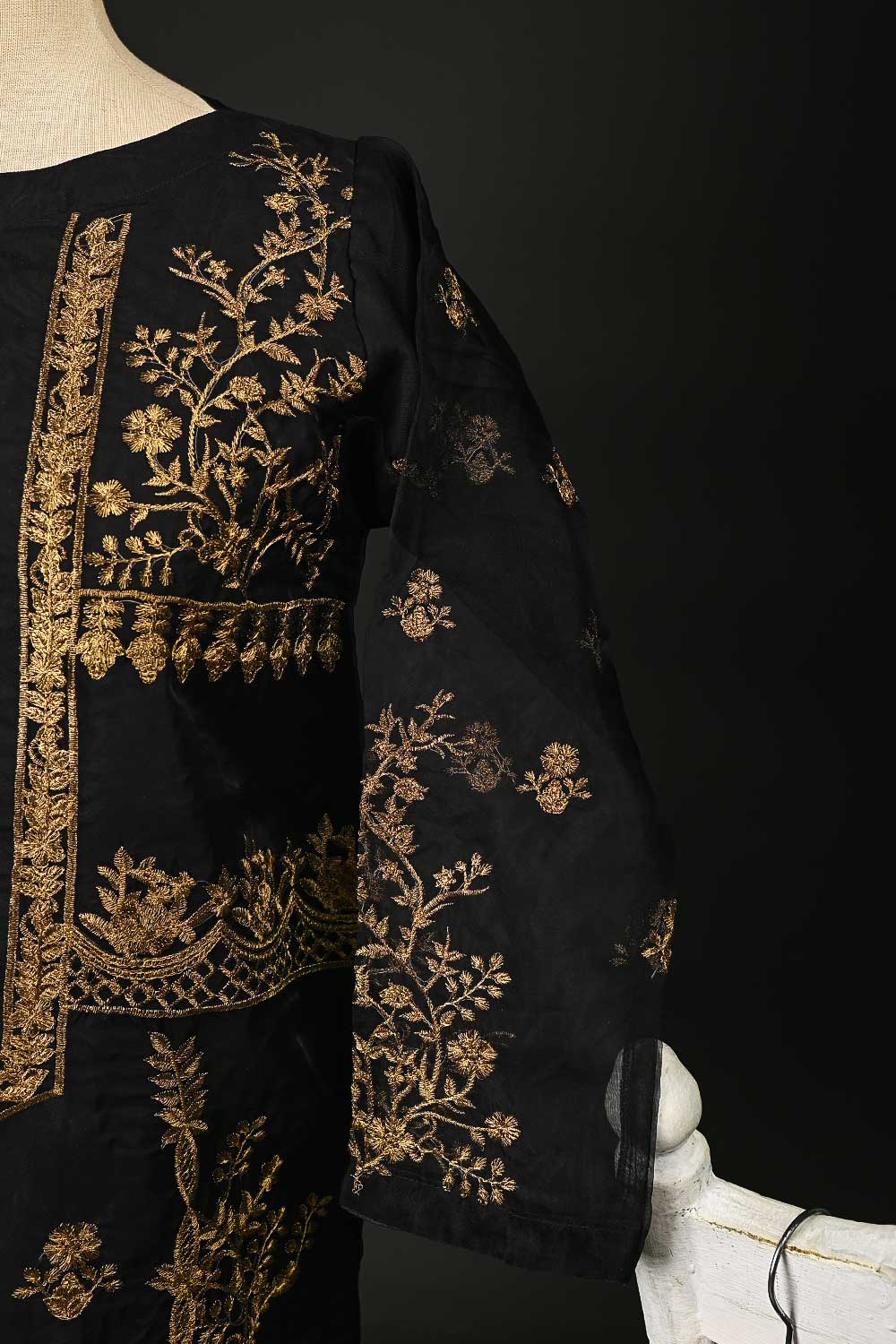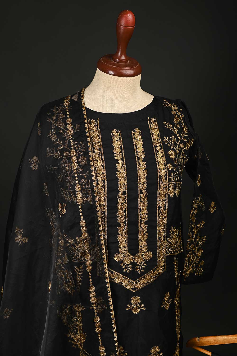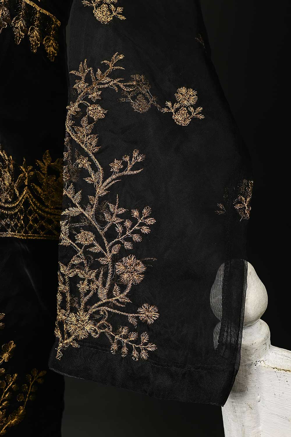RTW-78-Black - 3Pc Stitched Embroidered Organza Dress