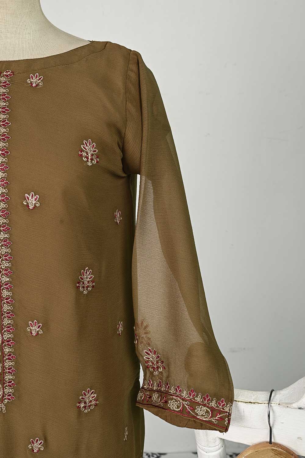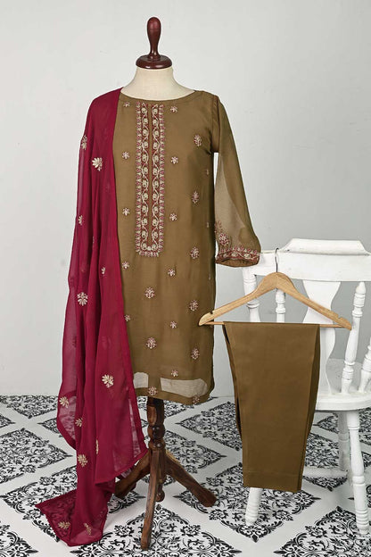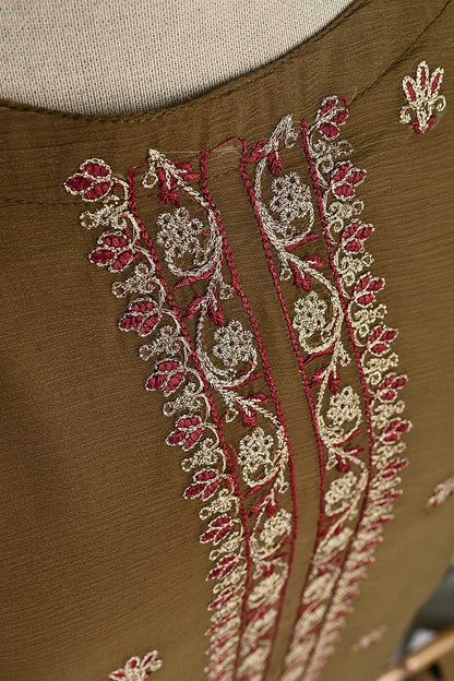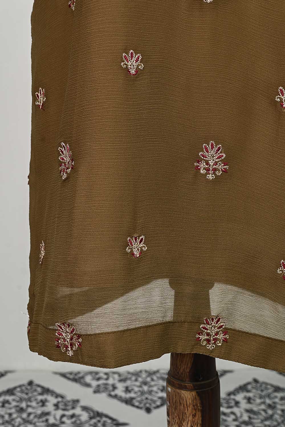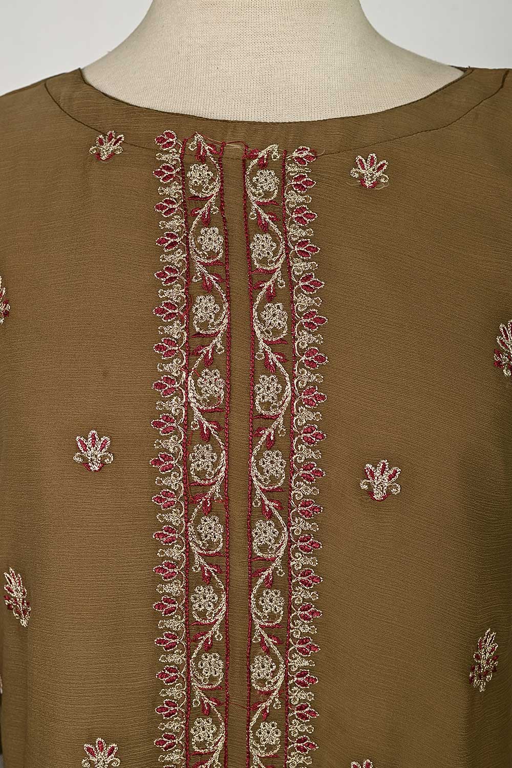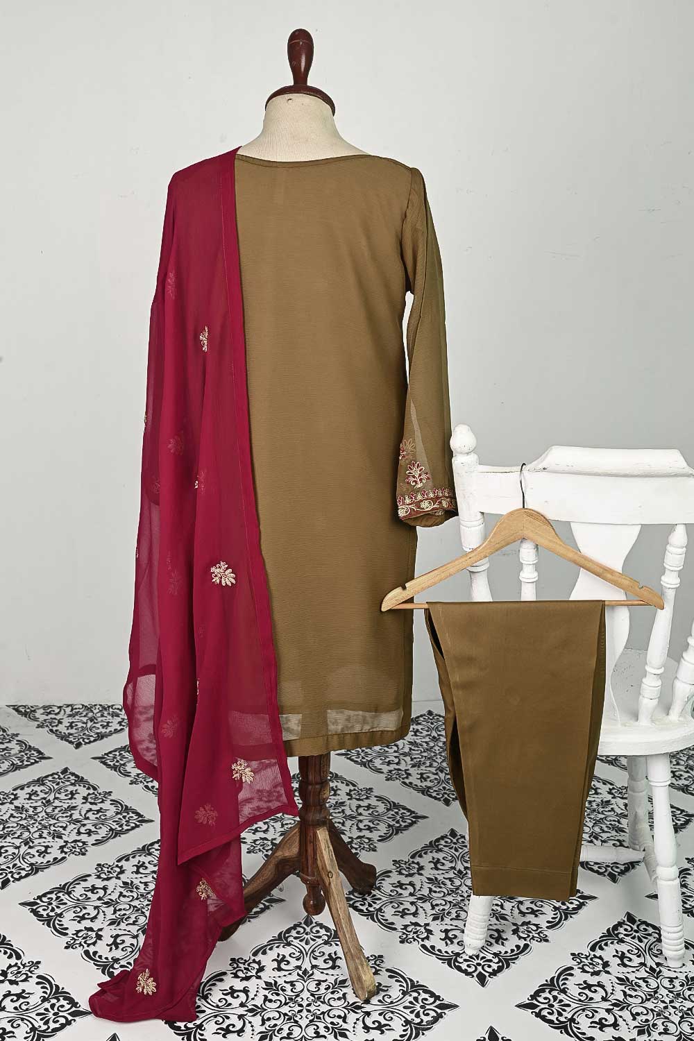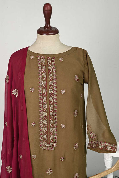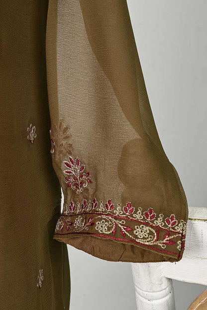 RTW-81-Brown - 3Pc Stitched Embroidered Chiffon Shirt