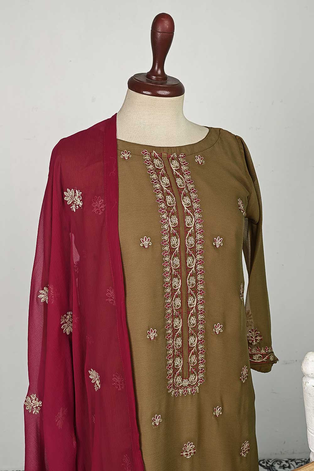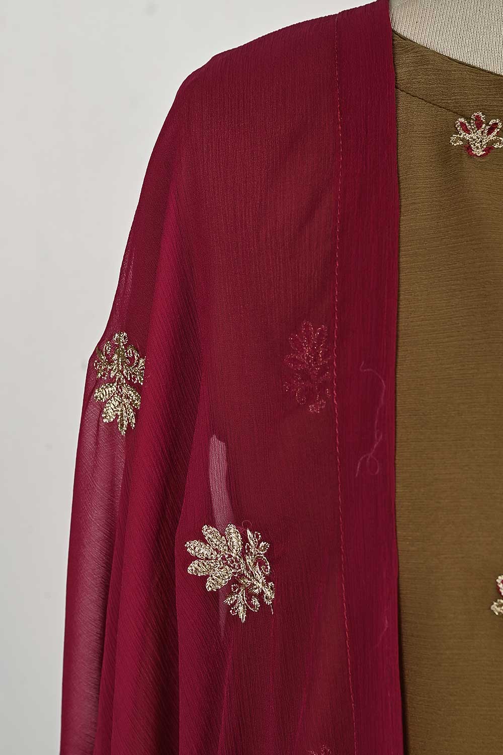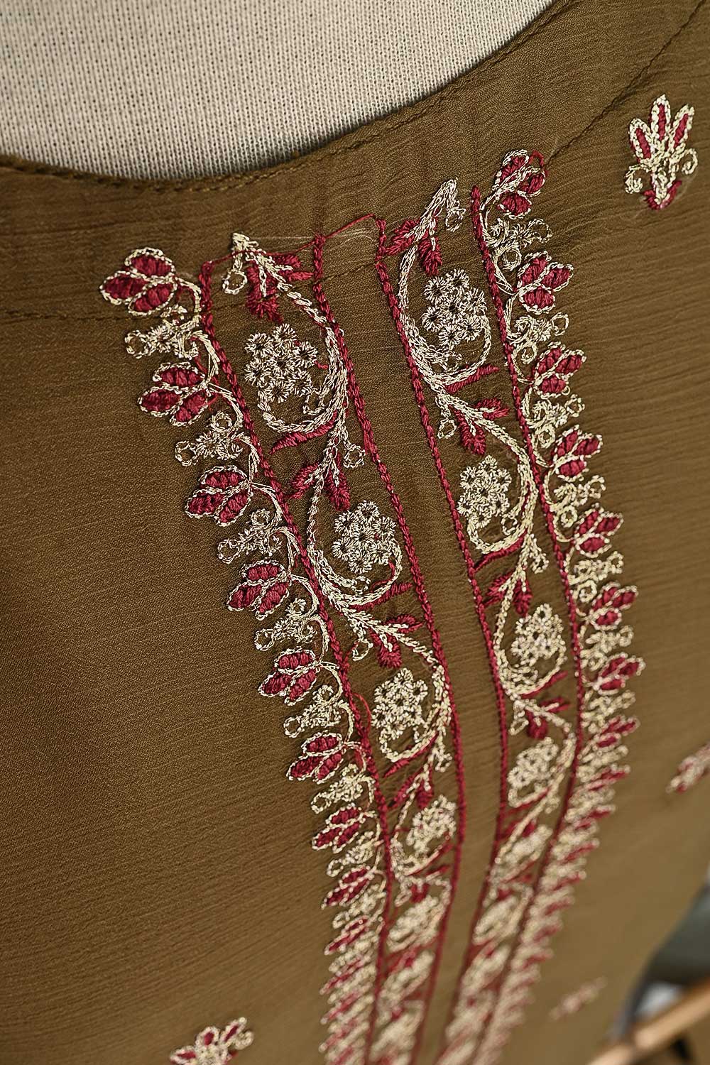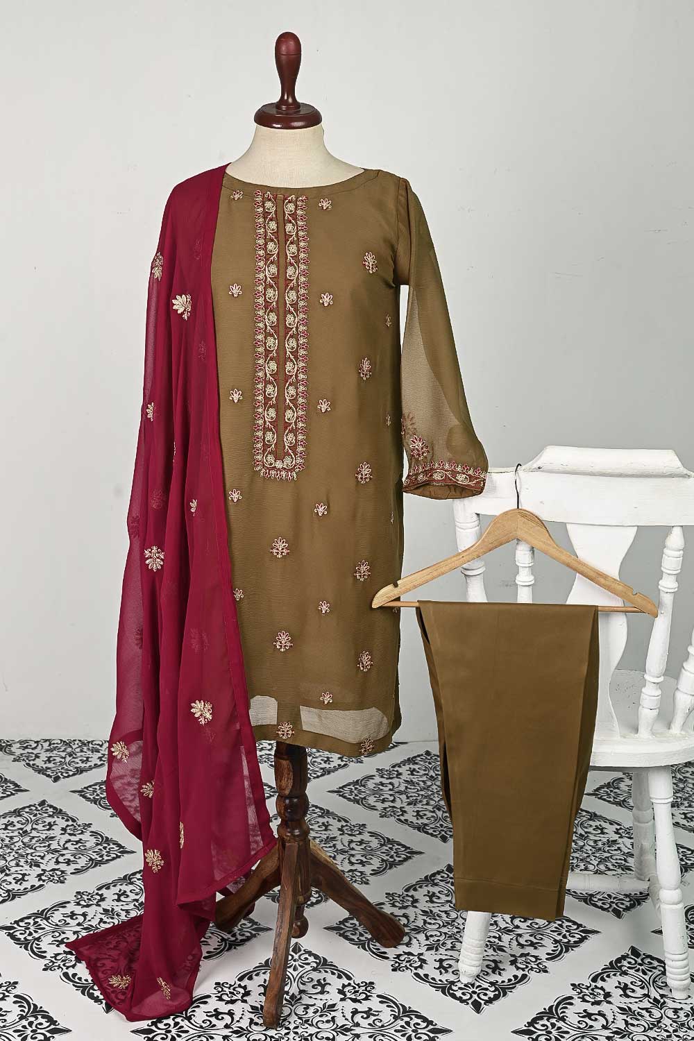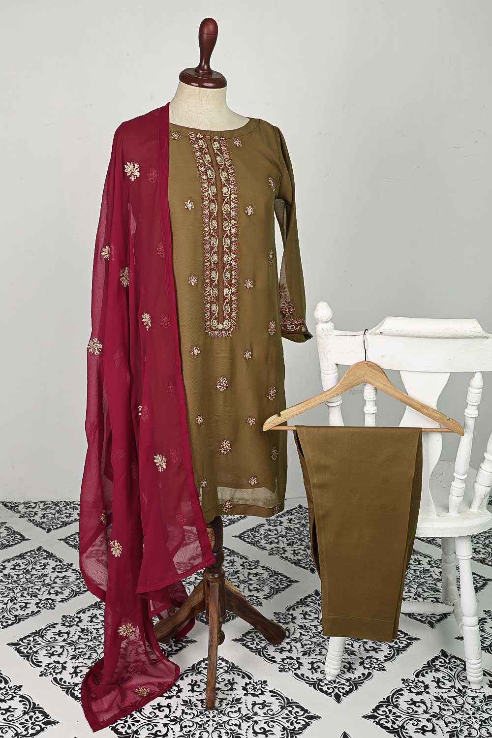 RTW-81-Brown - 3Pc Stitched Embroidered Chiffon Shirt