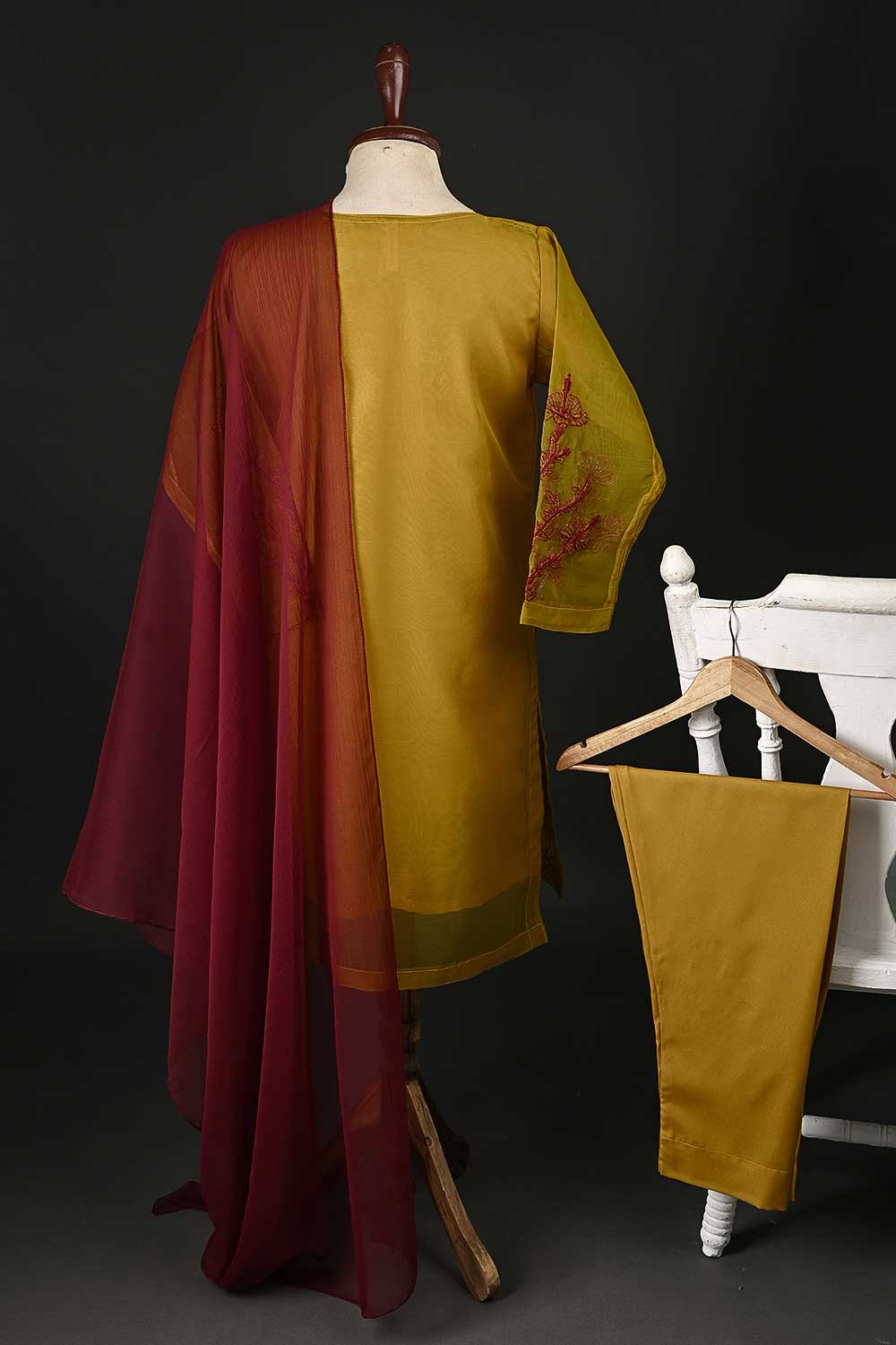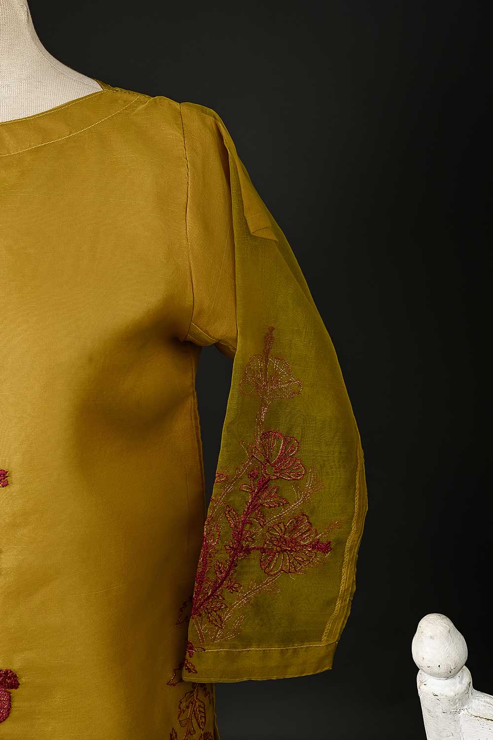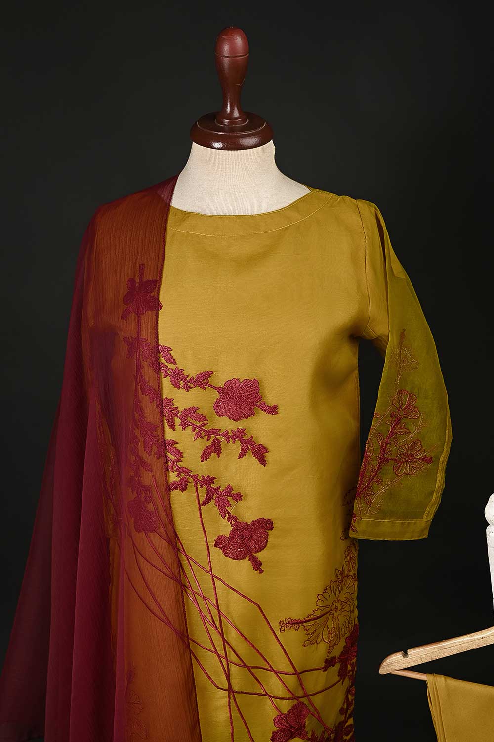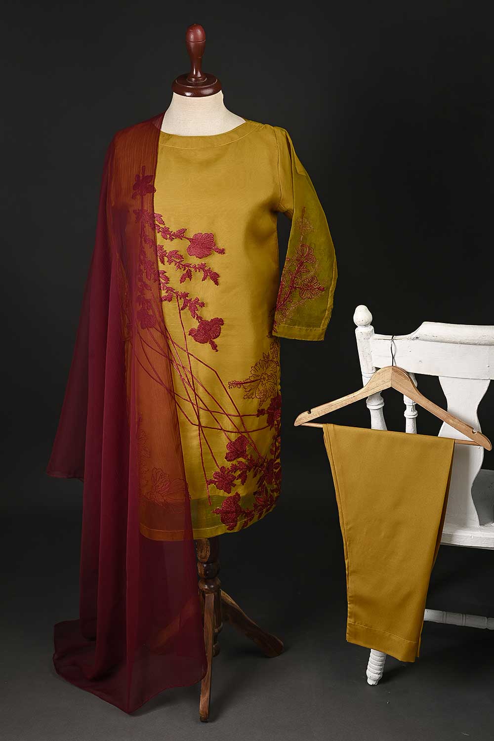 RTW-98-Mustard - 3Pc Stitched Embroidered Organza Dress
