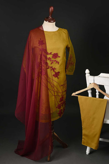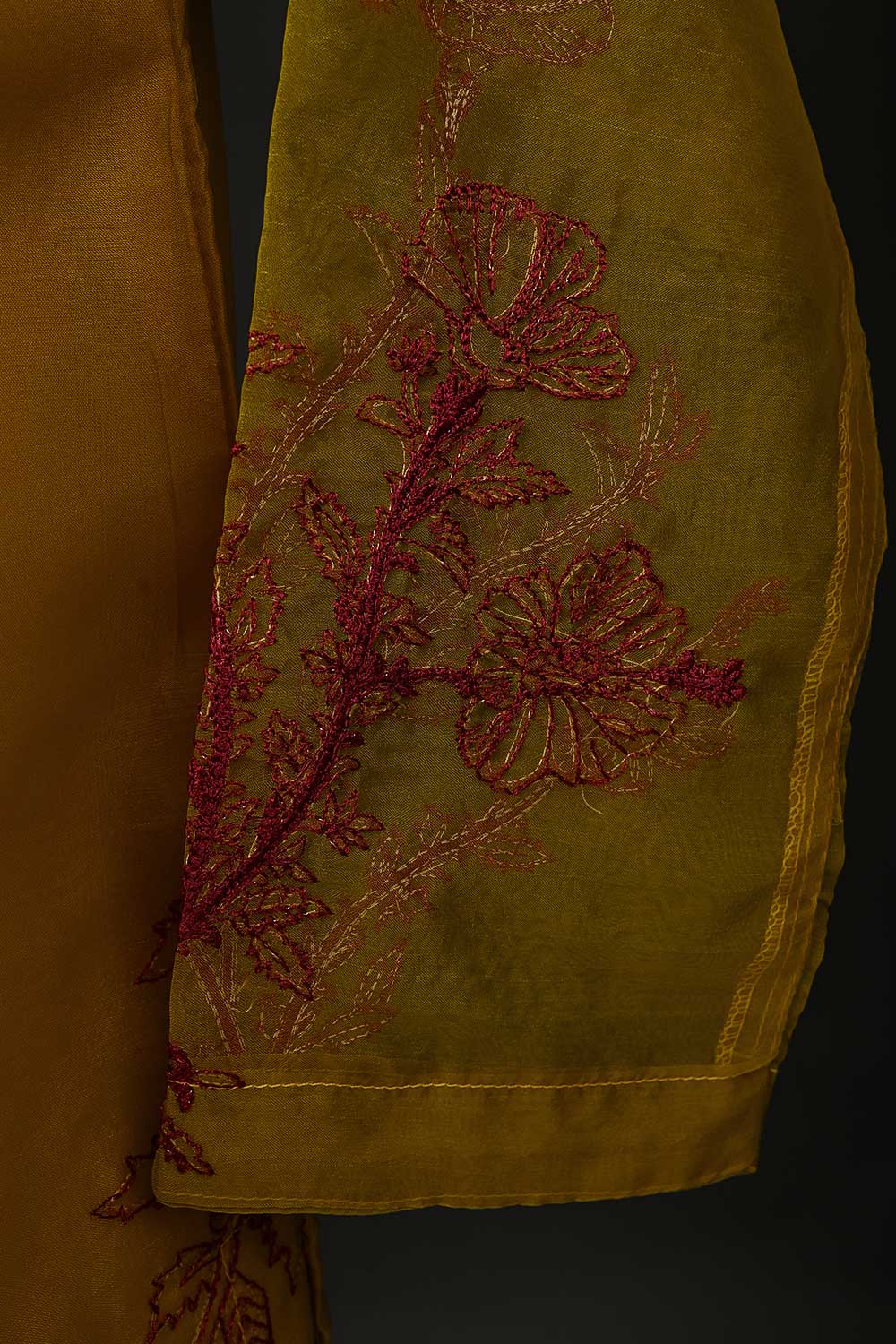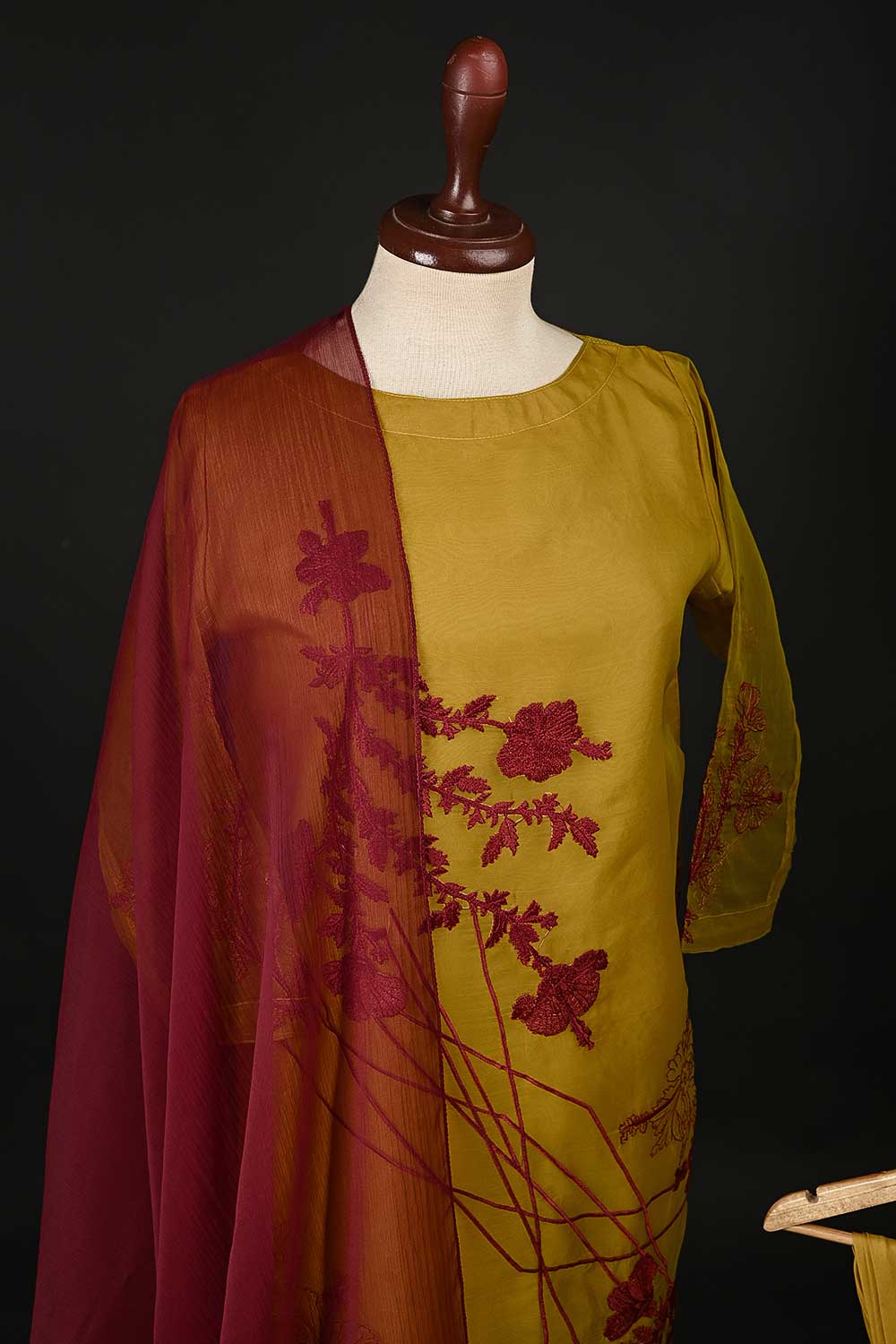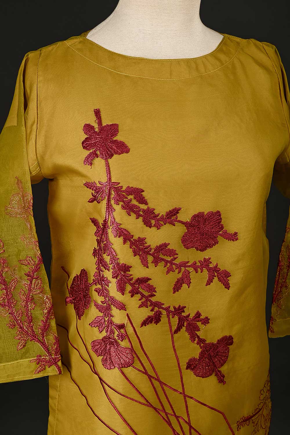 RTW-98-Mustard - 3Pc Stitched Embroidered Organza Dress
