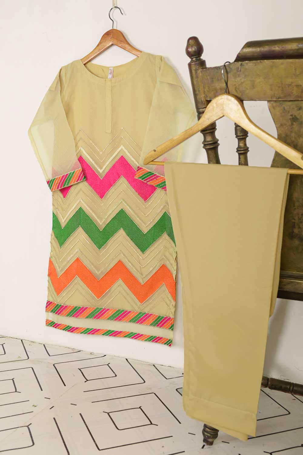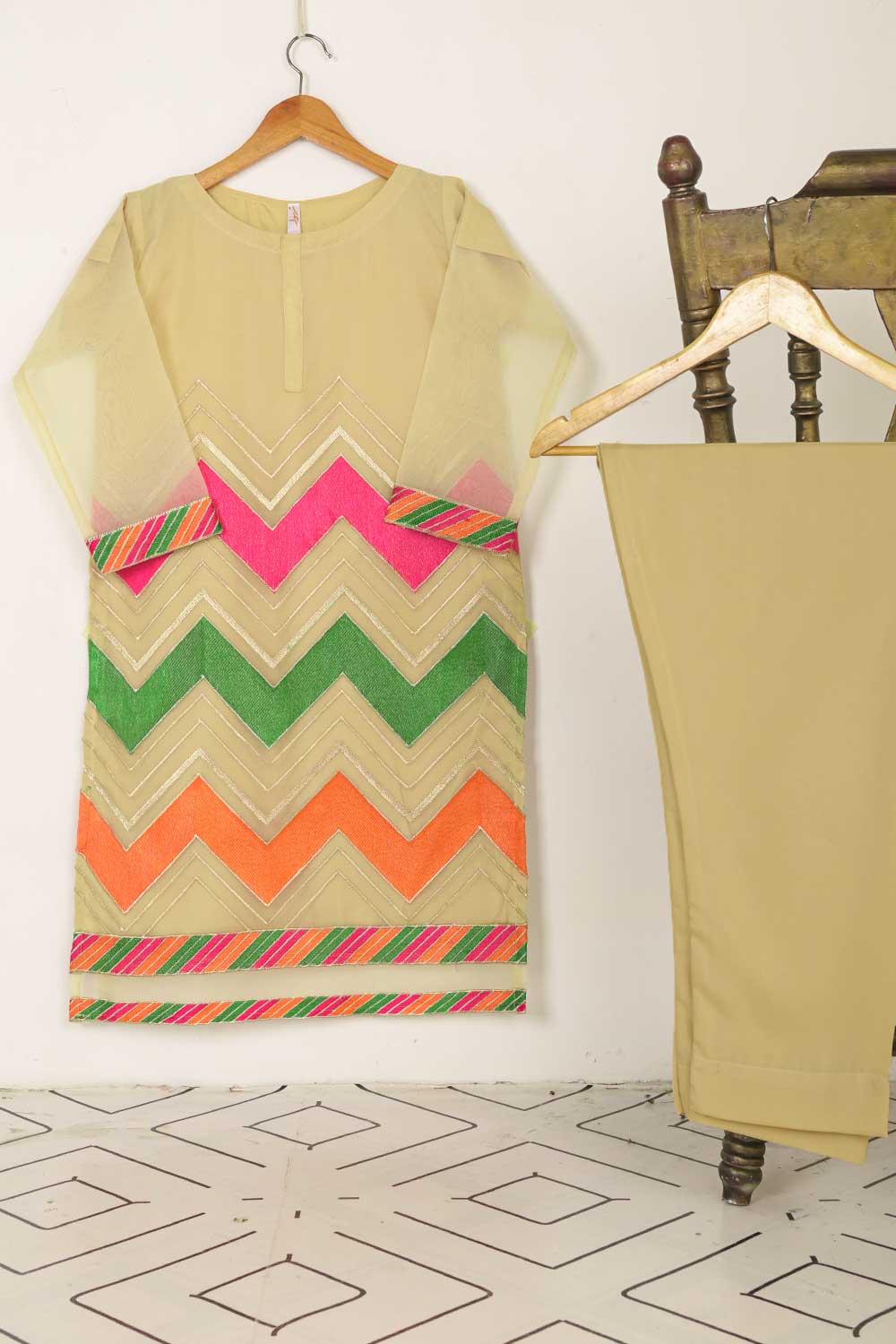 STP-052A-Skin - 2Pc Organza Embroidered With Malai Trouser