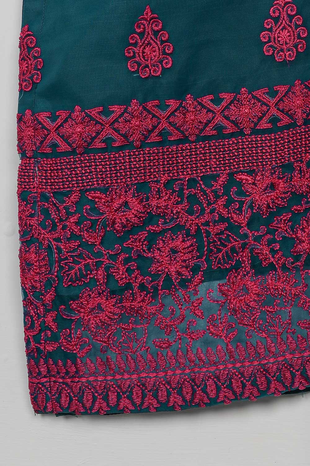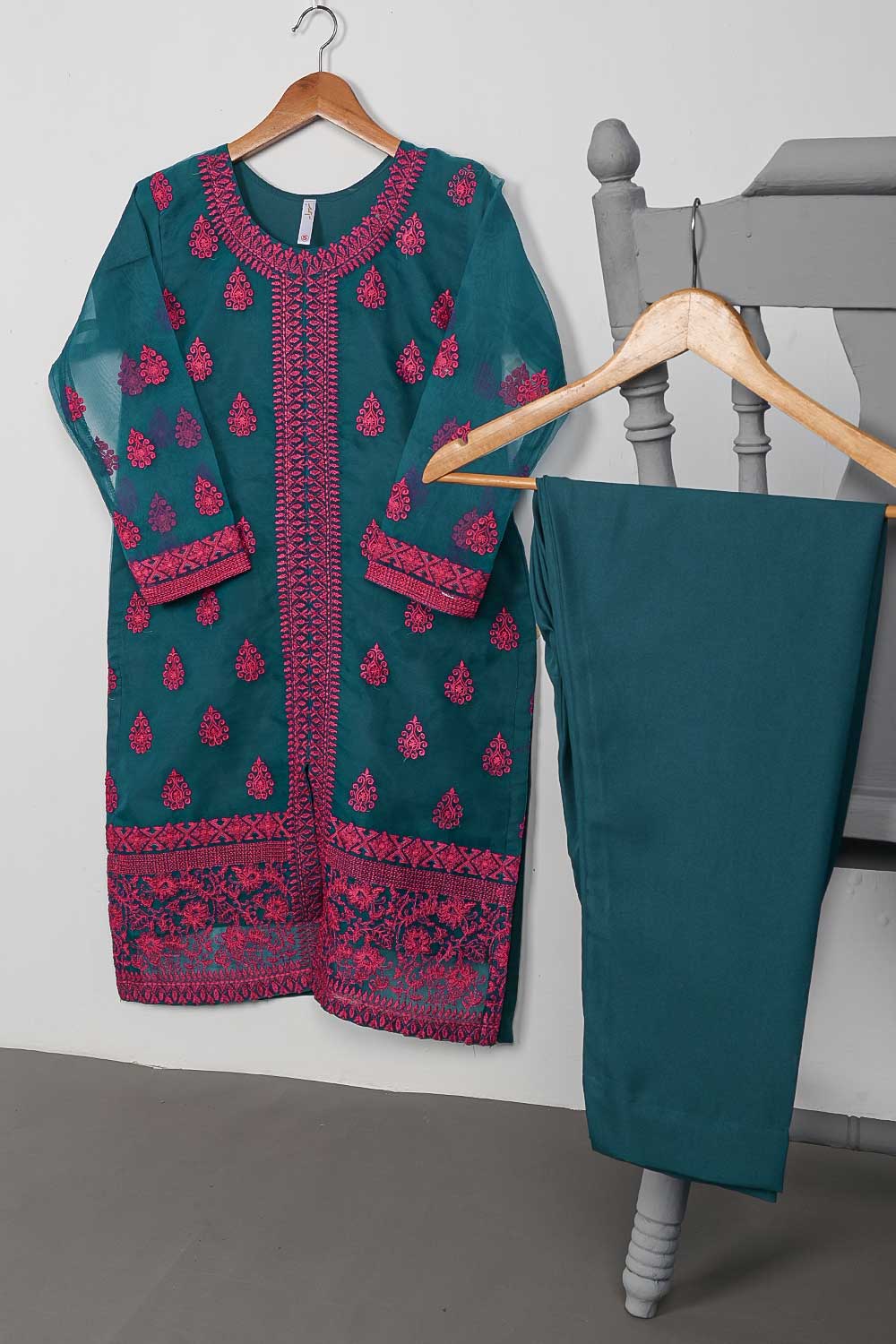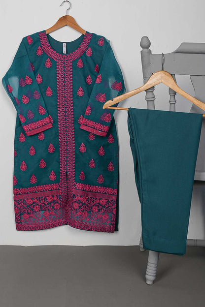 STP-073A-Turquoise - 2Pc Organza Embroidered With Malai Trouser