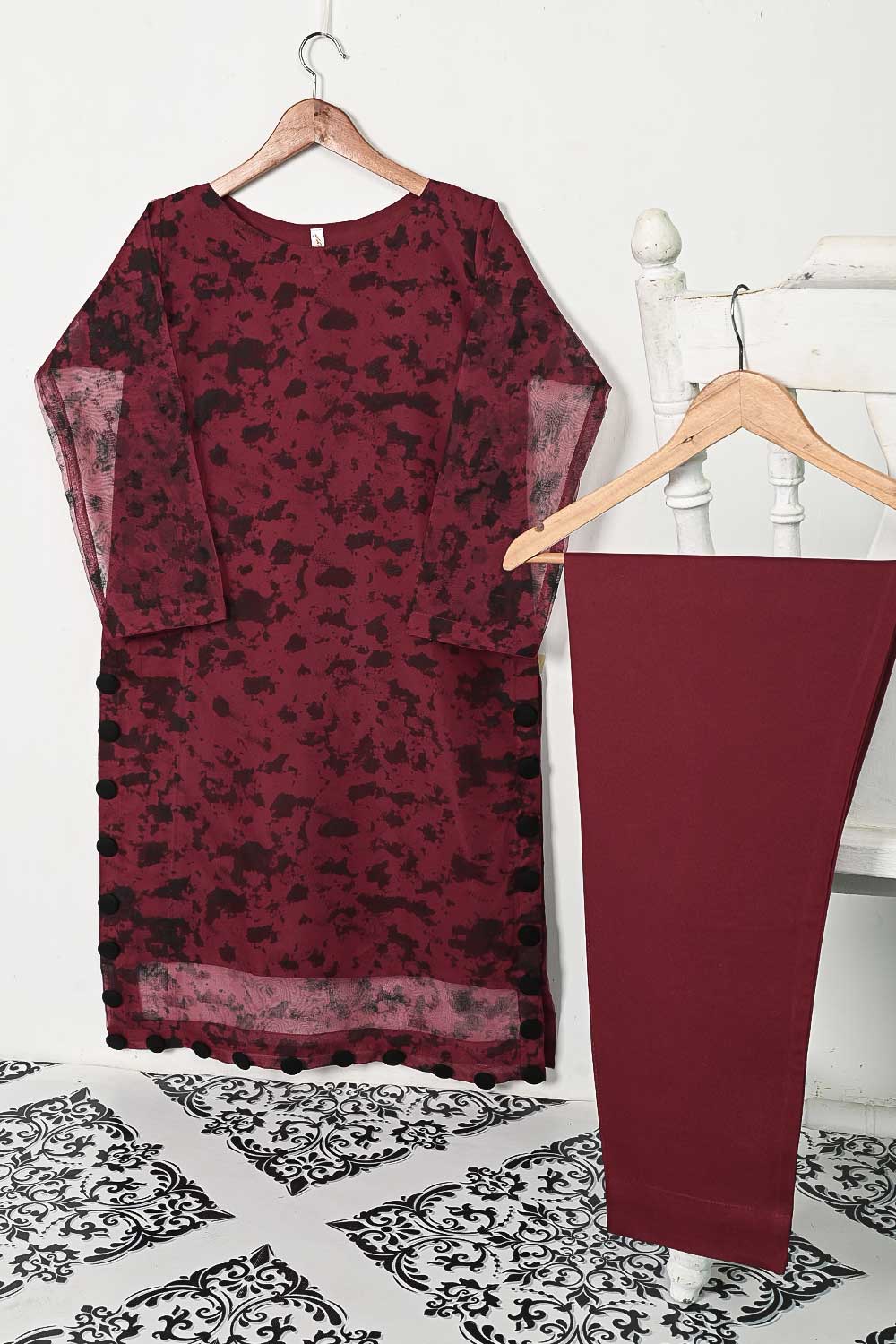 STP-126A-Maroon - 2Pc Organza With Malai Trouser