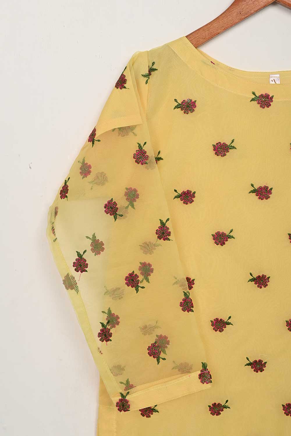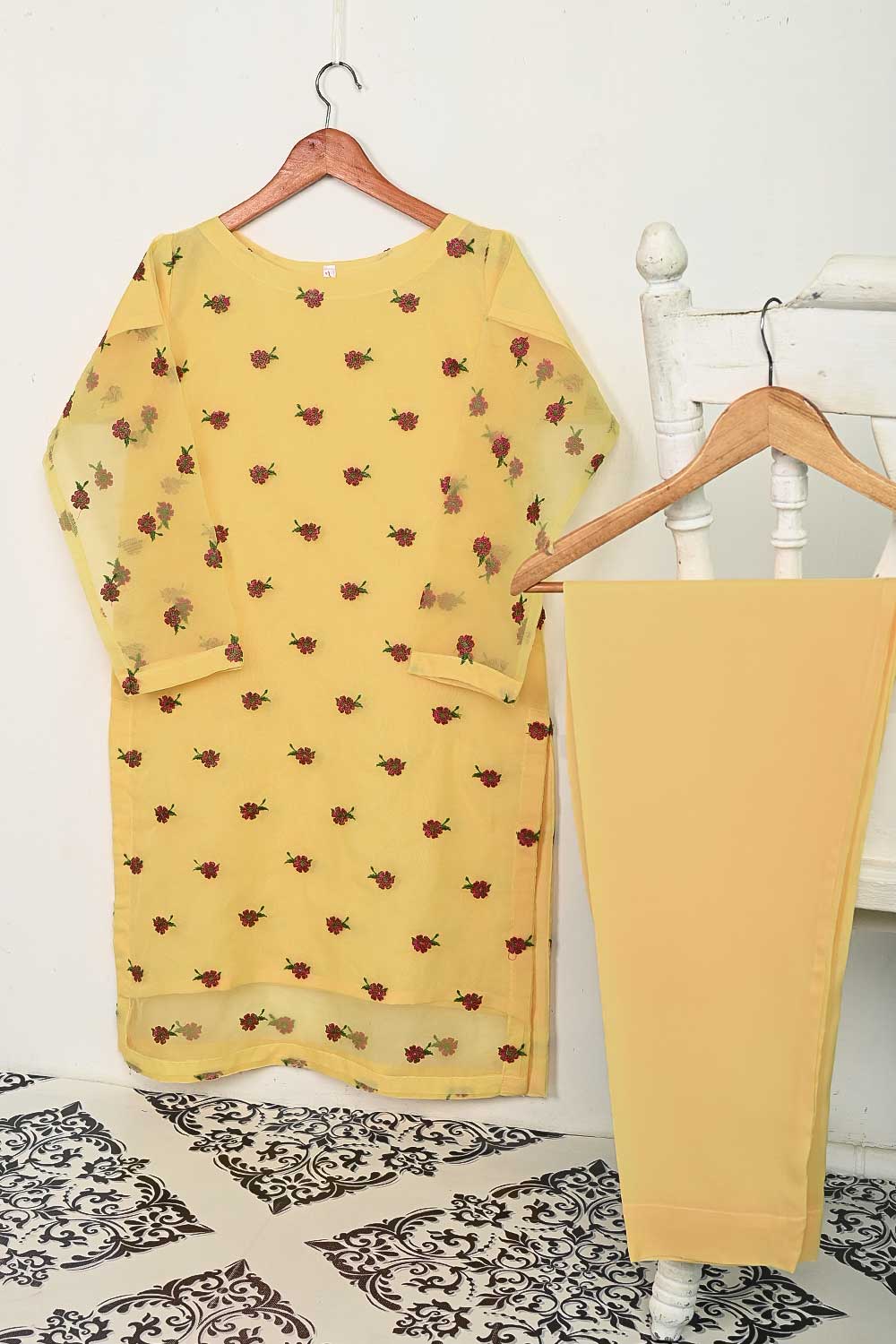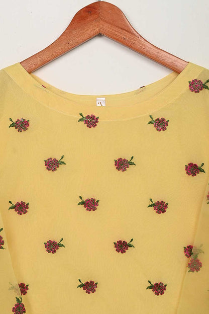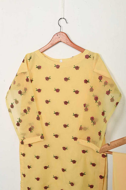 STP-138A-Yellow - 2Pc Organza Embroidered With Malai Trouser