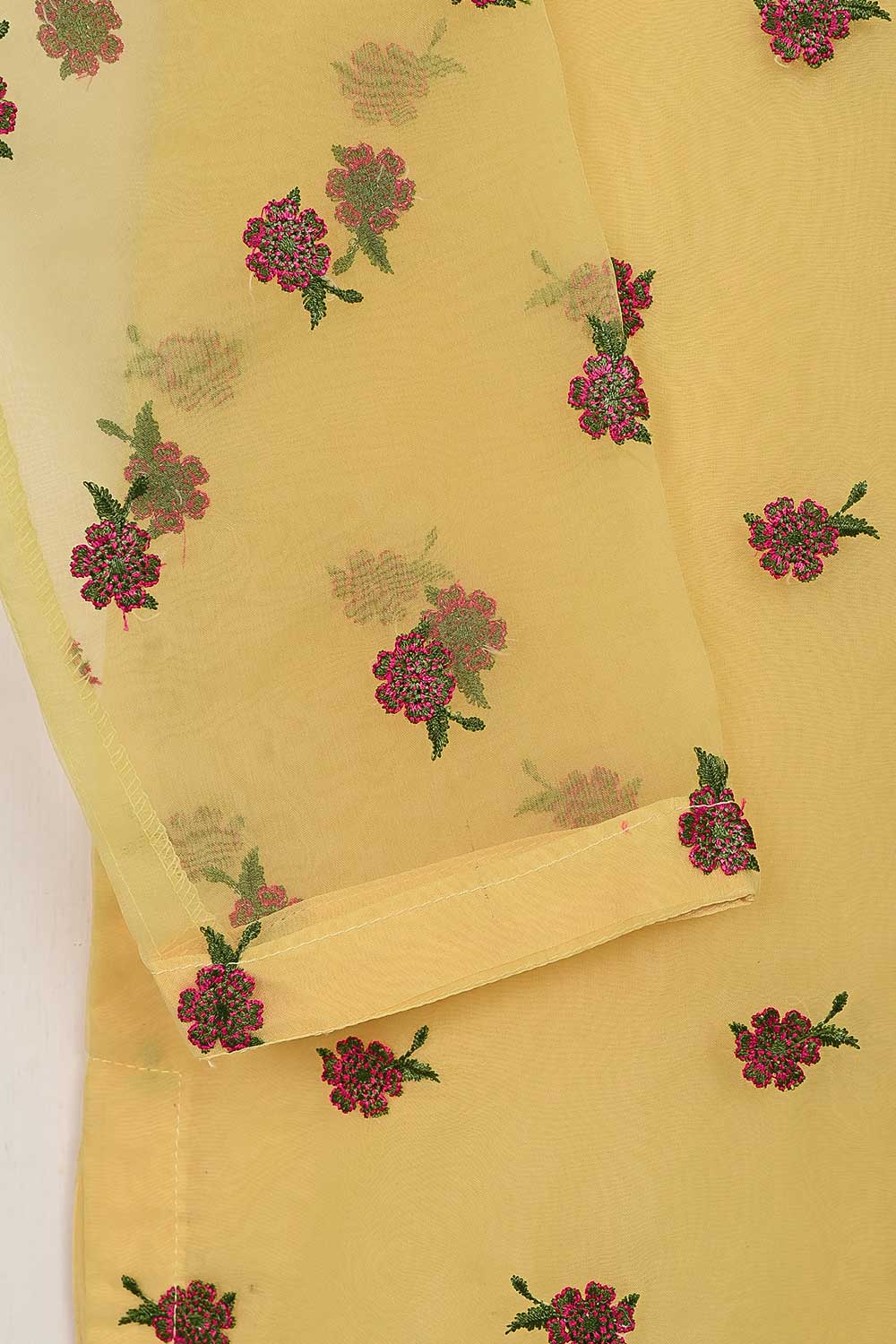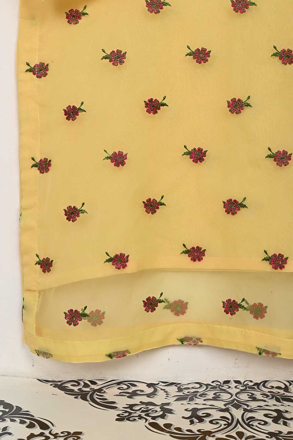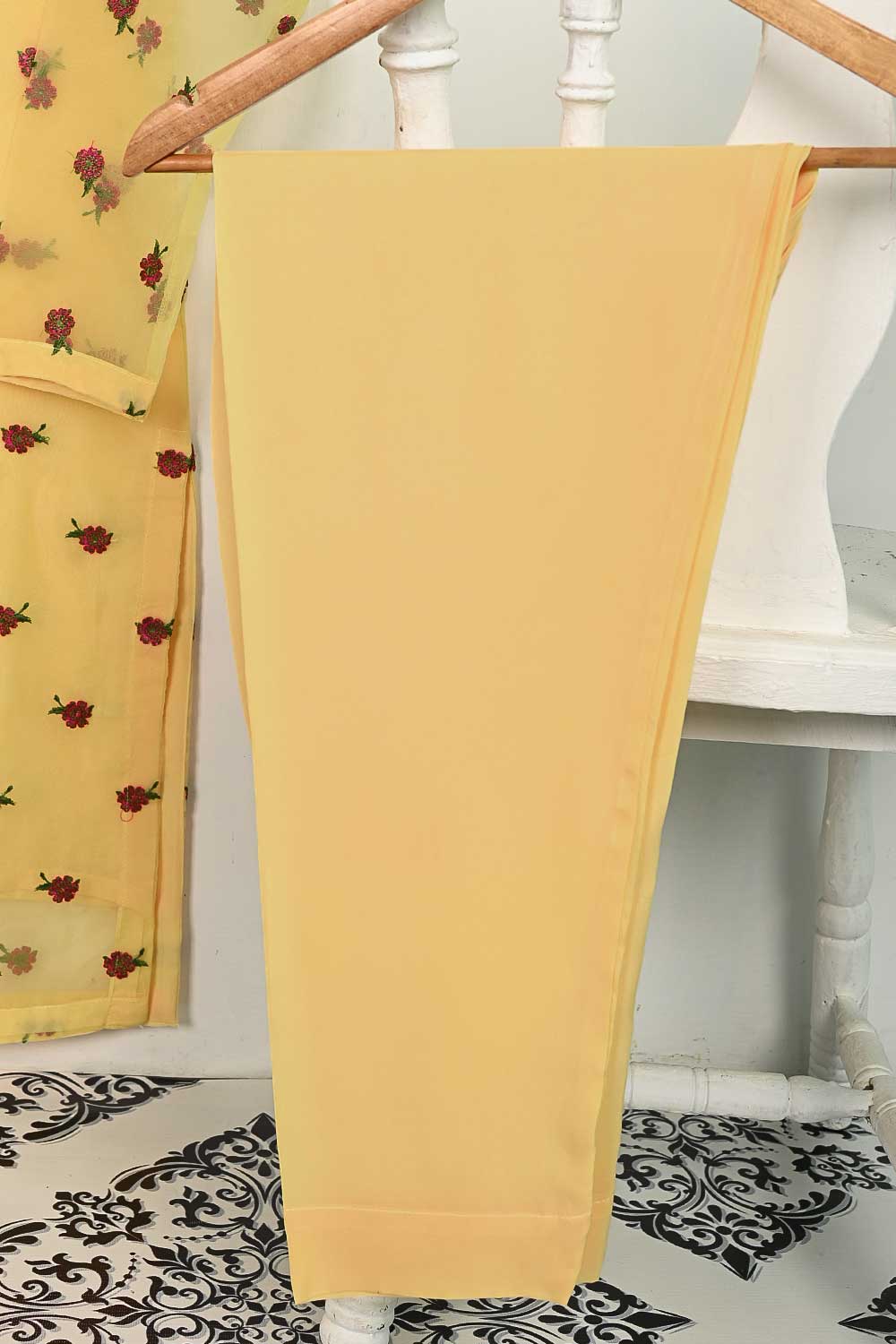 STP-138A-Yellow - 2Pc Organza Embroidered With Malai Trouser