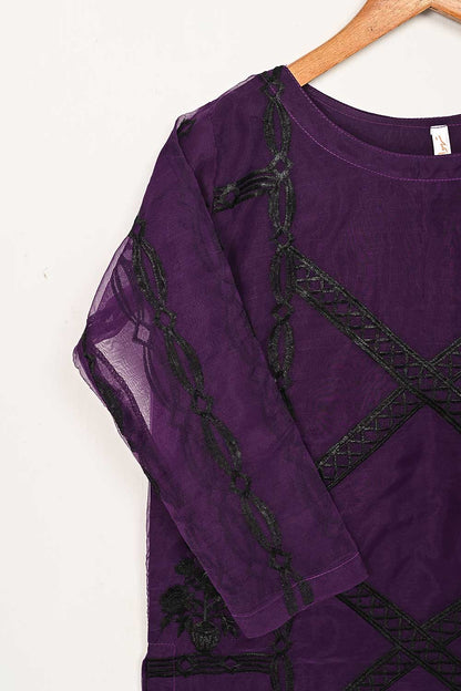 STP-140A-Purple - 2Pc Organza Embroidered With Malai Trouser