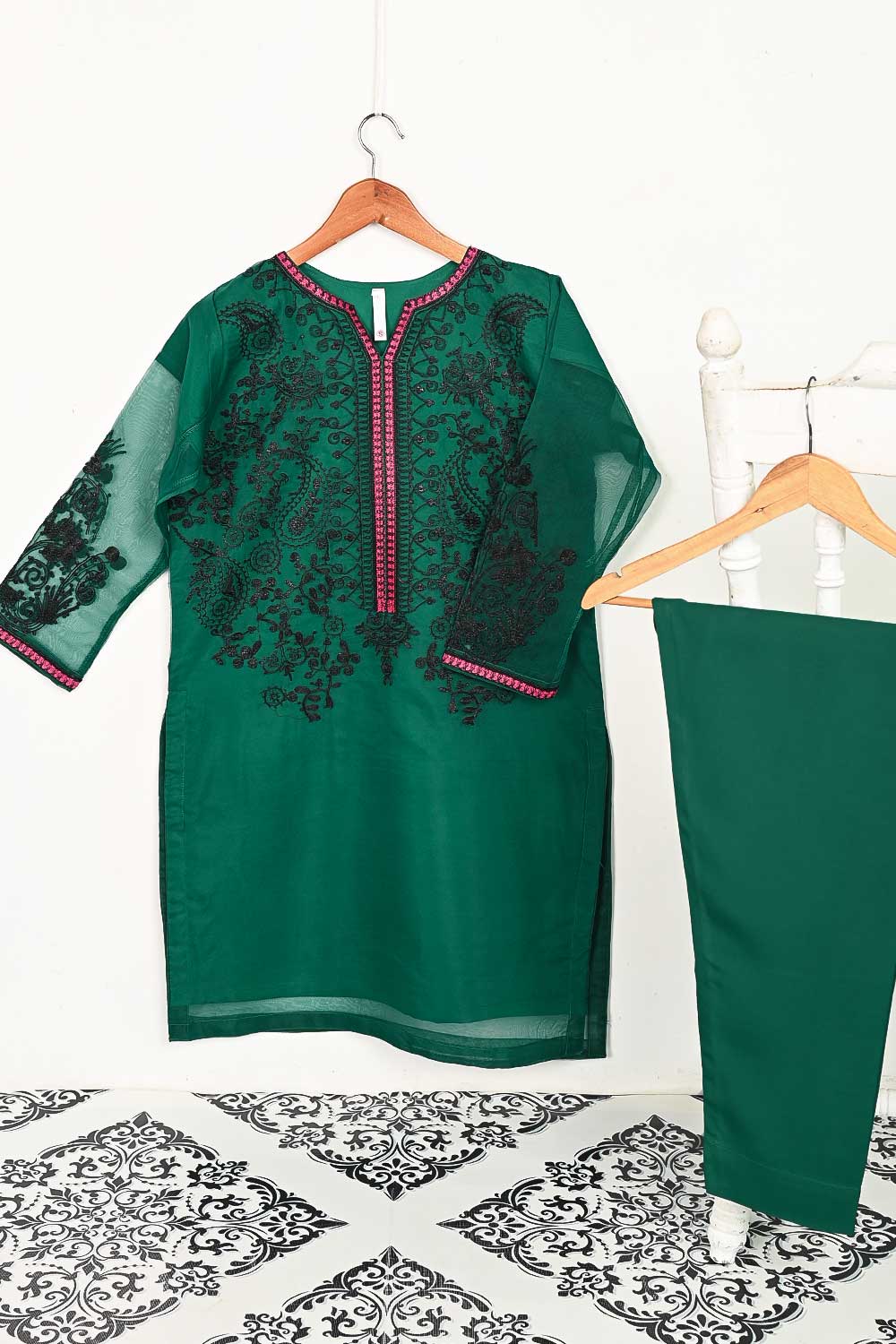 STP-141A-Green - 2Pc Organza Embroidered With Malai Trouser