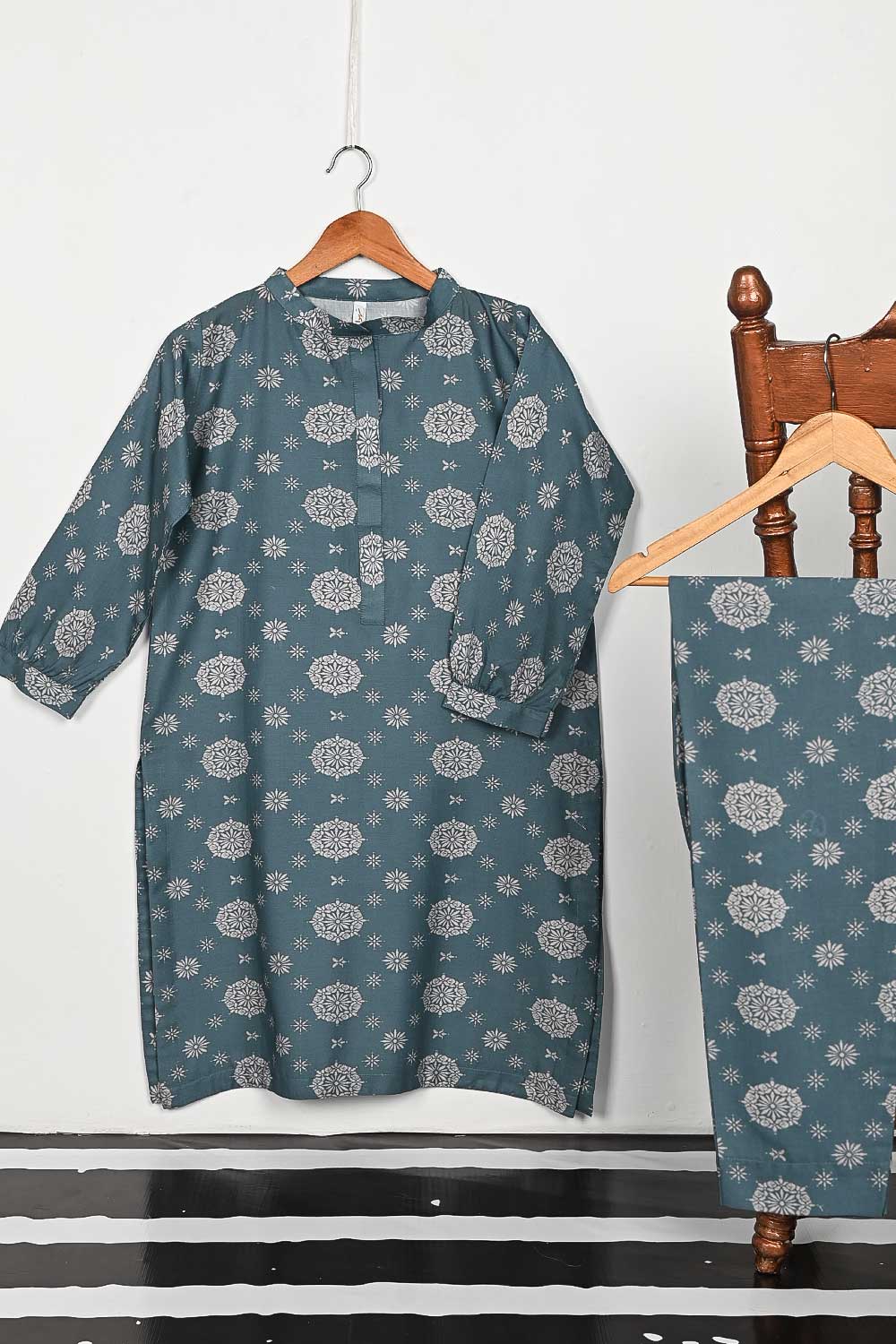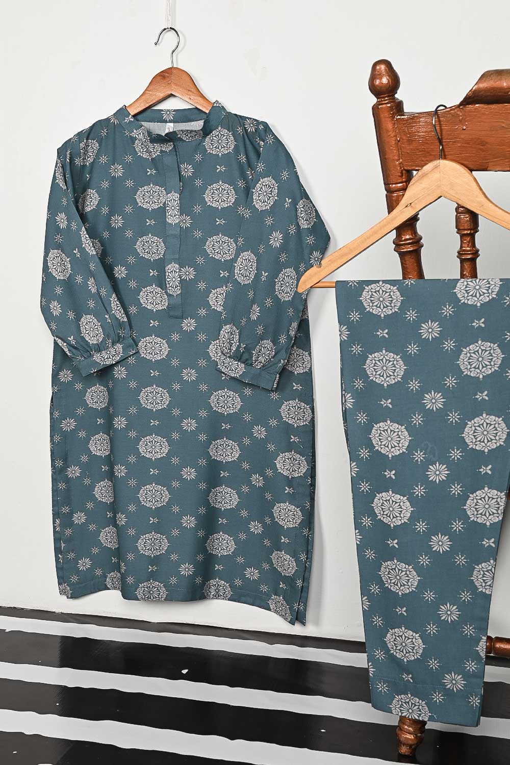 STP-146A-GreyishBlue - 2PC DIGITAL COTTON PRINTED STITCHED