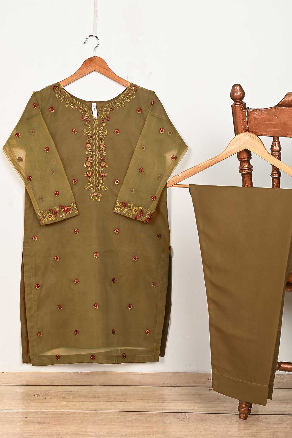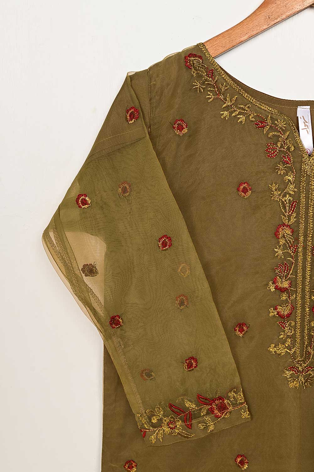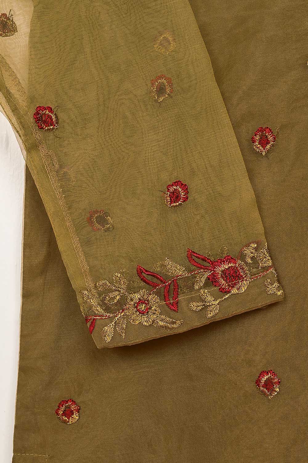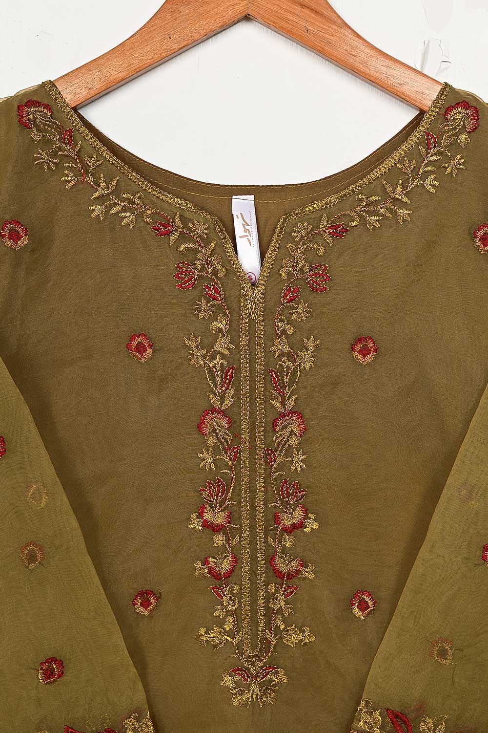 STP-148B-Brown - 2Pc Organza Embroidered With Malai Trouser