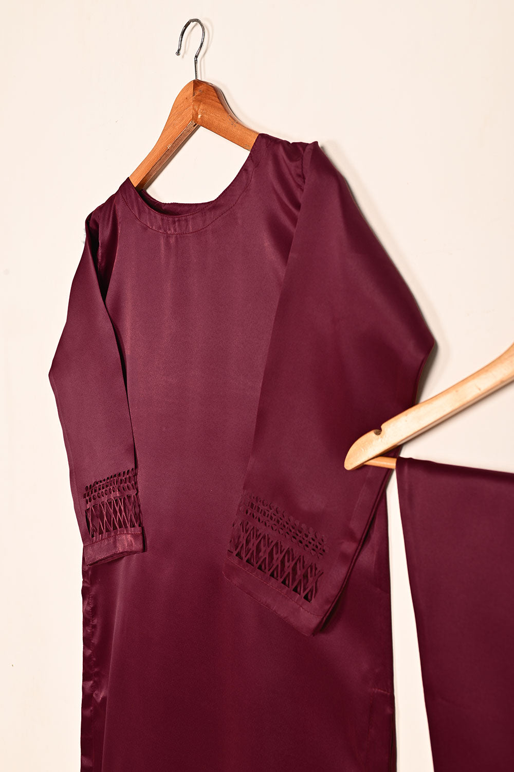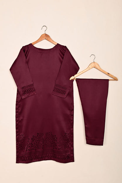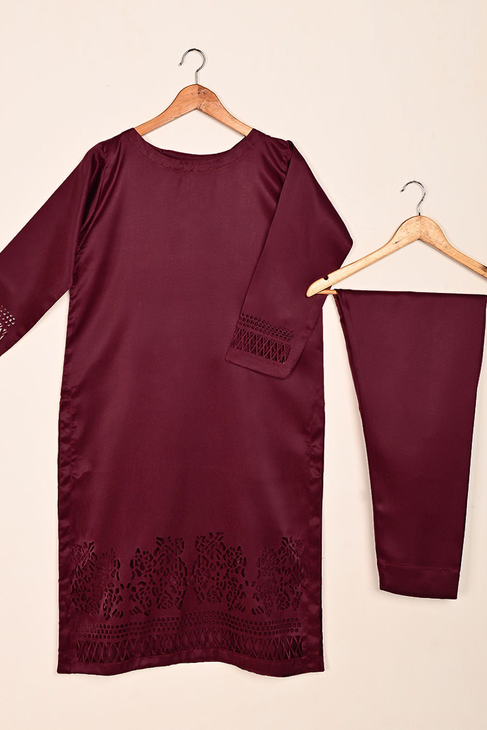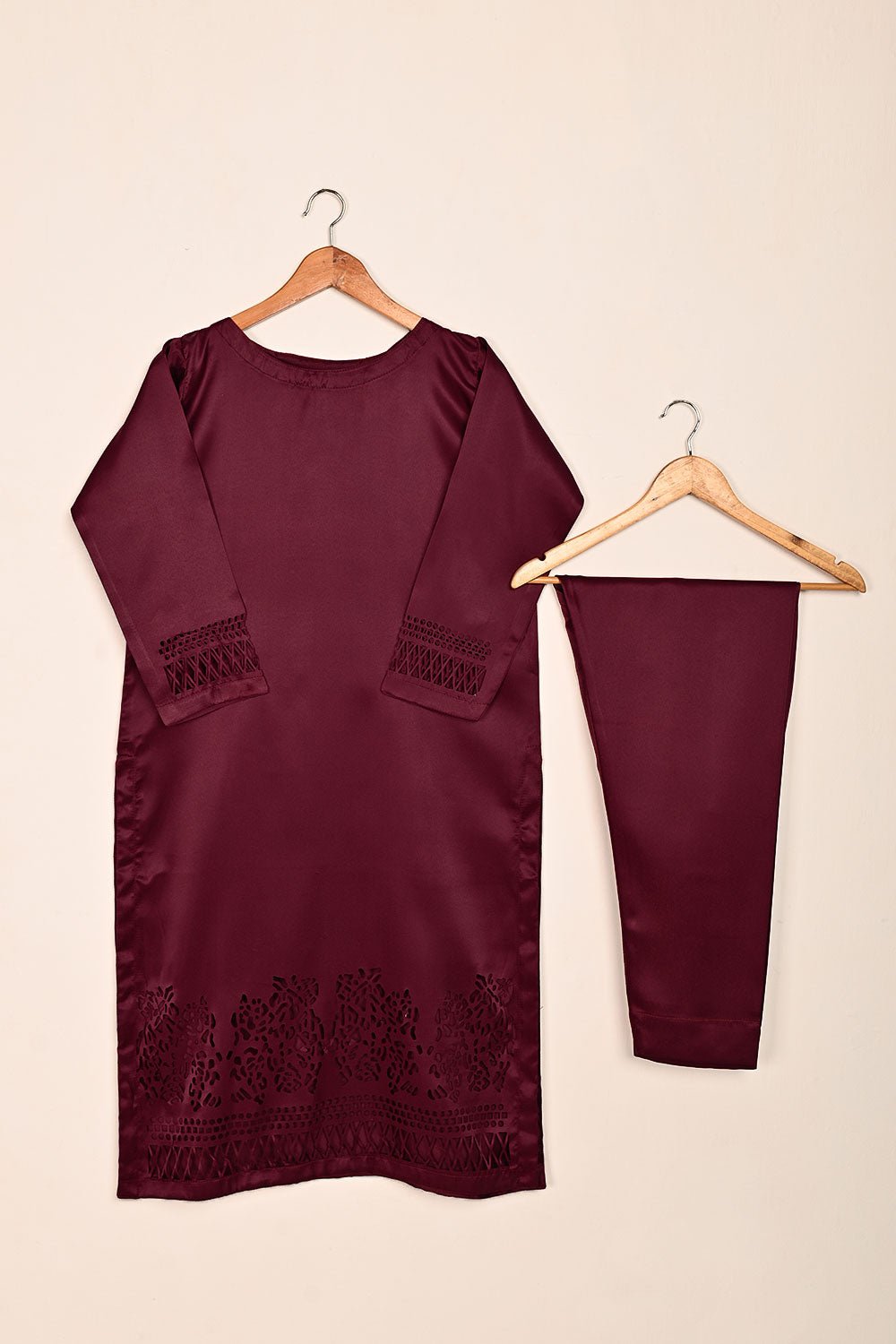 STP-187-Maroon - 2Pc Silk Laser Cutwork Dress