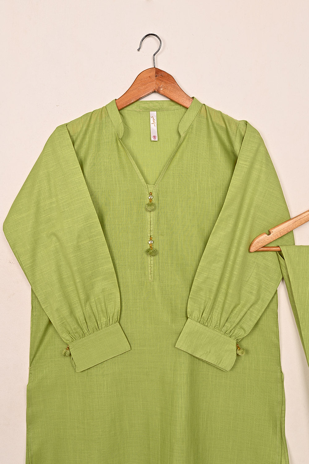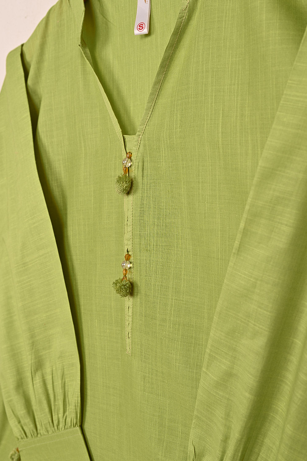 STP-200A-Green- 2Pc Ready to Wear Cotton Slub Dress