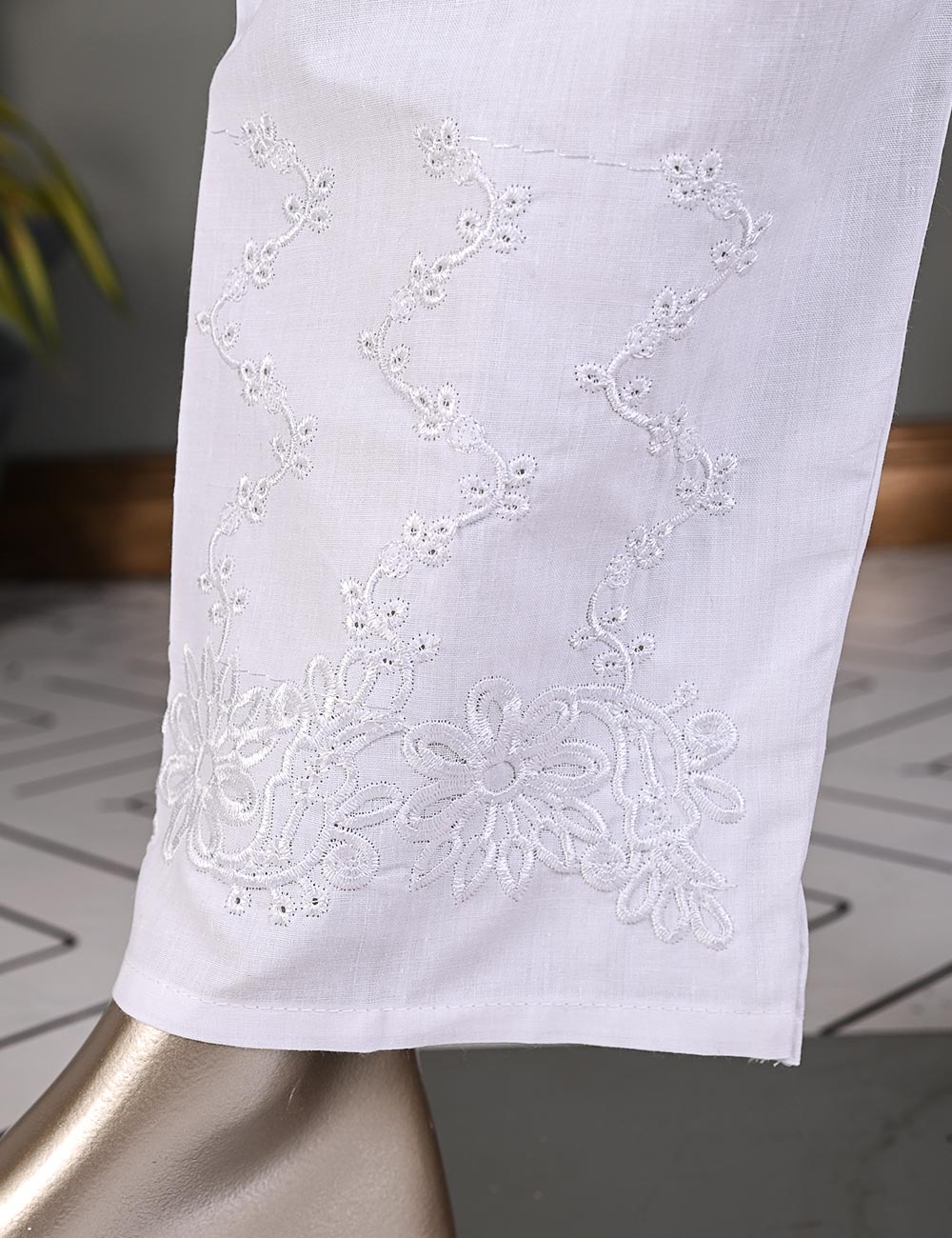 Super Quality Polyester Cotton Embroidered Stitched Trouser - (STC-01D-White)