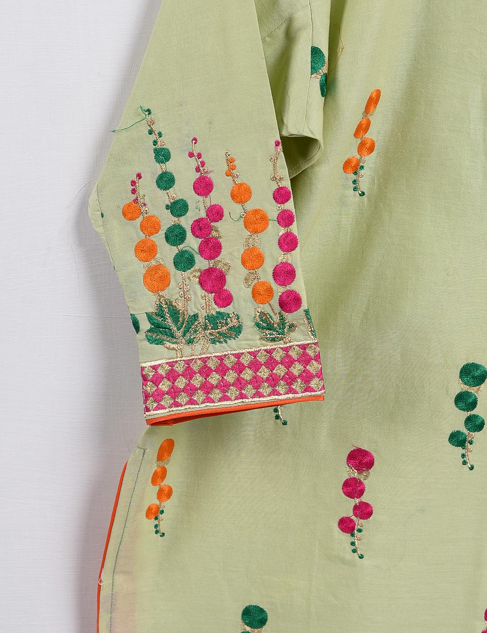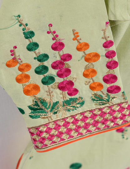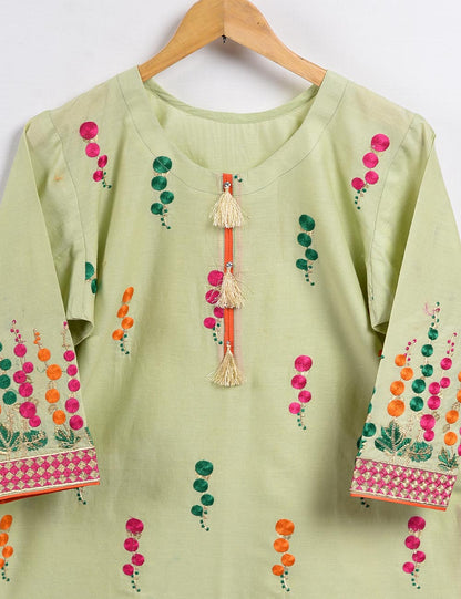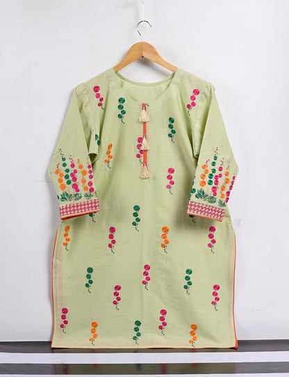 Cambric Embroidered Kurti - Turf - T20-007-Green