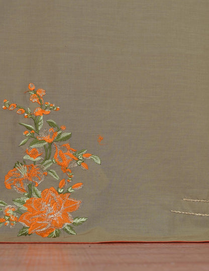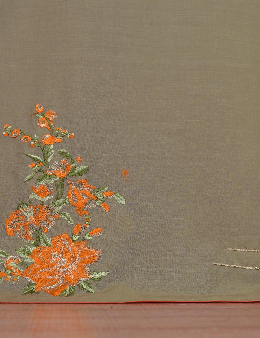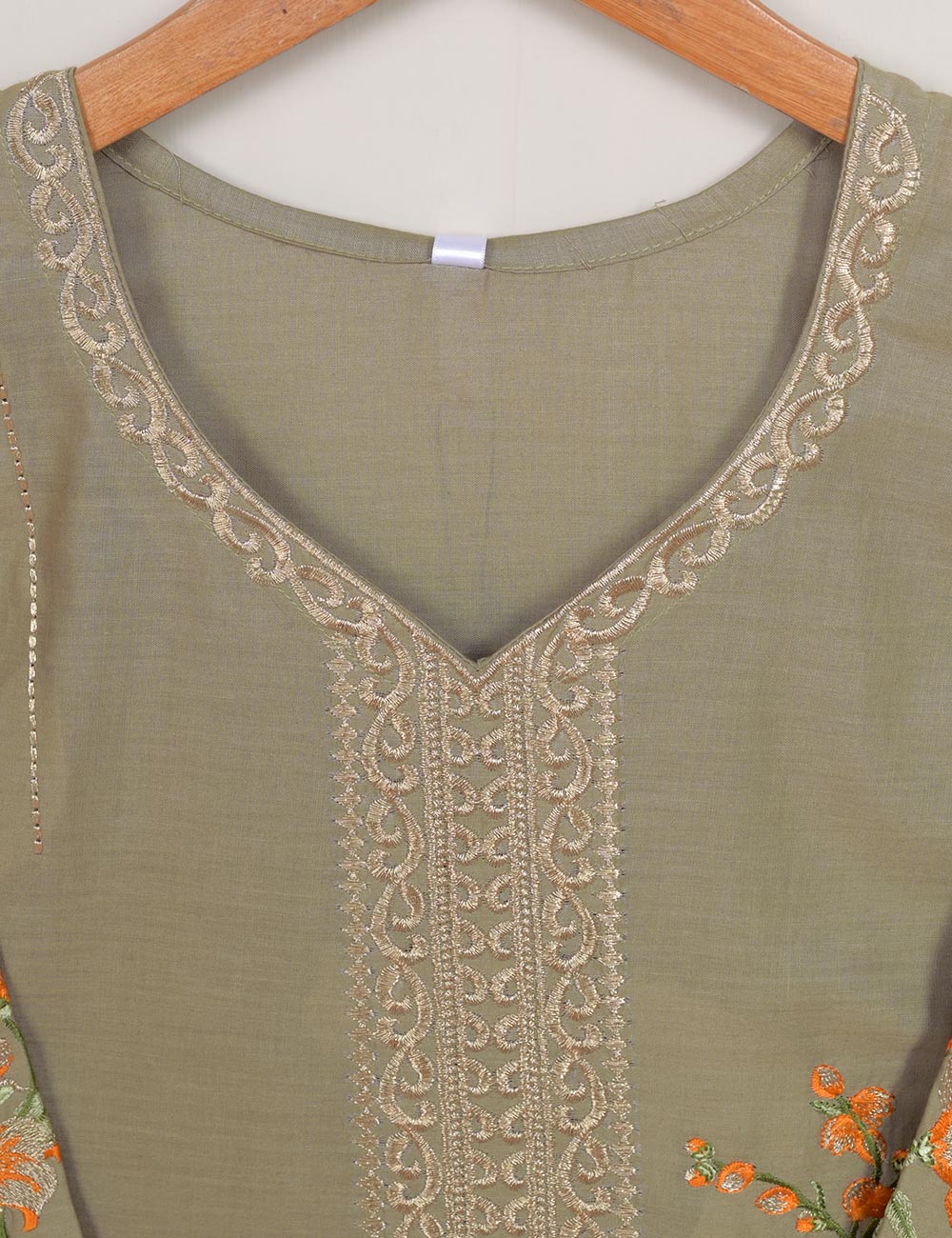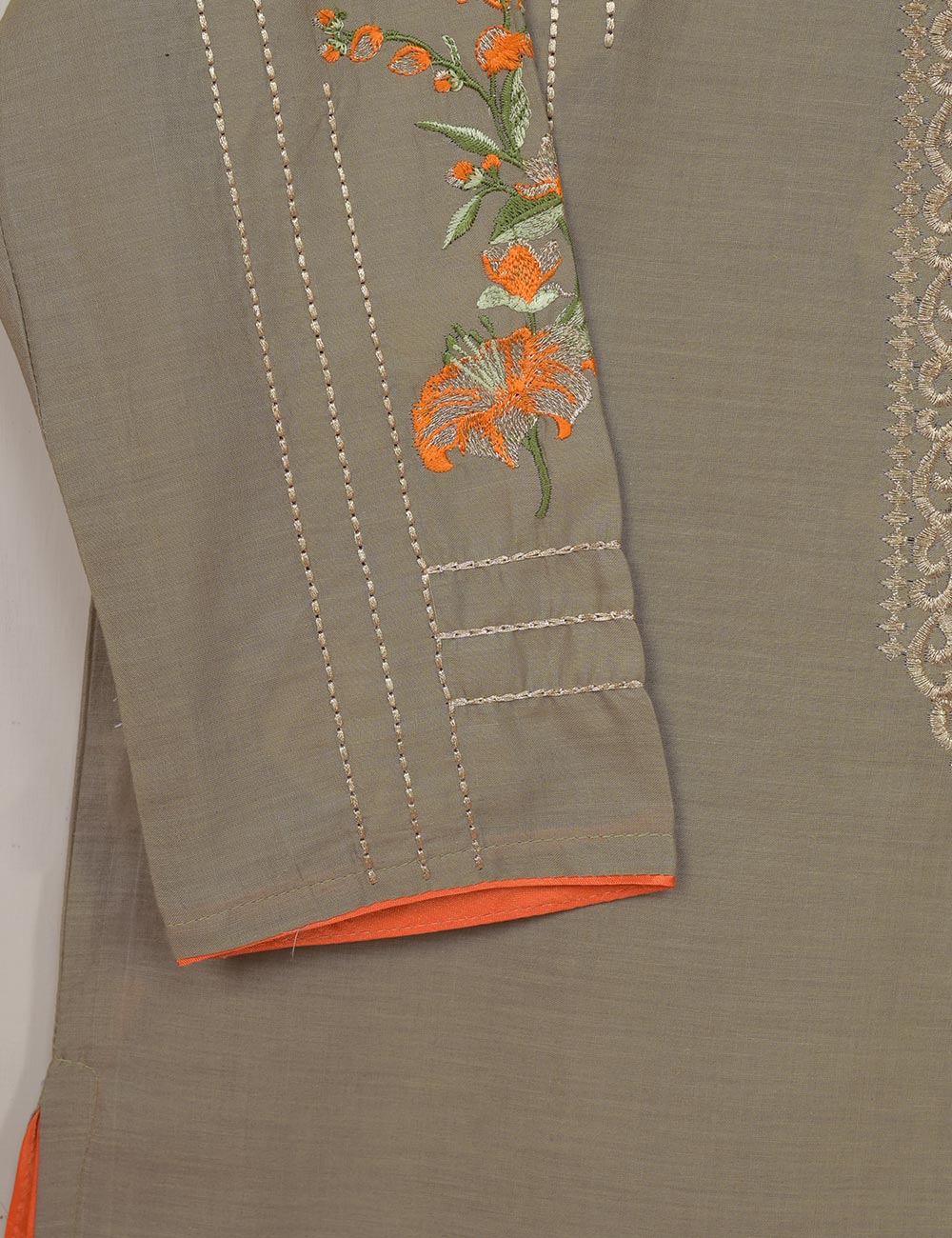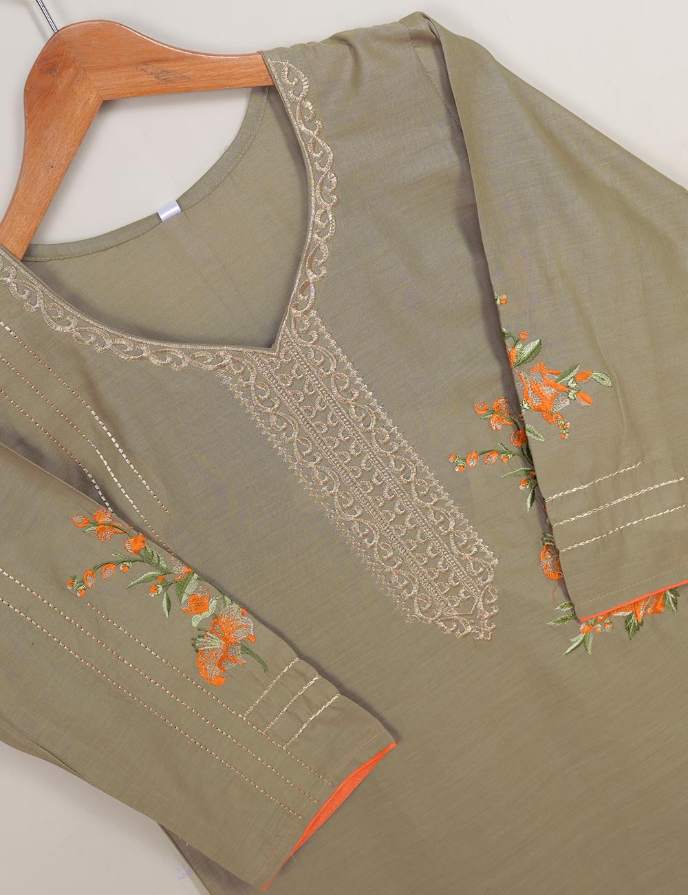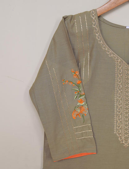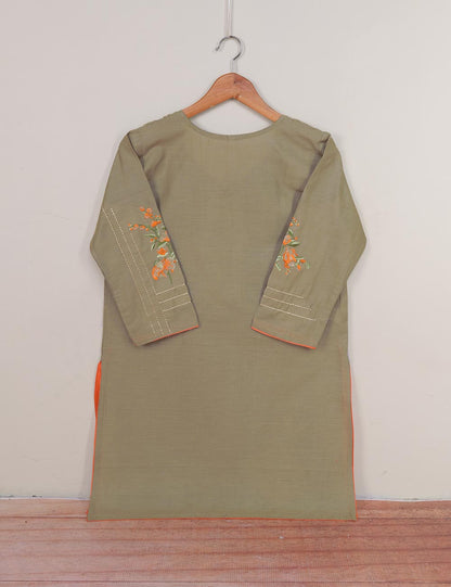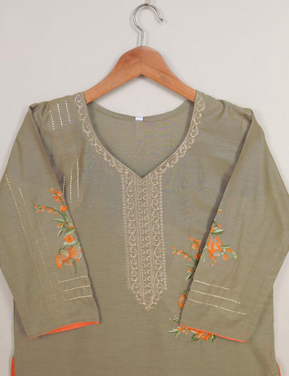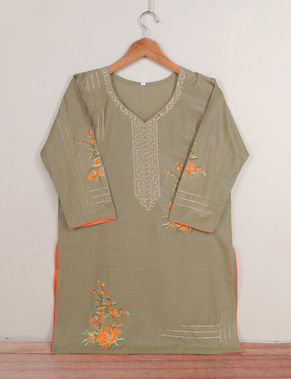 Cotton Embroidered Stitched Kurti - Tropical Hibiscus (T20-017D-Khaki)