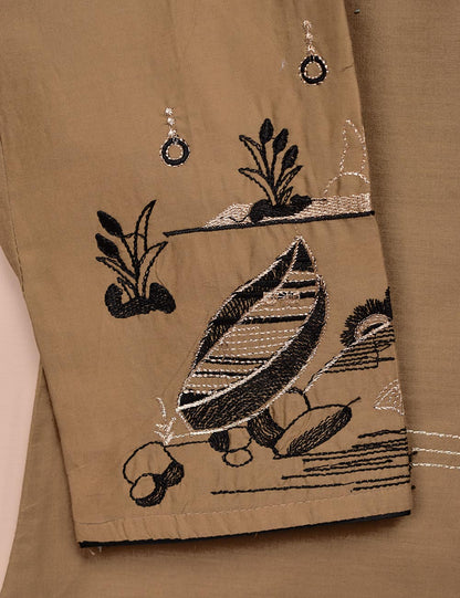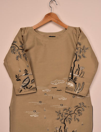 Cotton Embroidered Stitched Kurti - Midnight Lake (T20-060A-Skin)