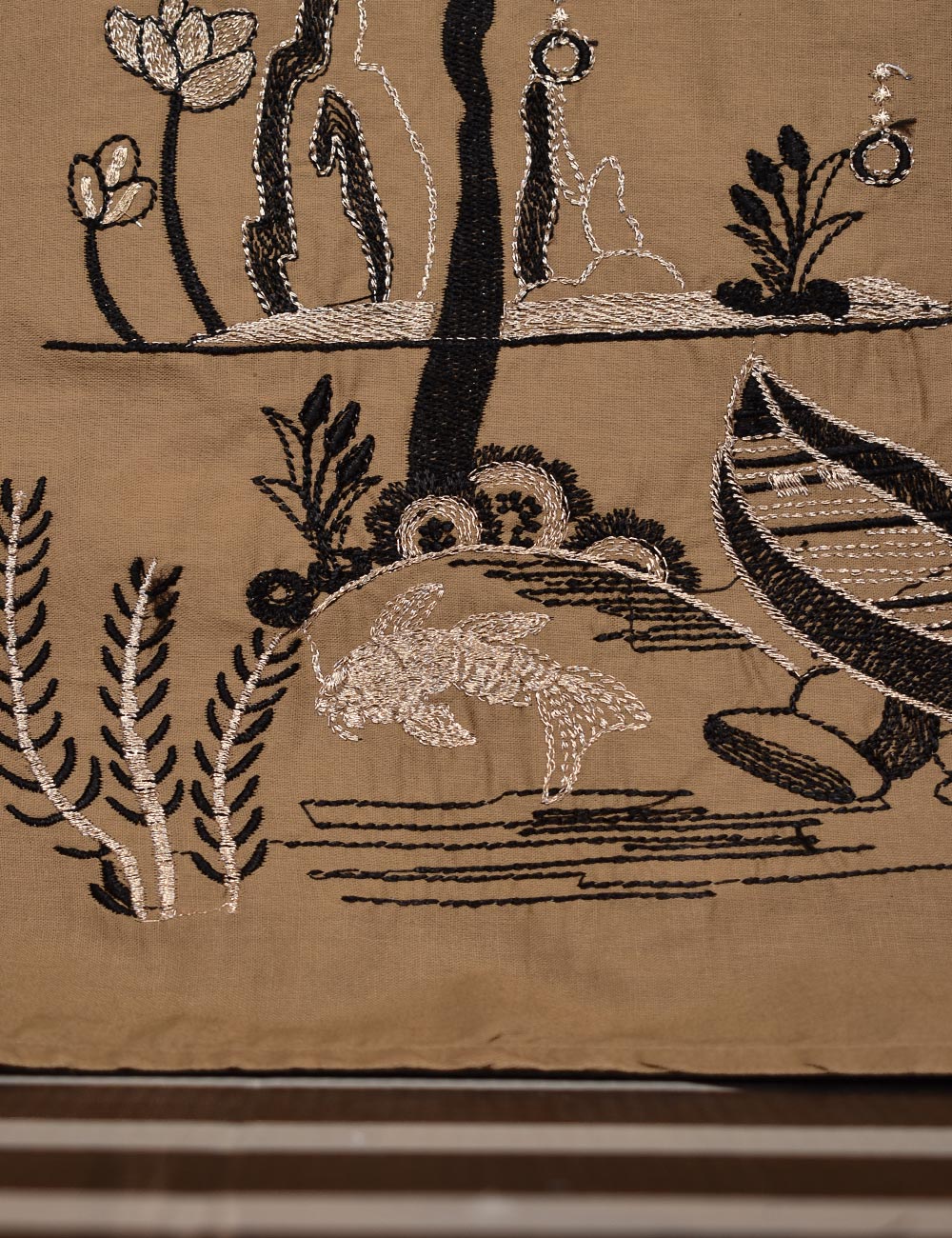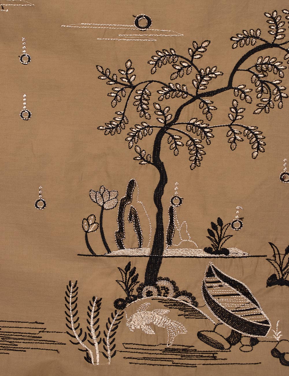 Magnificent embroidered patterns, showcasing nature's bounty, immersed in fine appeal.