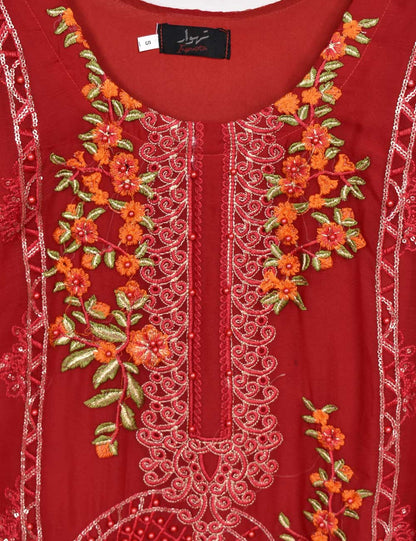 Exclusive Chiffon Embroidered Kurti With Beautiful Pearls